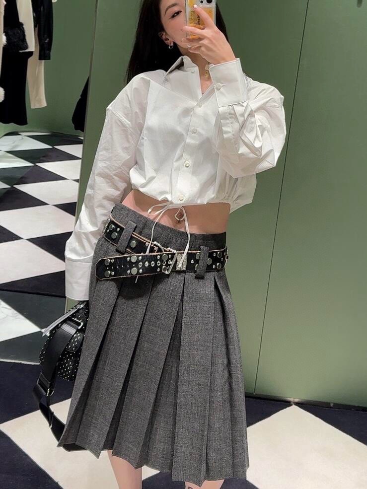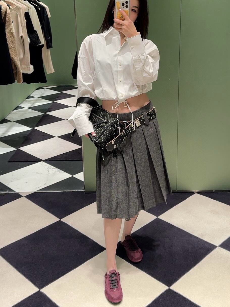 這條半裙最特別的地方就是它的低腰設計,可以打造出完全不同的穿搭風格。想要小露性感的時候,可以直接搭配短版上衣,展現腰部線條;想要知性一點,可以搭配襯衫,看起來俐落又優雅;天氣比較涼的時候,還可以搭配毛衣或針織衫,營造慵懶隨性的感覺。真的是一條可以完美詮釋各種風格的百搭單品!