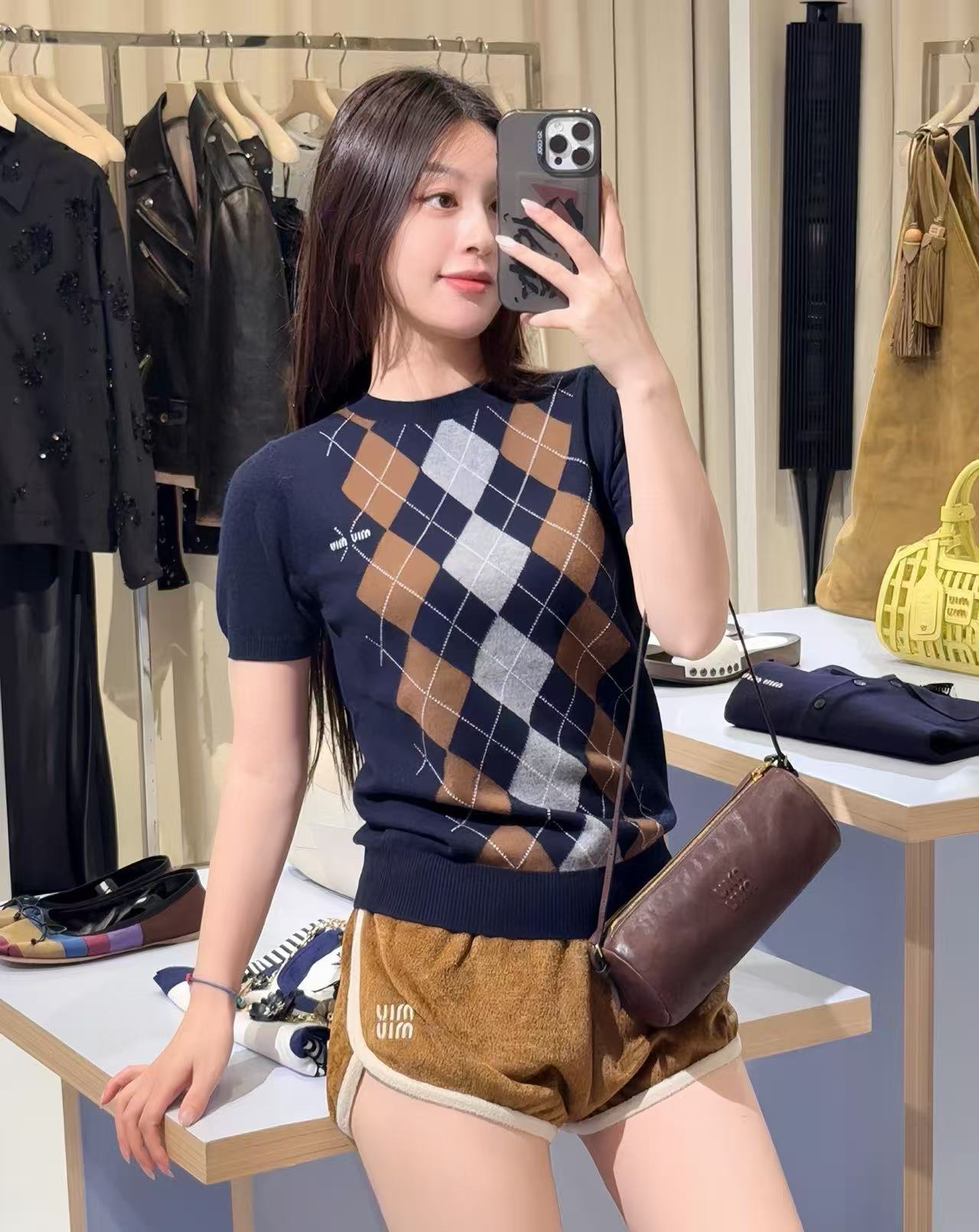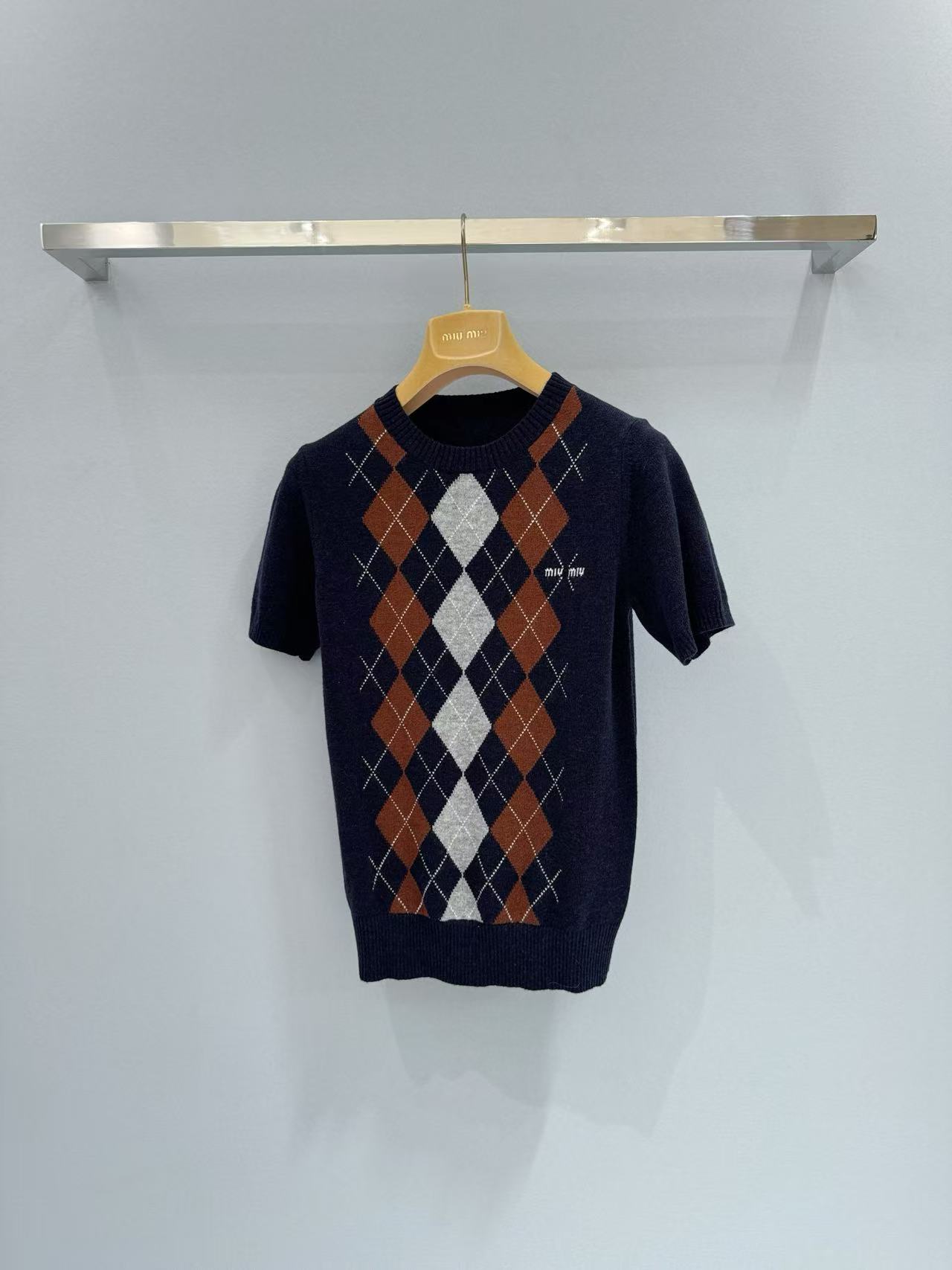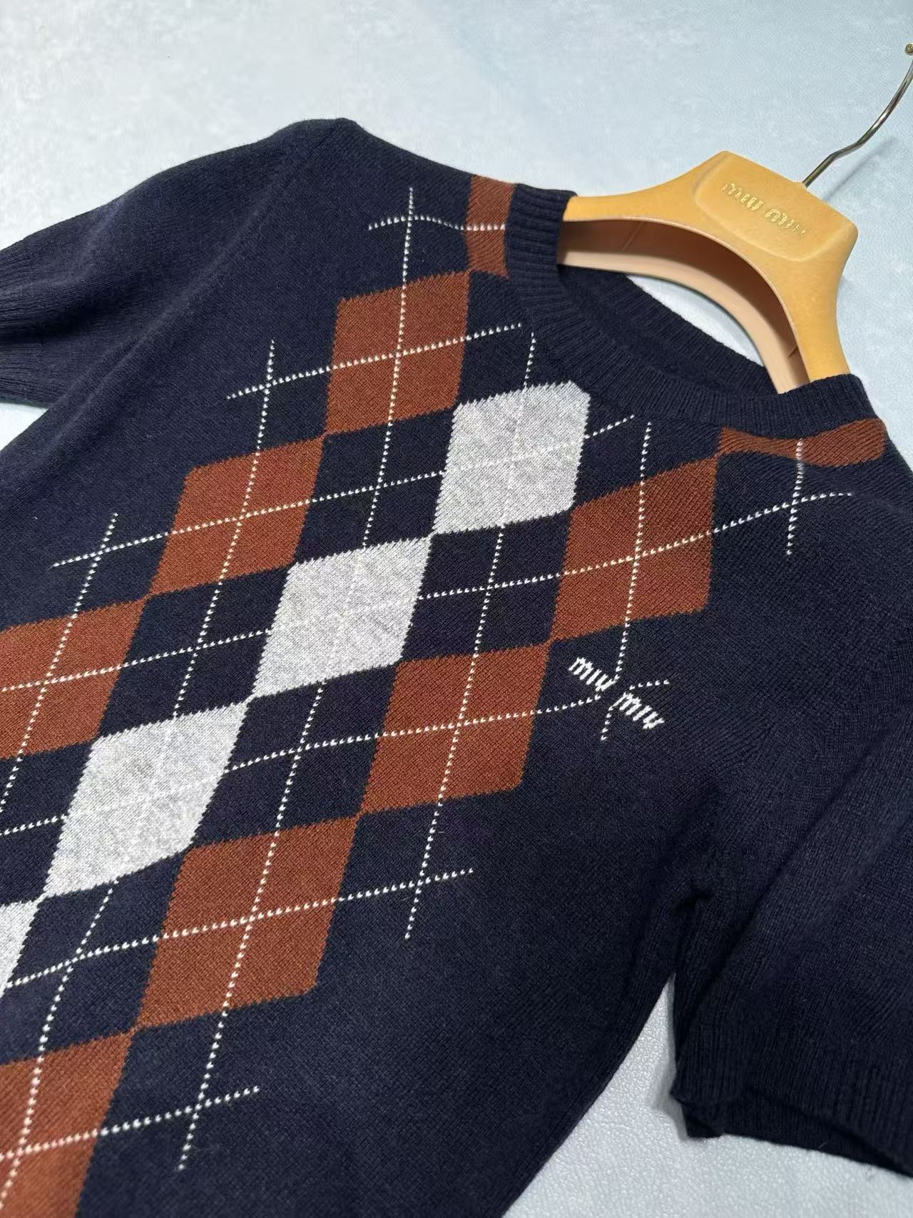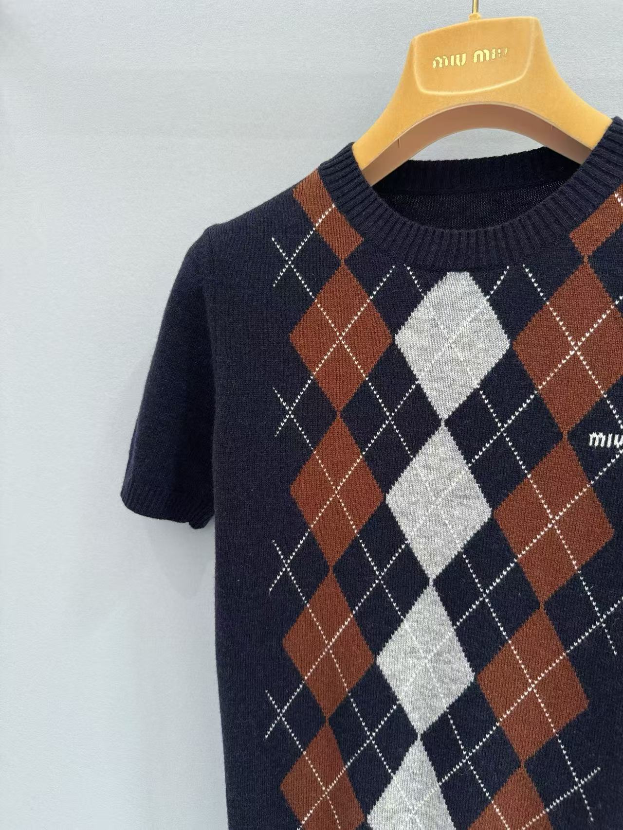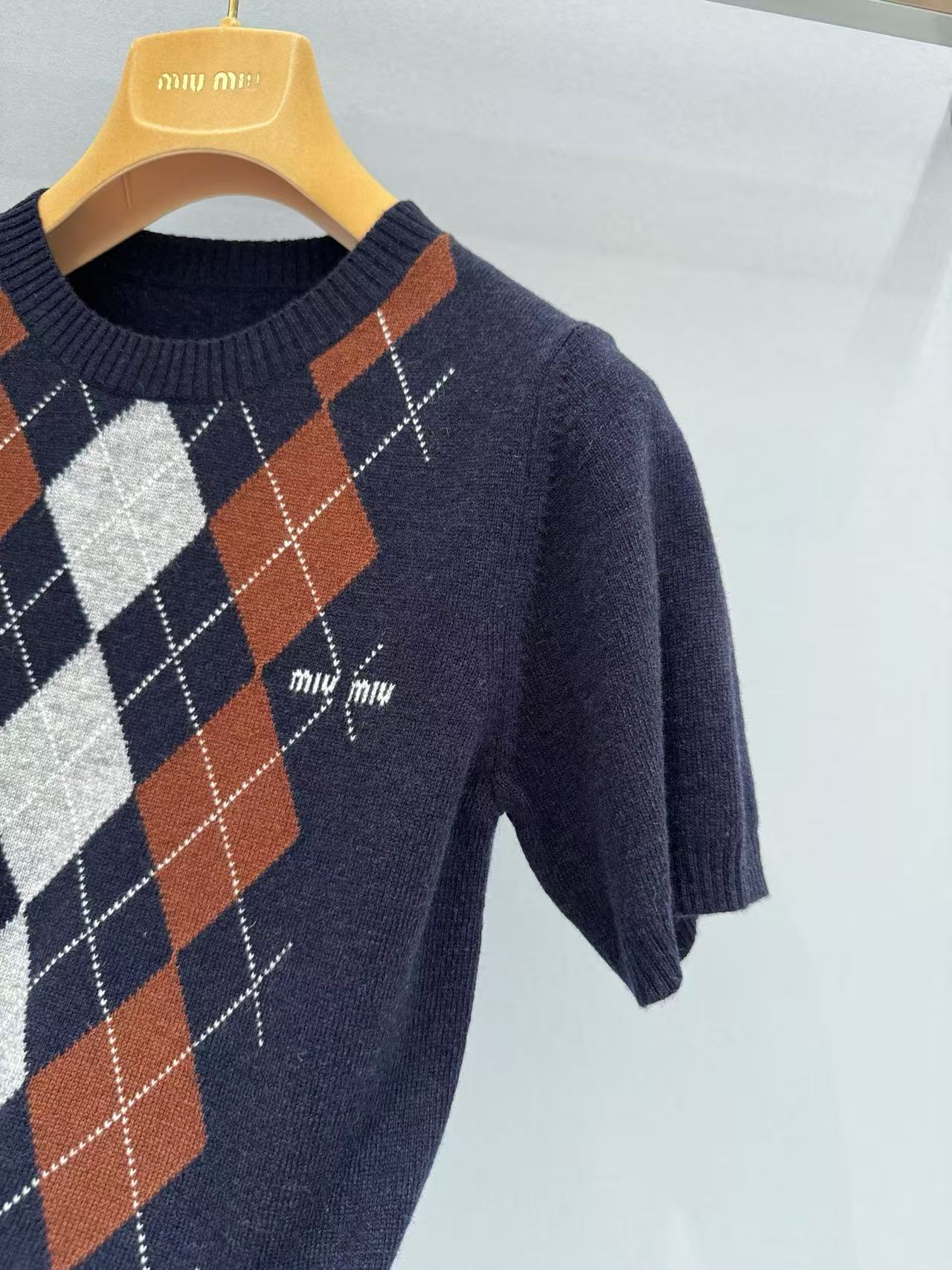 2025早秋  Miu家 微標菱形針織短袖,溫柔時髦的必備單品!