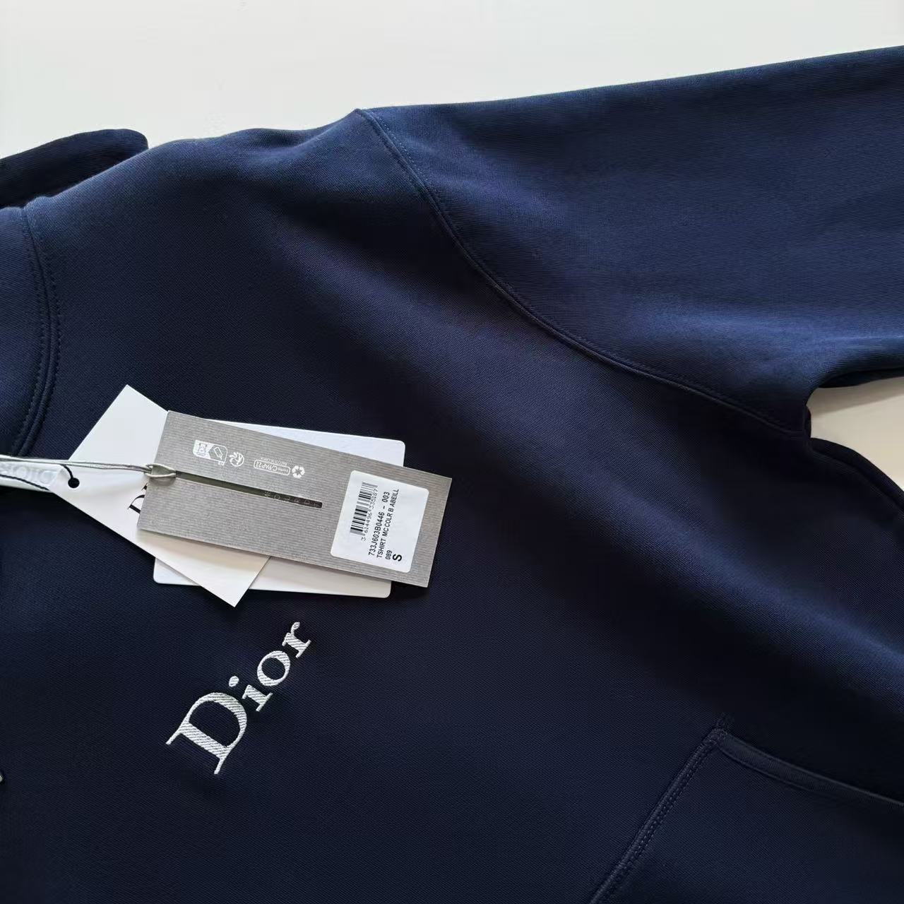 視覺焦點在於胸前的品牌標誌,透過極其精密的斜紋挨針刺繡,營造出如同雕塑般的微凸質感。