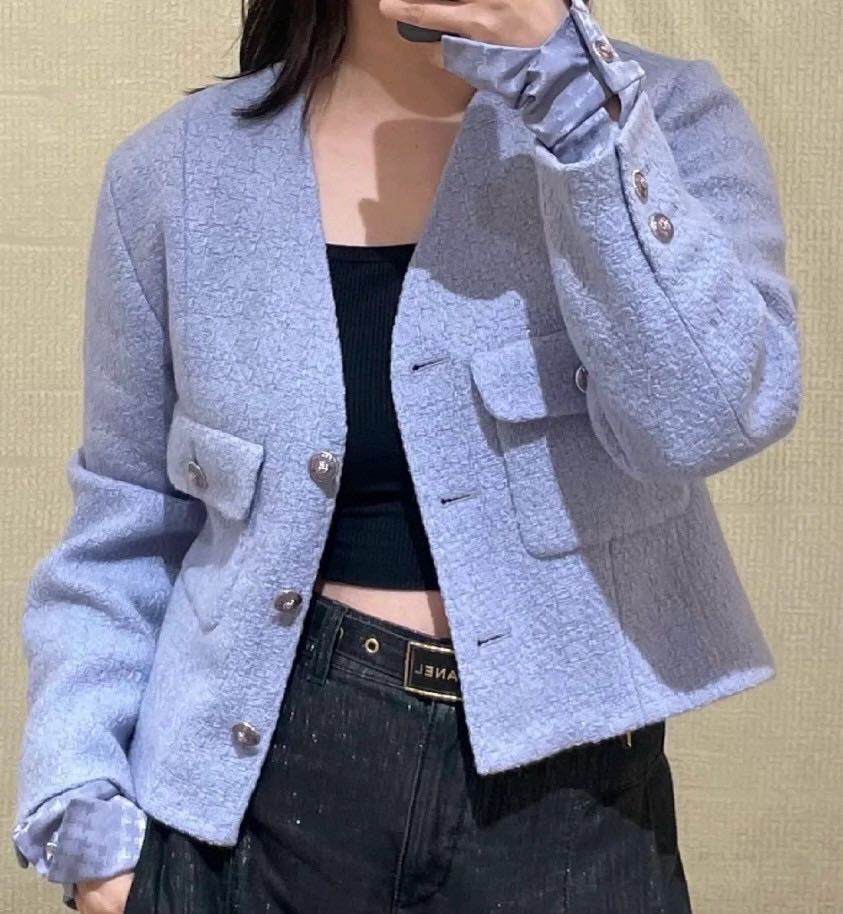 這款外套以簡潔大方的設計與優雅的紫色調,完美展現高貴氣質,是明星同款推薦單品。