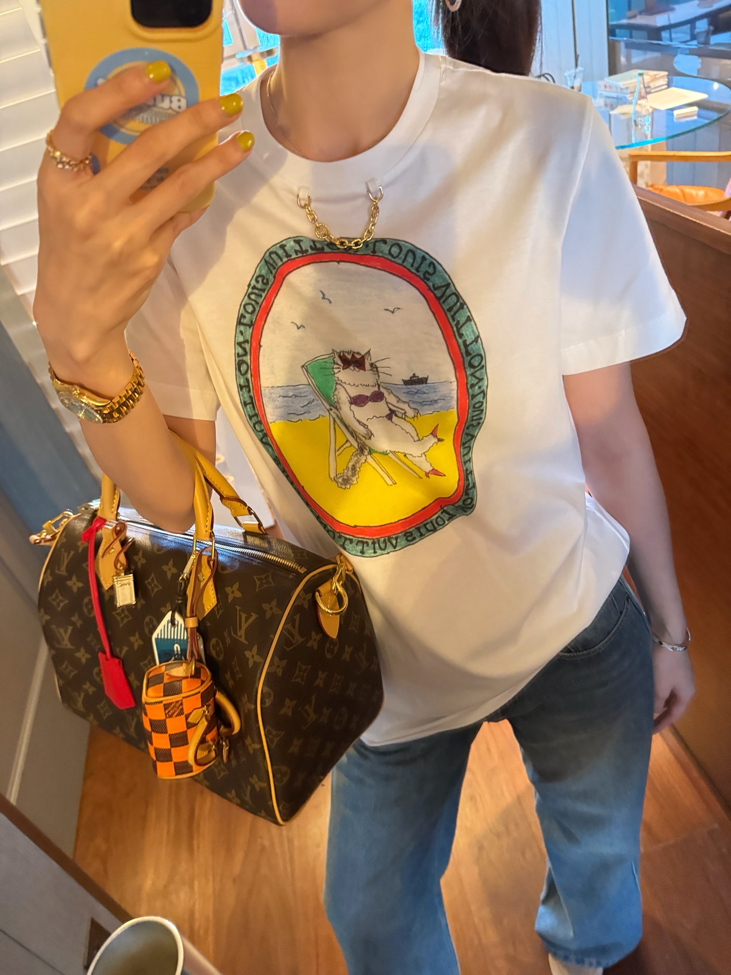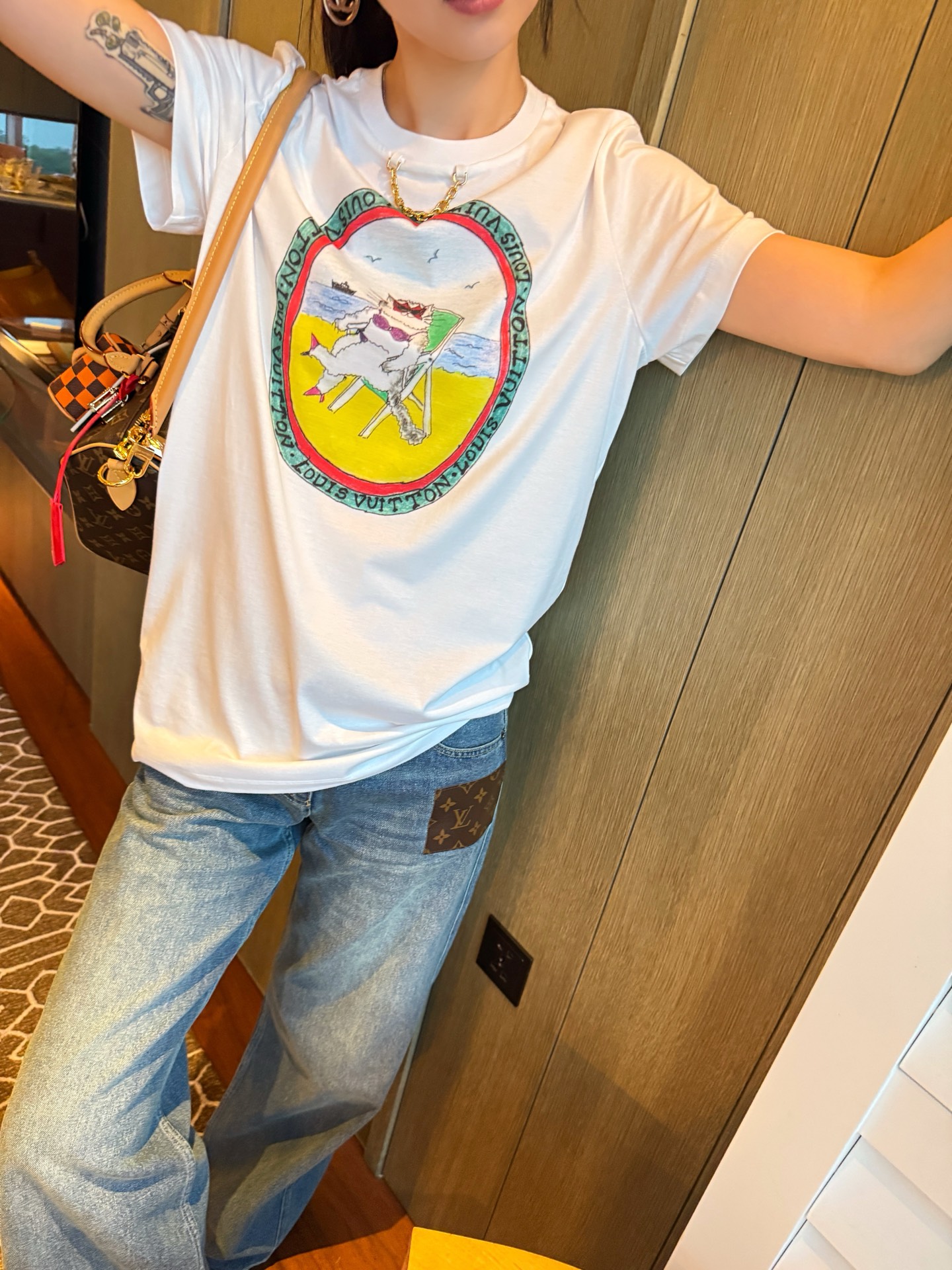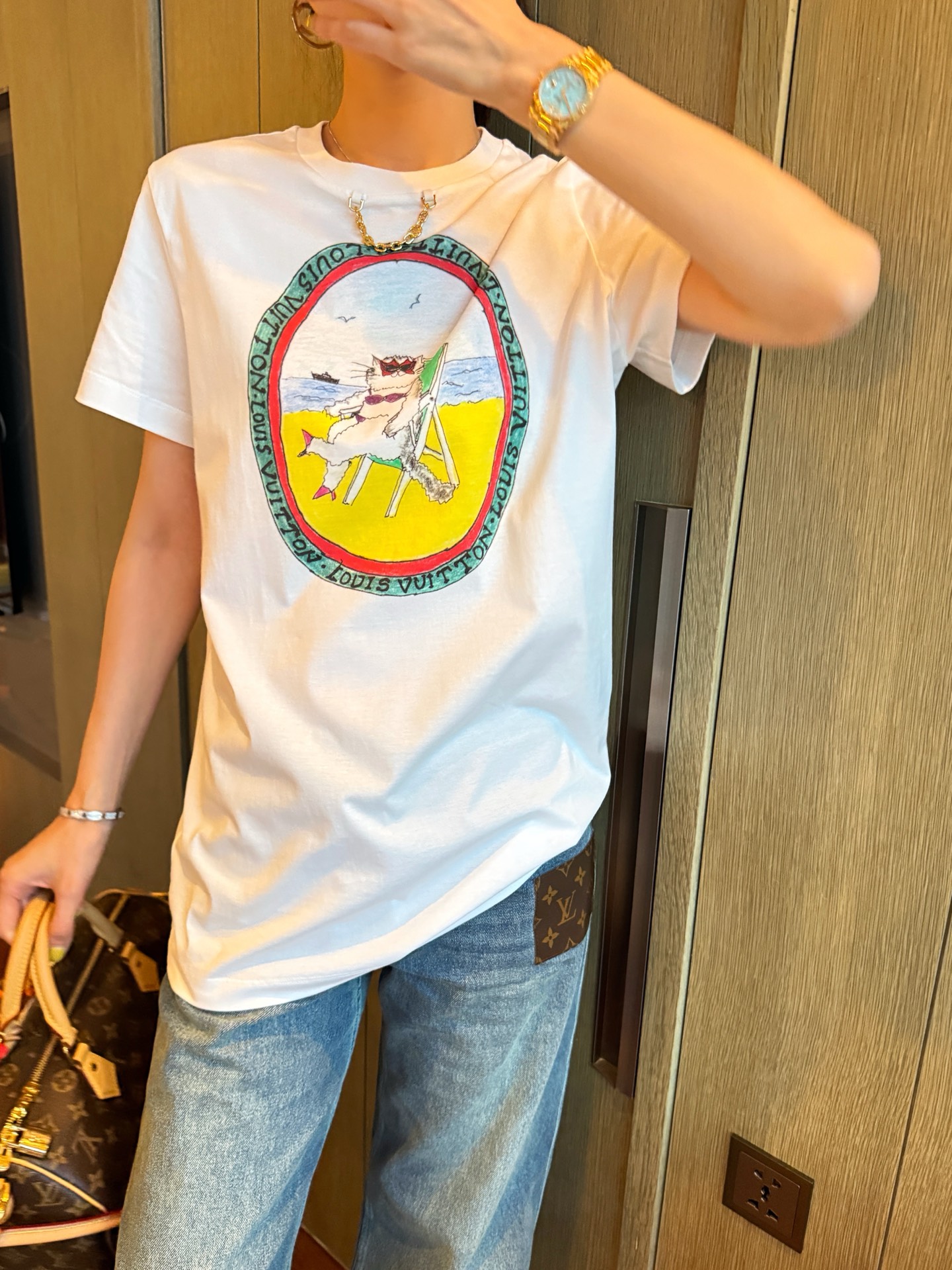 L家 聯名GC貓咪系列中長版印花短袖