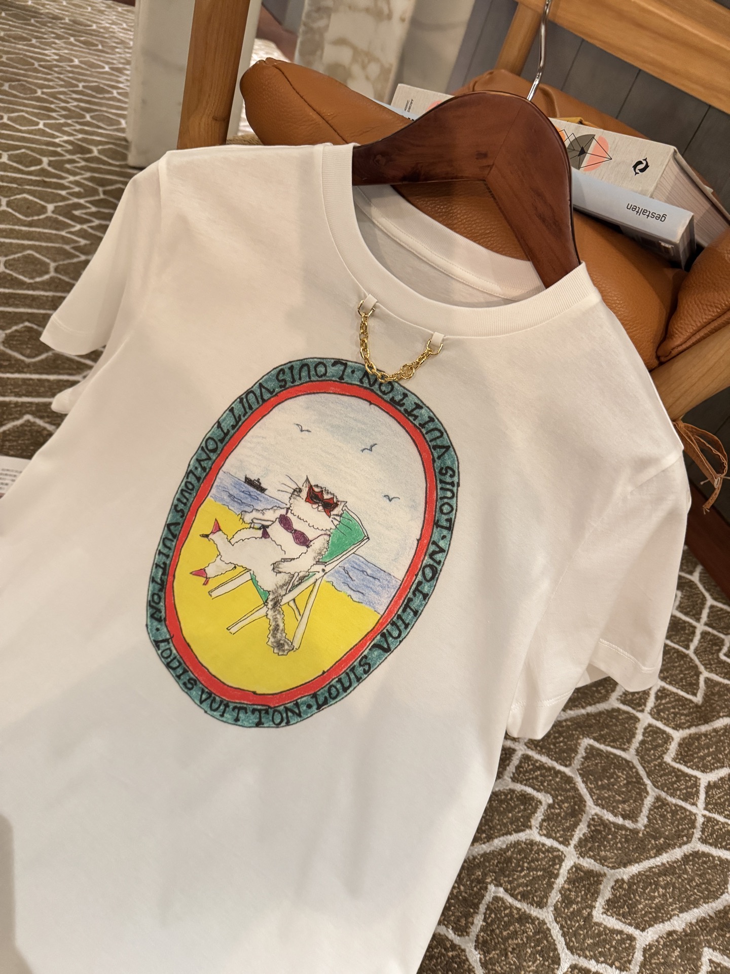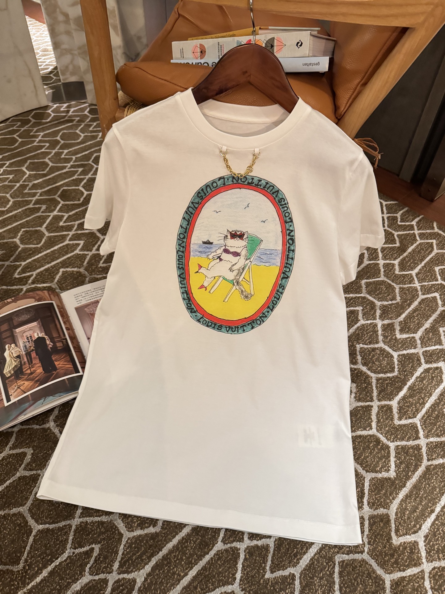 這款白色中長版印花T恤,以度假風為靈感,融入充滿活力的多巴胺配色貓咪圖案,既可愛又充滿藝術氣息。