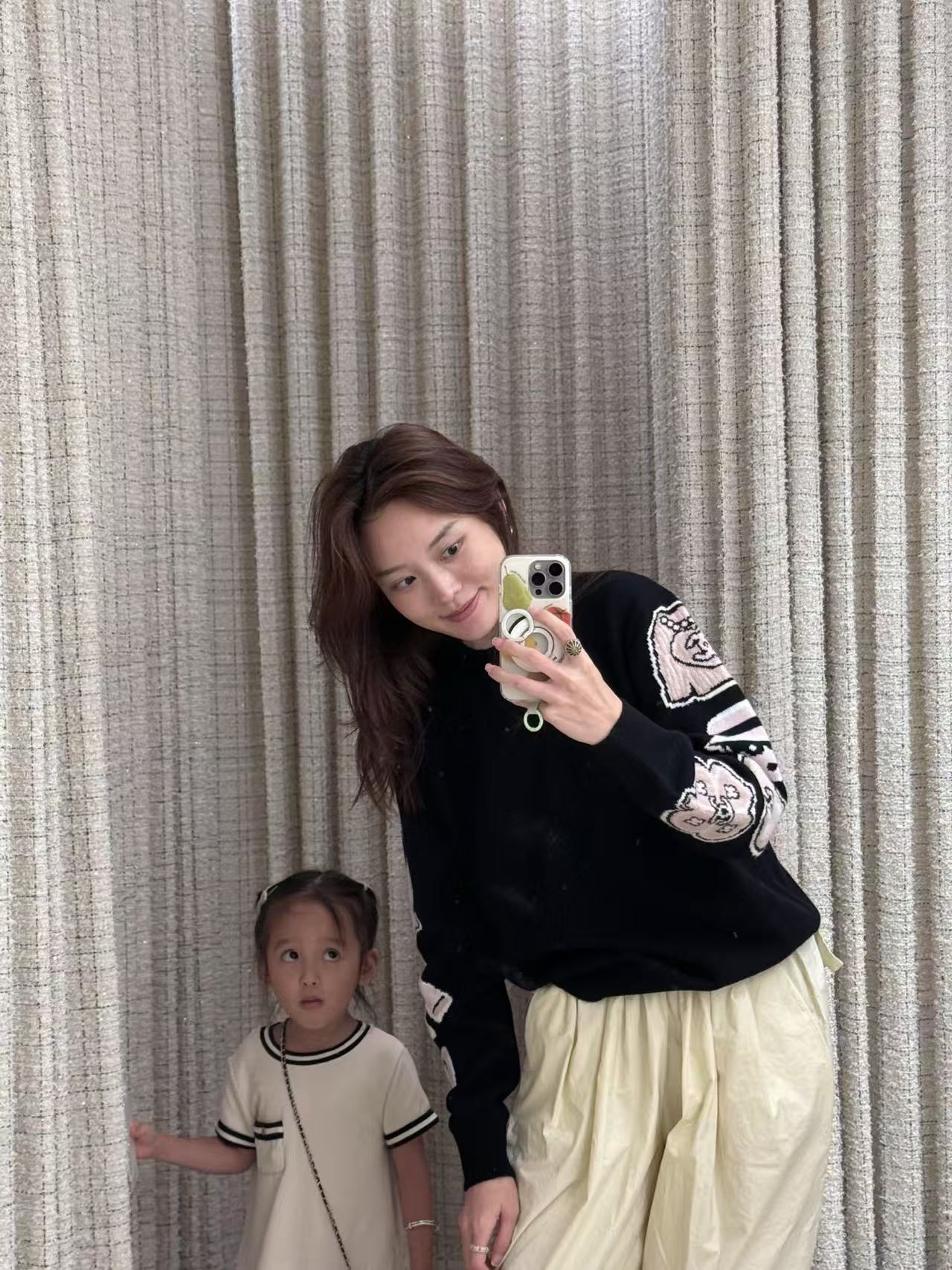版型是經典圓領,線條俐落又百搭,袖子上的小羊圖案超級吸睛,肩線剛好、身形修飾得很好,不會太寬也不會太緊,日常出門或跟朋友喝下午茶都超級好搭配。
