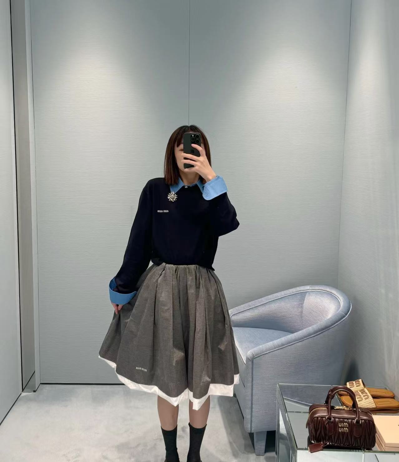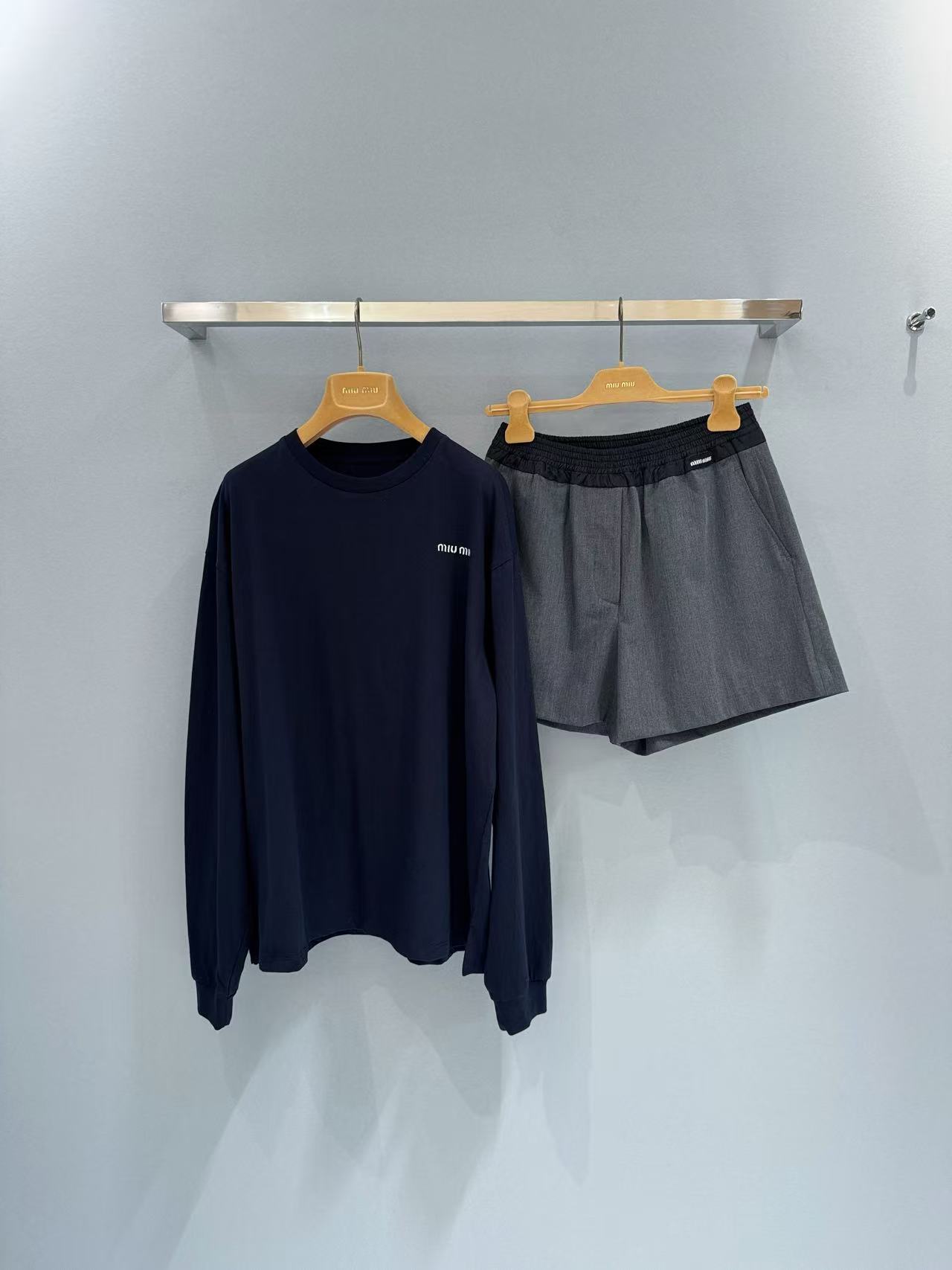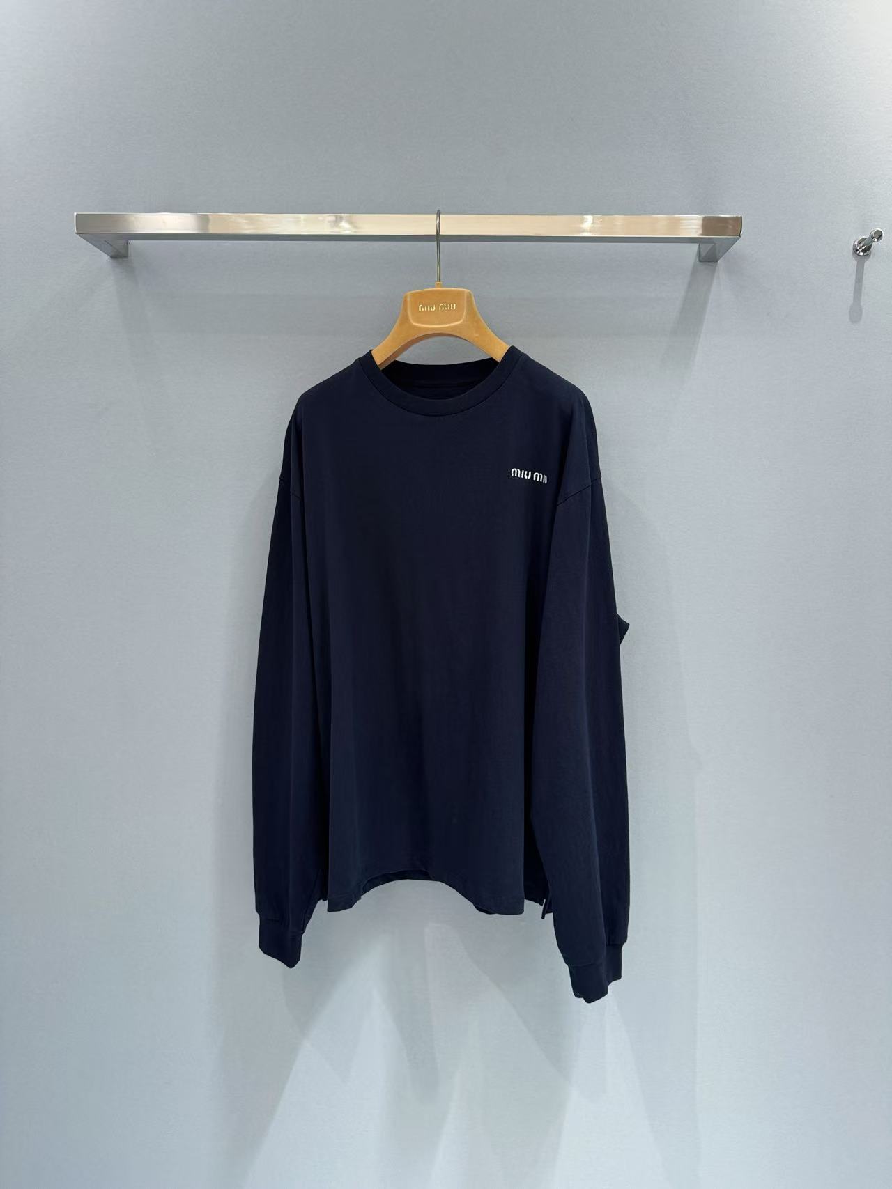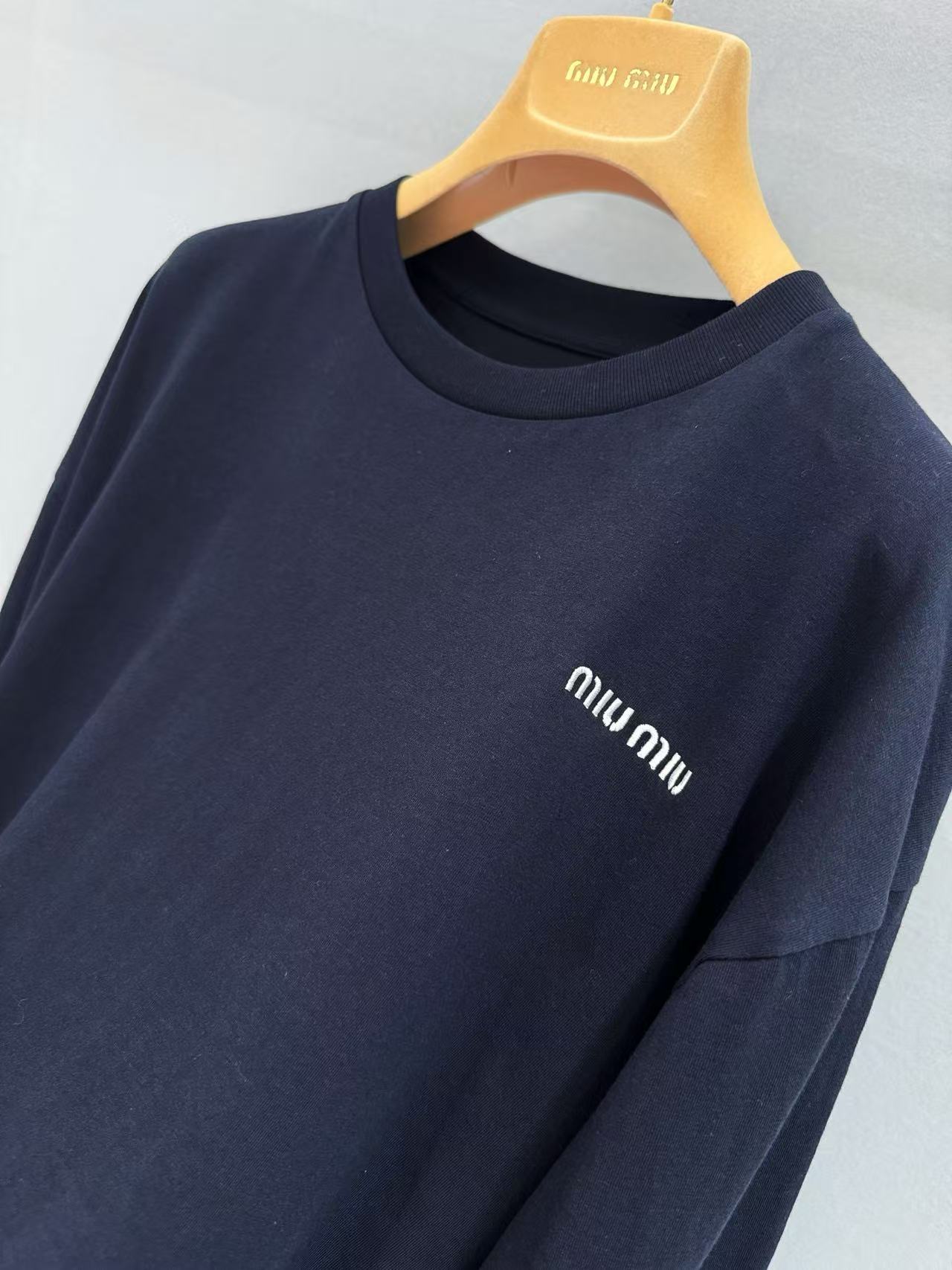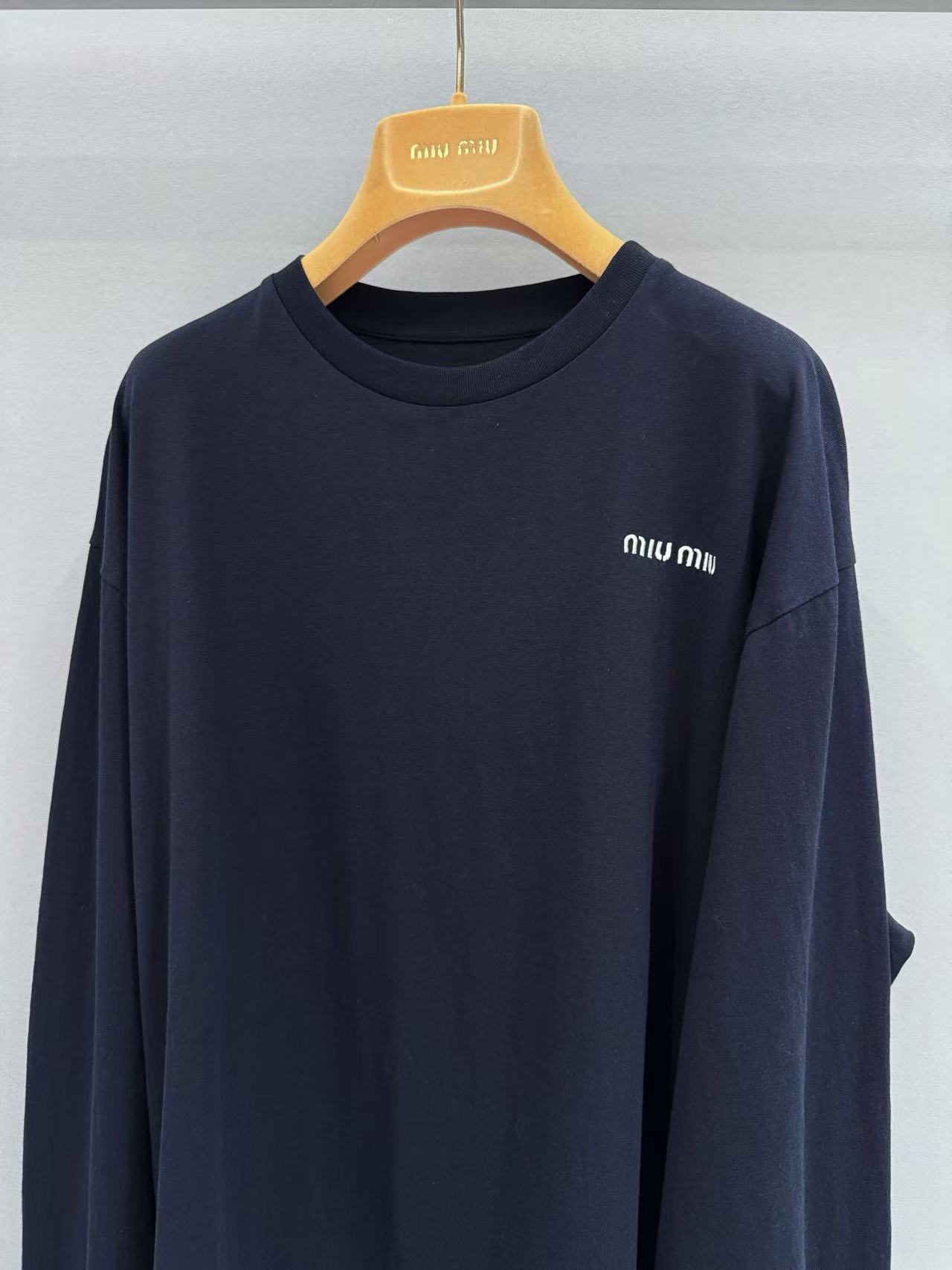 2025春夏  MiU家 藏藍色圓領長袖,時髦百搭的慵懶風神器