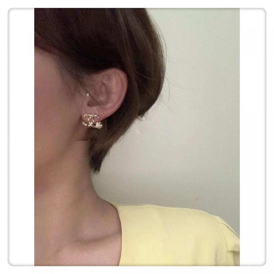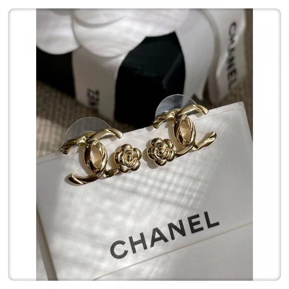 非常水的耳釘,這款山茶花耳釘小巧精緻超百搭,金色雙c加上一朵小小的山茶花真的特別美