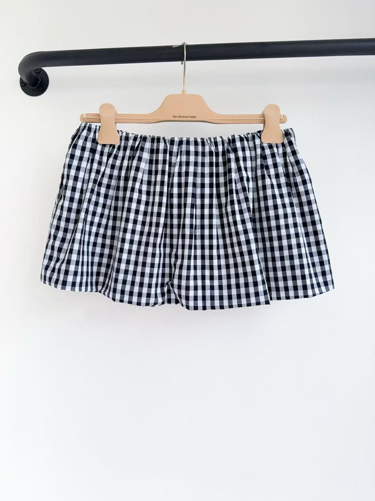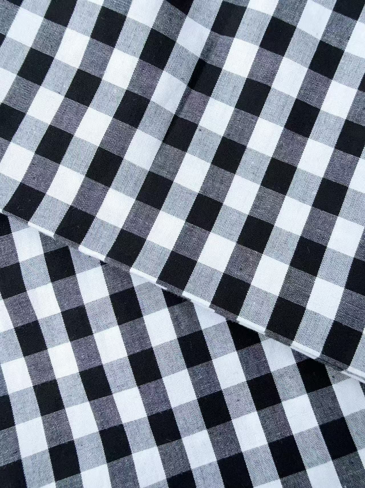 材質:定制黑白撞色細格紋材質,柔軟透氣,質感細膩,穿著舒適又有層次感。