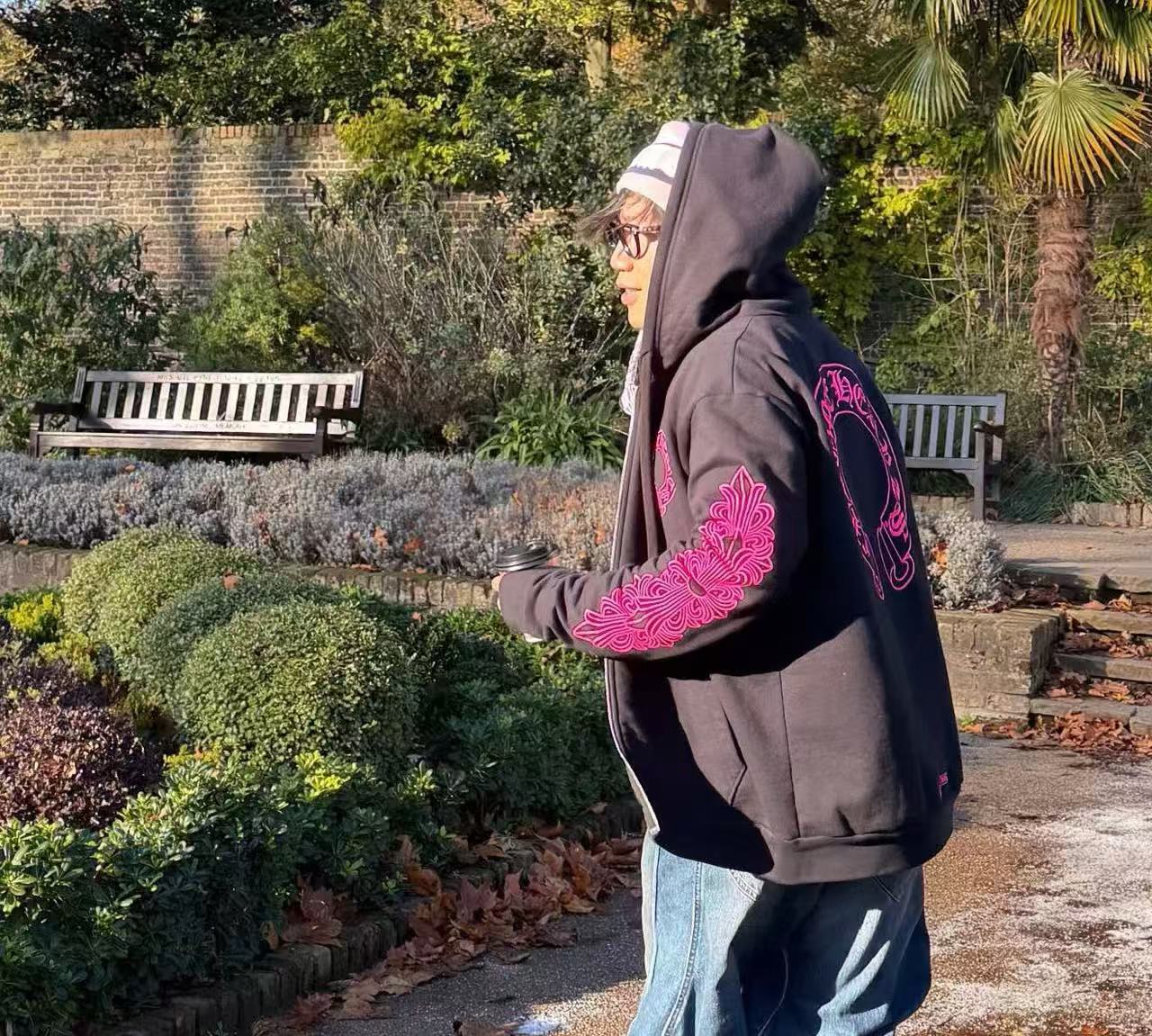 衛衣永遠是潮流界的話題製造機!這次要來分享這款充滿高街魅力、並有 Blackpink 同款風格的黑色連帽衛衣。它將克羅心標誌性的藤蔓十字元素與吸睛的粉色馬蹄圖案完美結合,絕對是今年秋冬最不能錯過的潮流單品!
