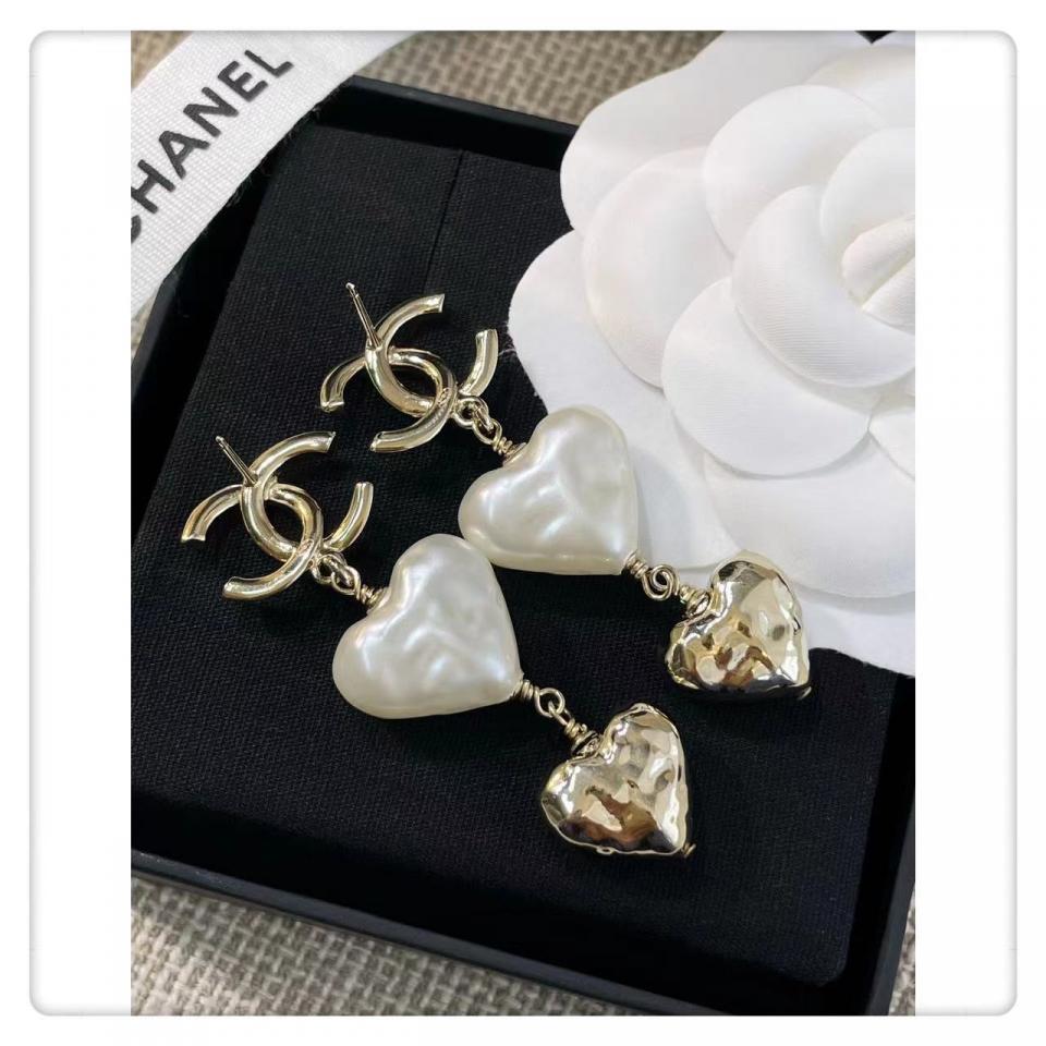 經典的雙C搭配白愛心金色愛心,白色愛心是有點像巴洛克珍珠的質感,凹凸起伏復古又時尚,誰戴誰美