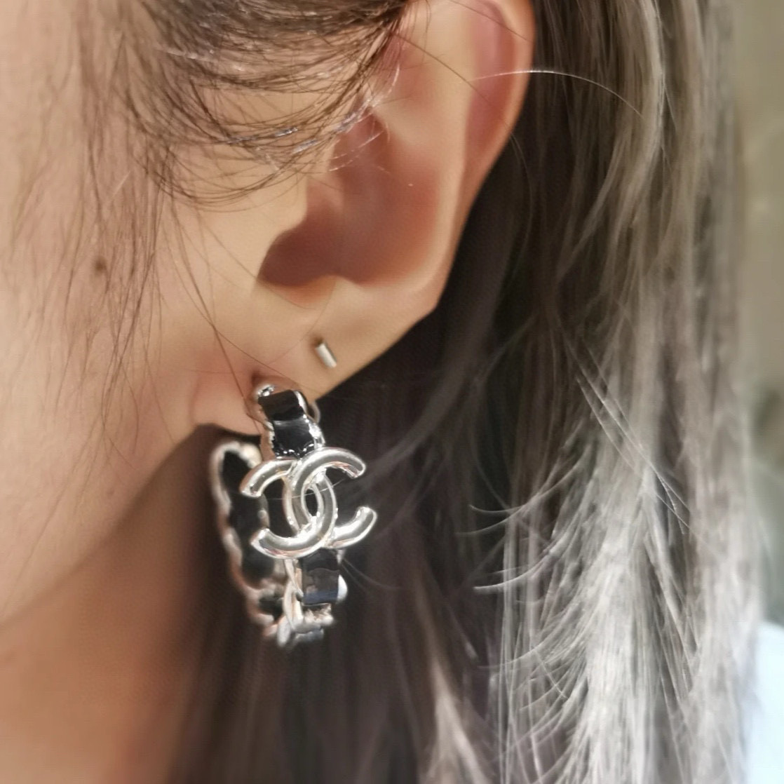 2025春夏新品 C家 鏈圈穿皮耳環