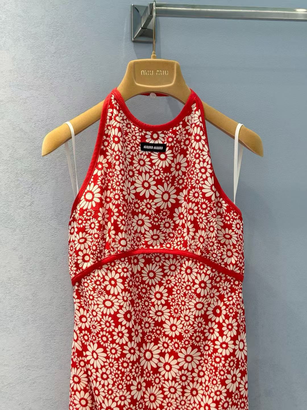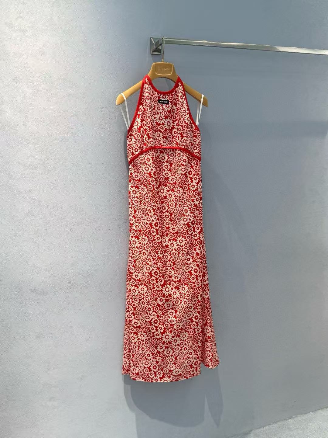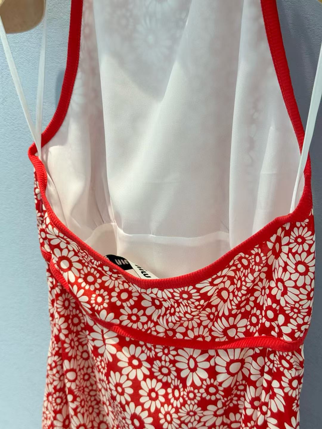 2025春夏 MIU家 綢絲碎花掛脖吊帶裙