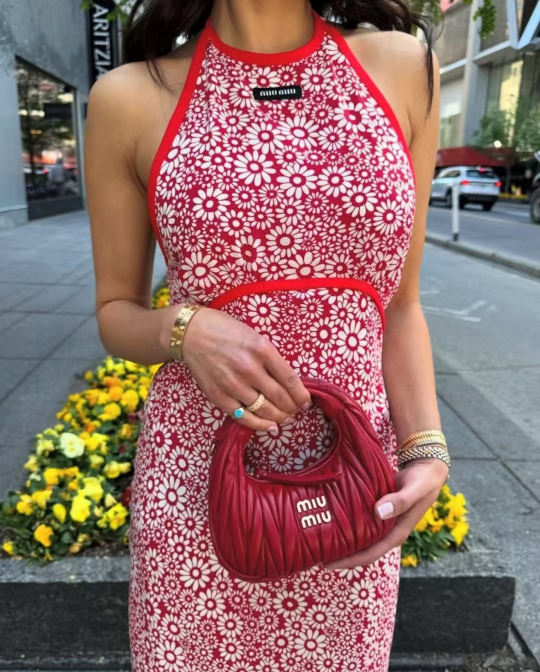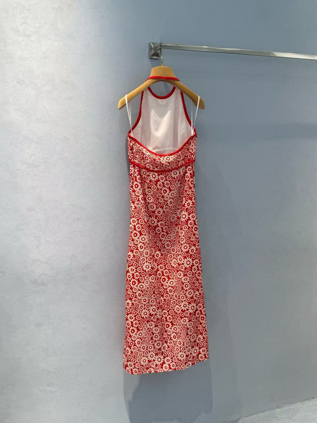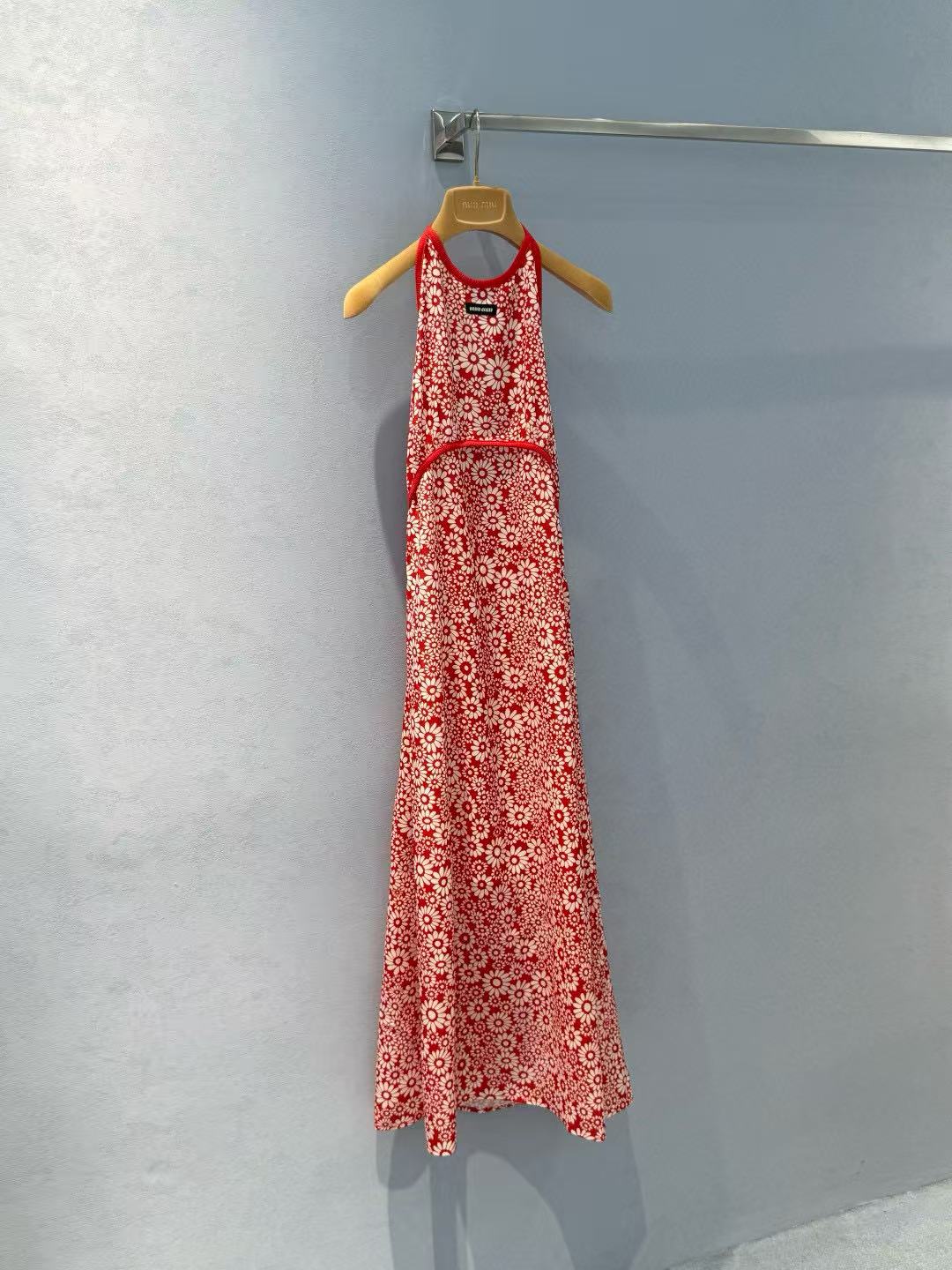 2025春夏 MIU家 綢絲碎花掛脖吊帶裙