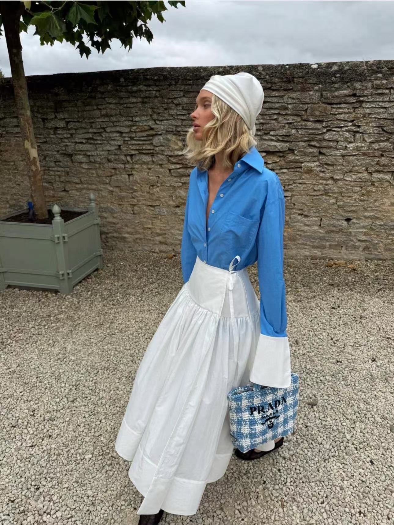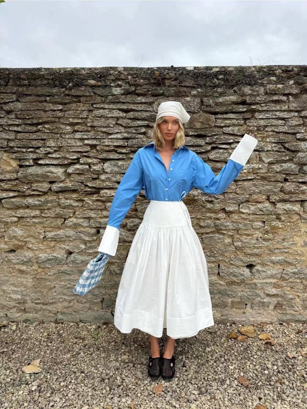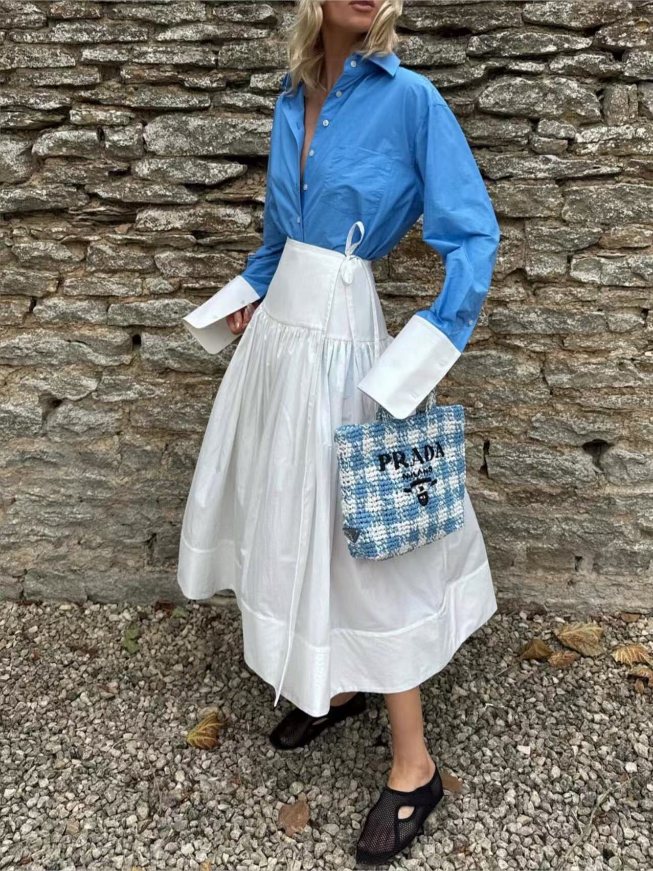 搭配系帶圍裹半裙,輕鬆營造都會感