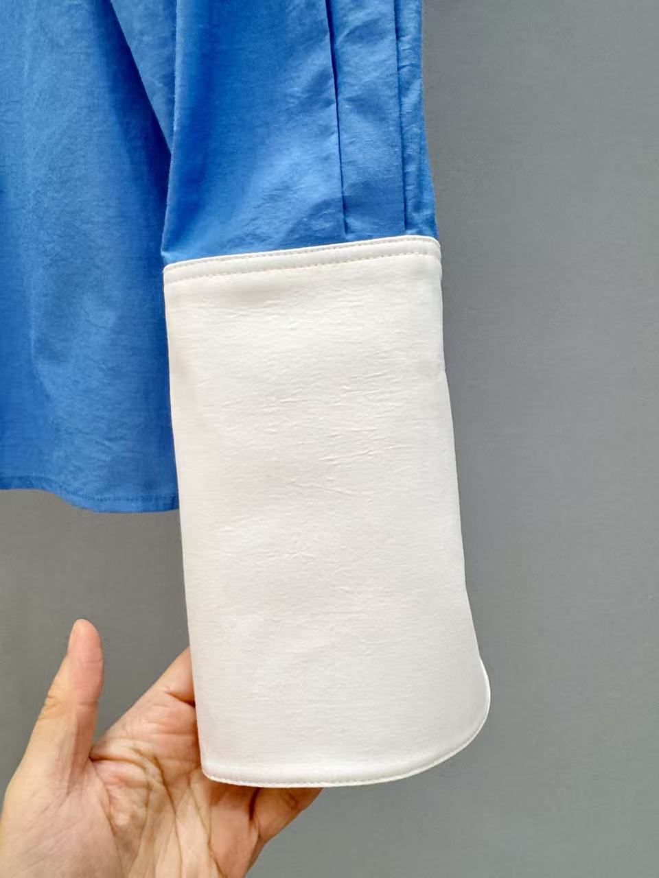 藍白撞色的清爽感,真的很難不心動!這款拼色襯衫帶有一點 Oversize 的慵懶輪廓,穿起來隨性卻很有型。