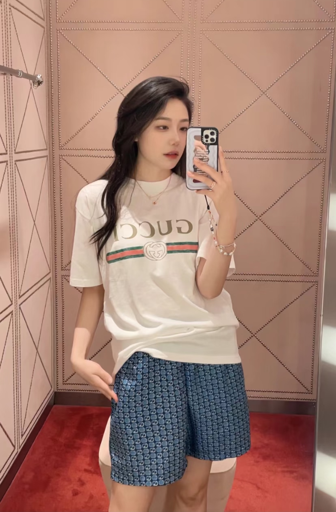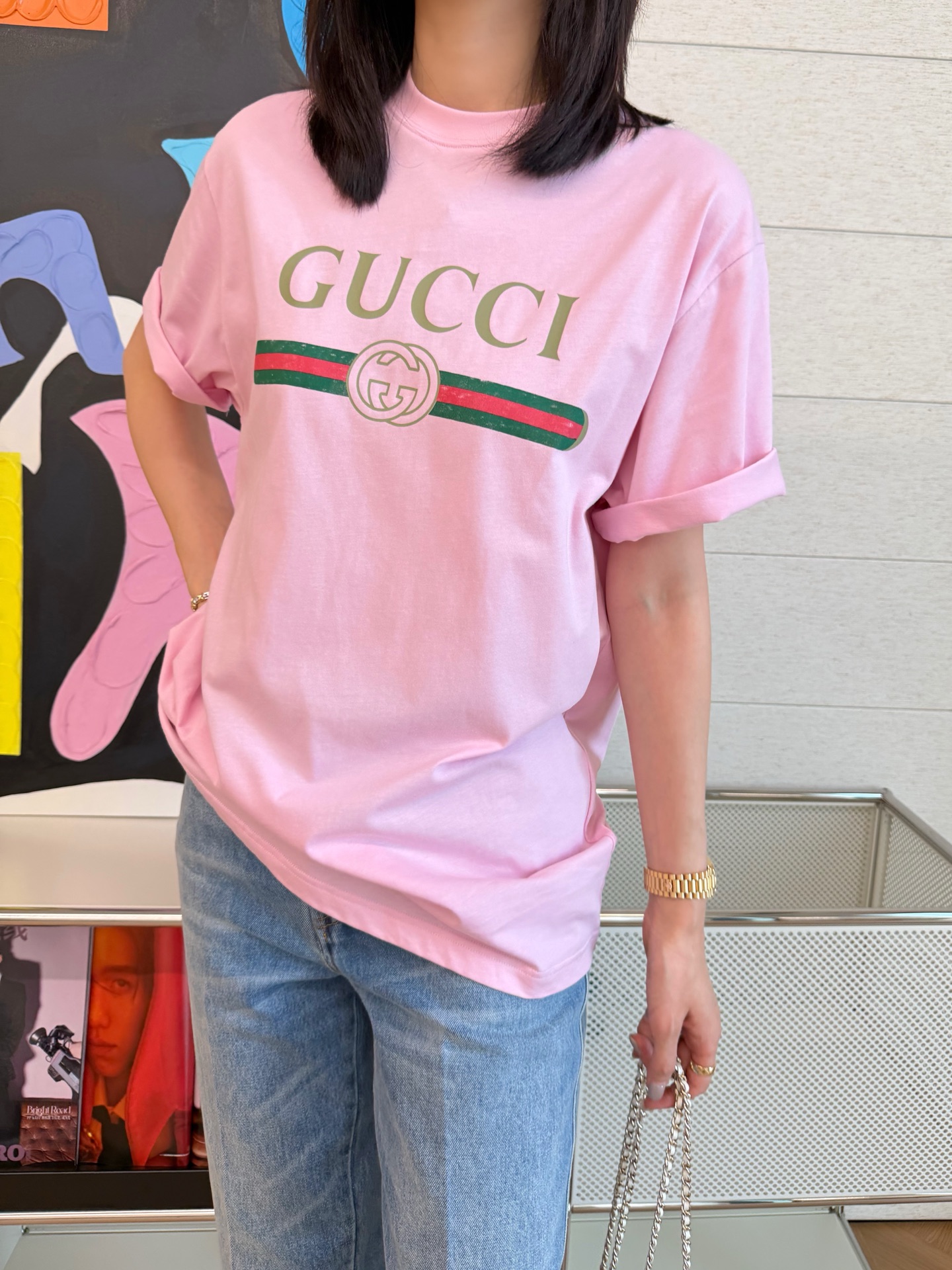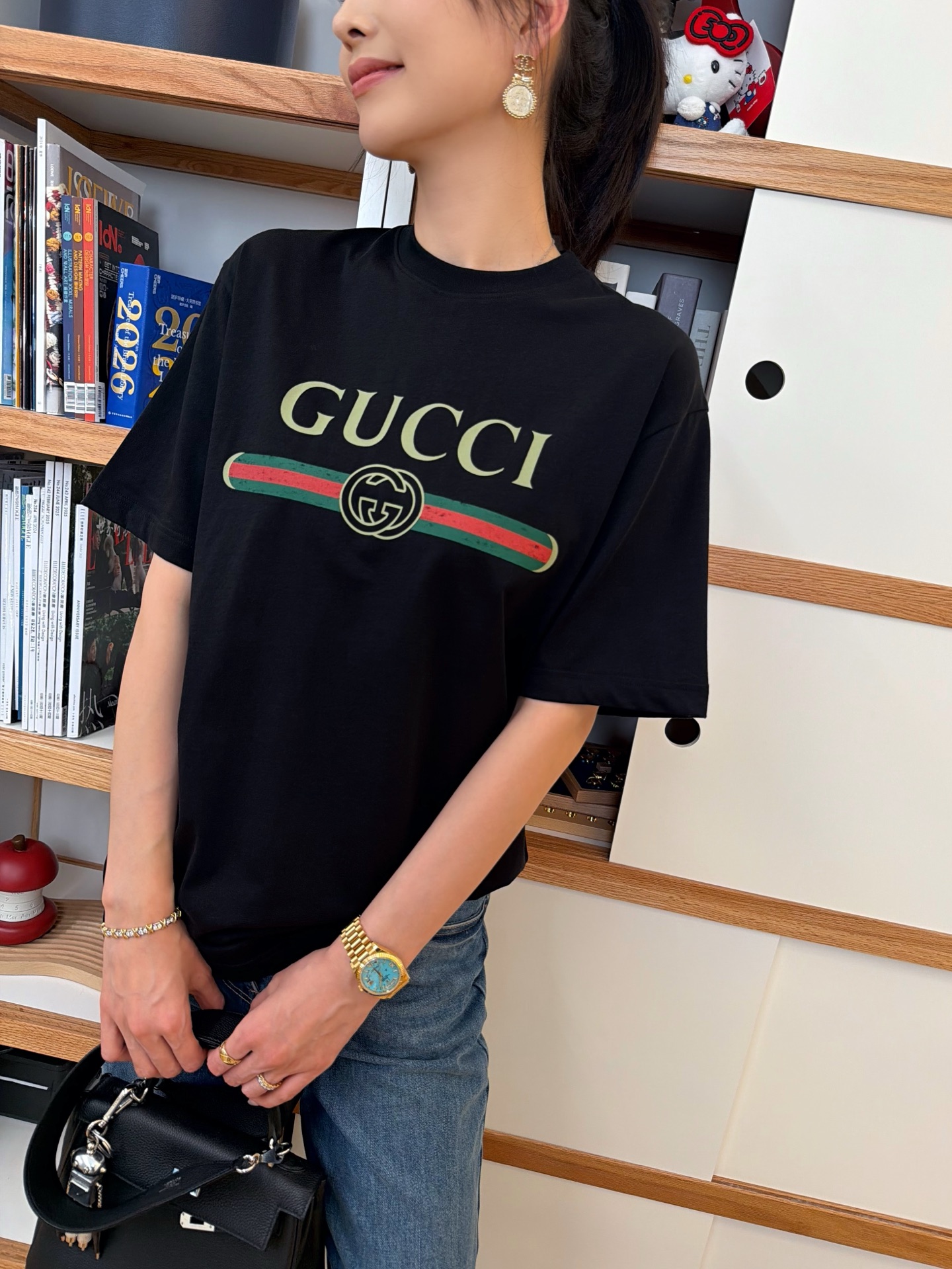 最吸引人的地方,就是那條經典的雙G織帶印花設計。簡單俐落卻自帶高級氛圍,不需要太多搭配就能輕鬆穿出質感。