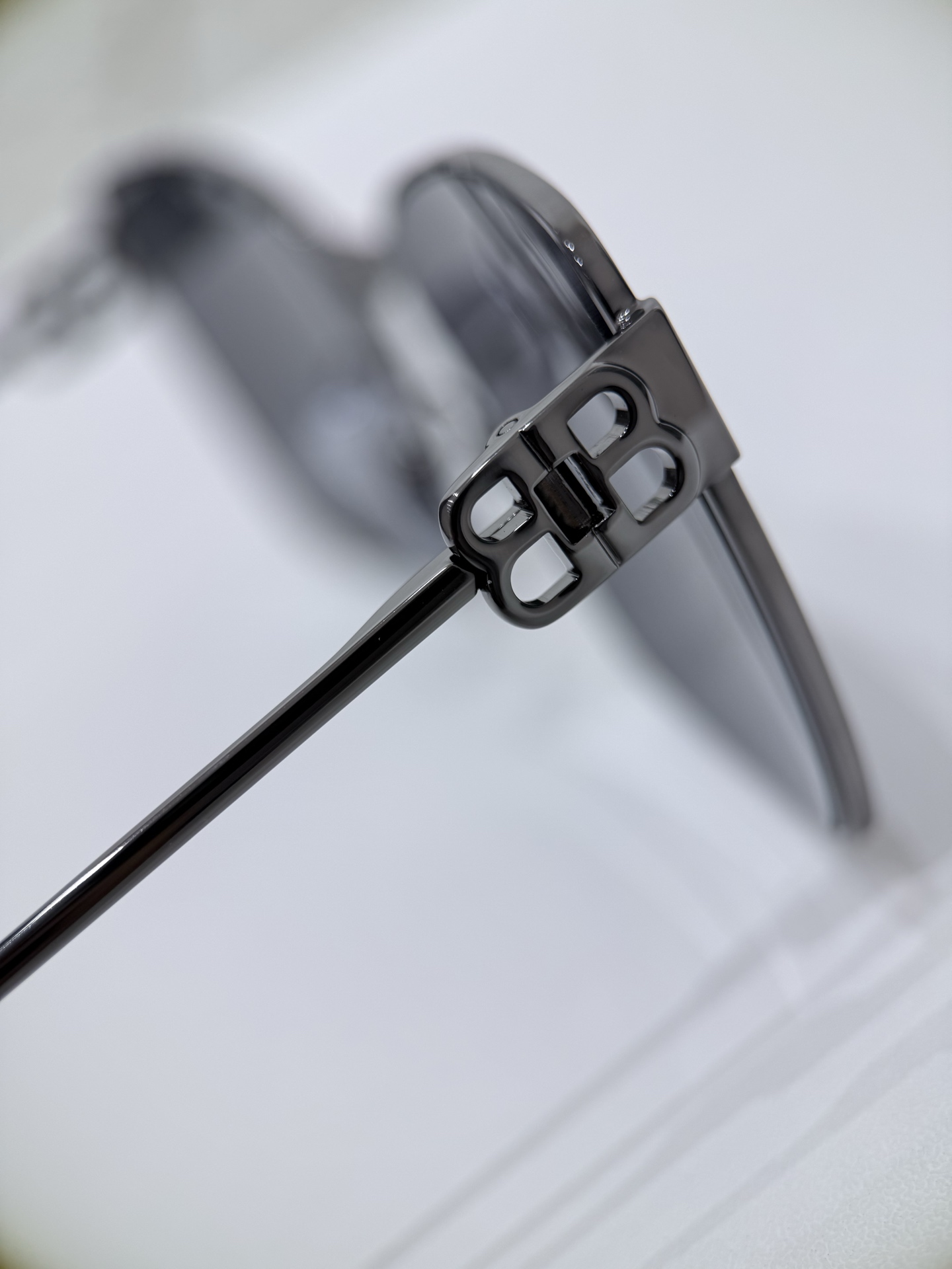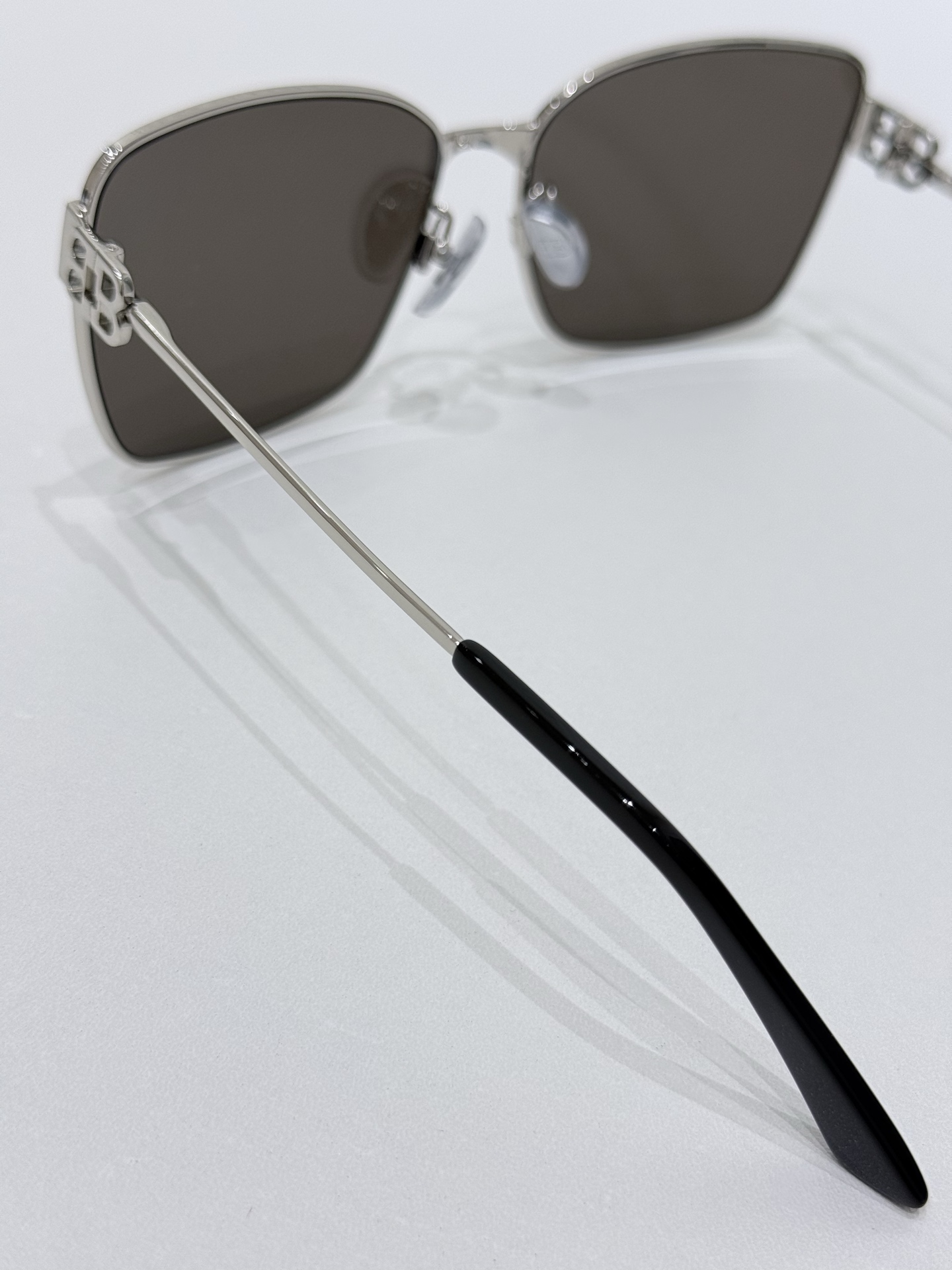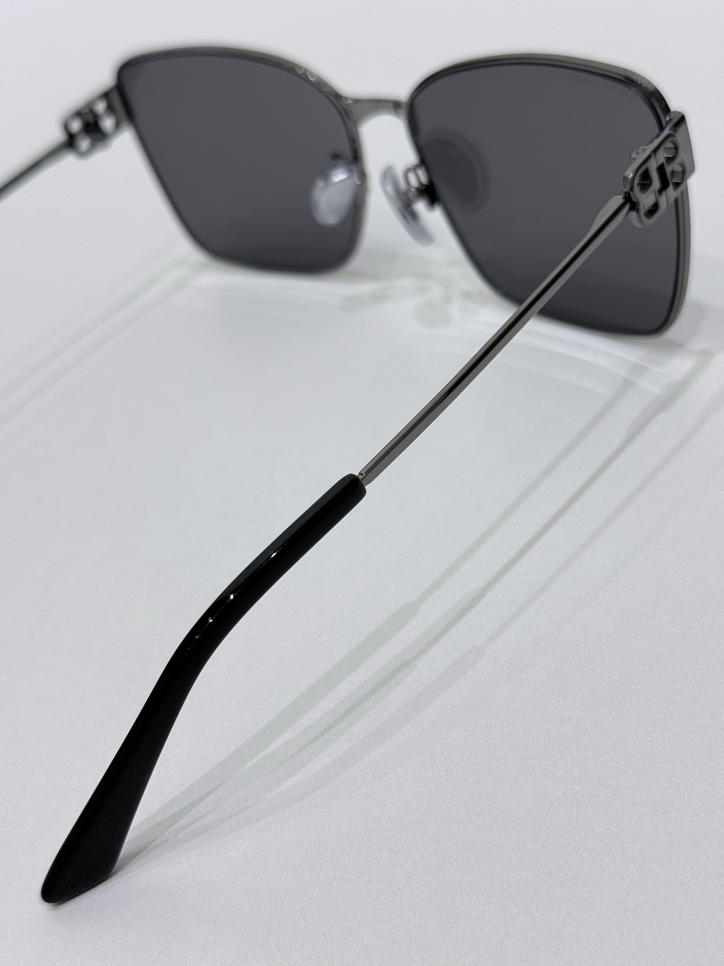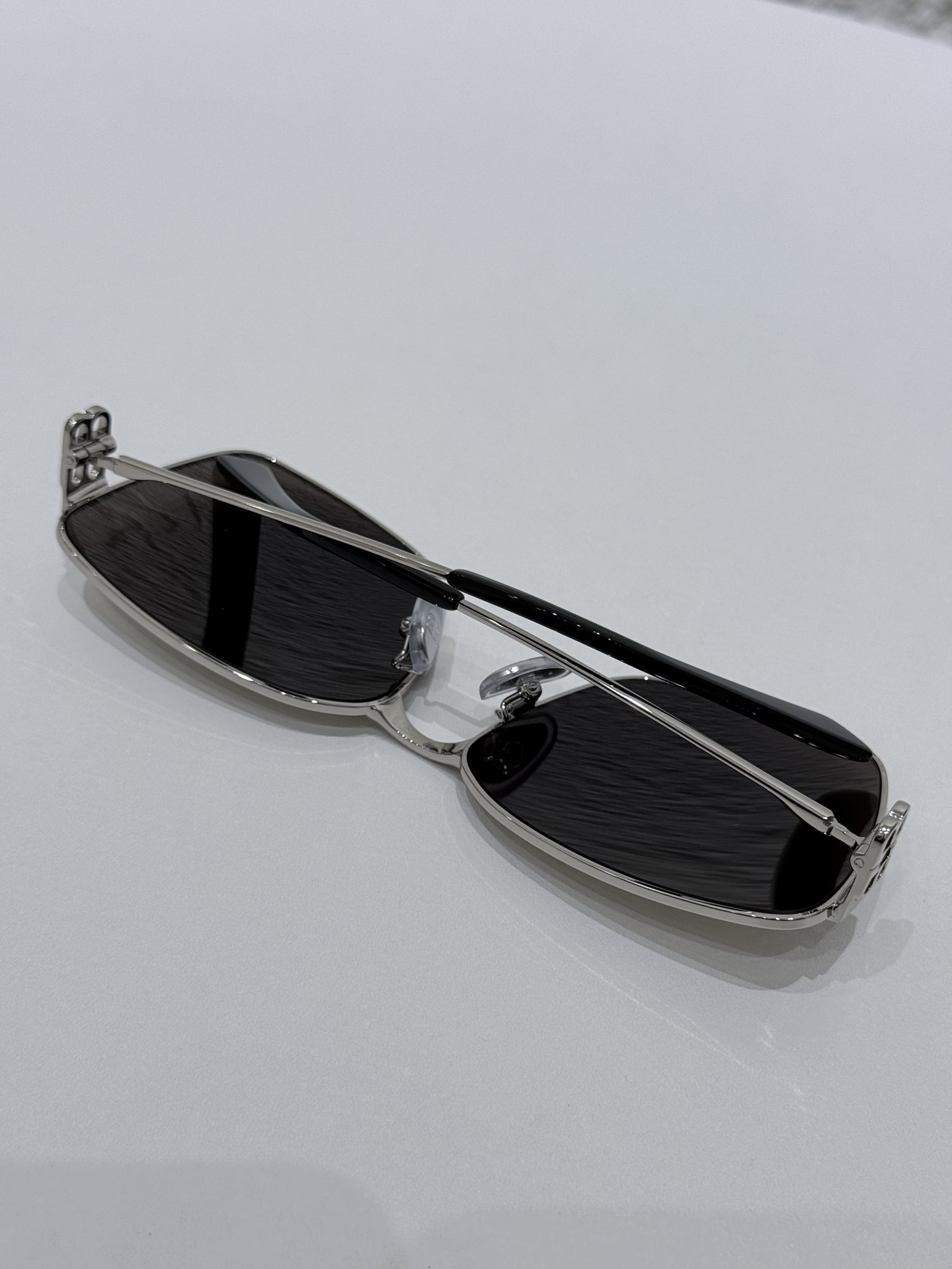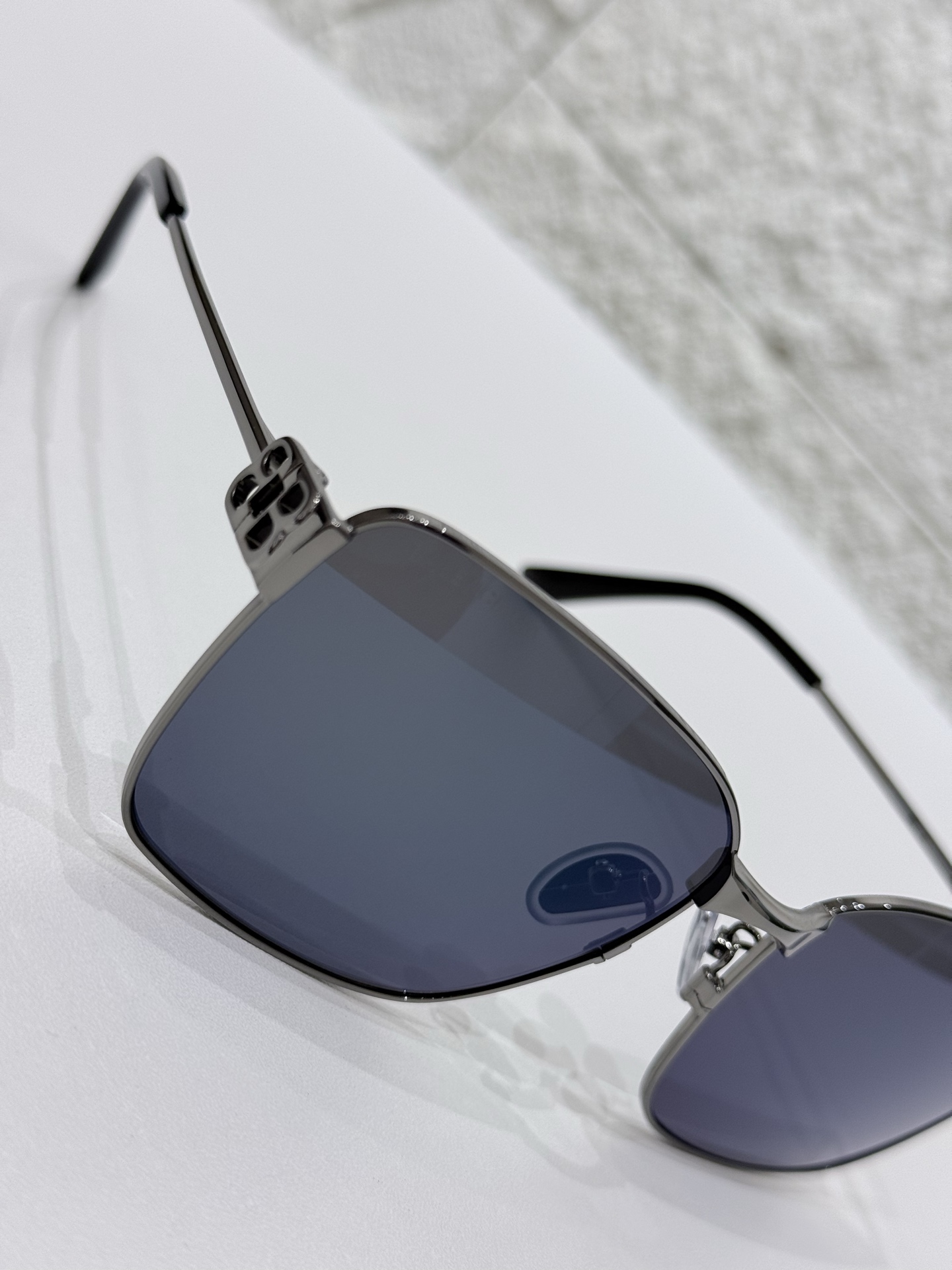 整體鏡框以簡潔俐落的輪廓為主軸,沒有多餘裝飾,卻透過金屬光澤與結構線條展現出品牌一貫的前衛美學。