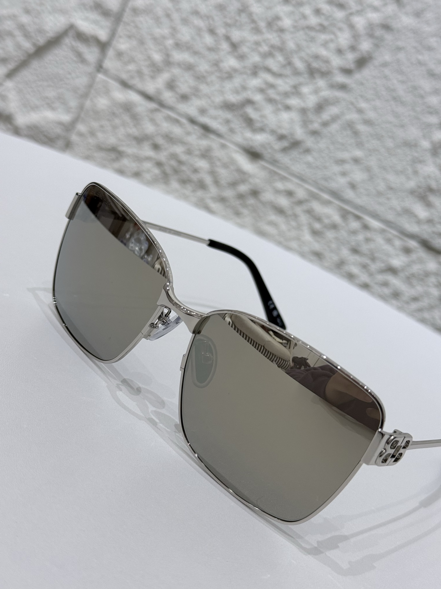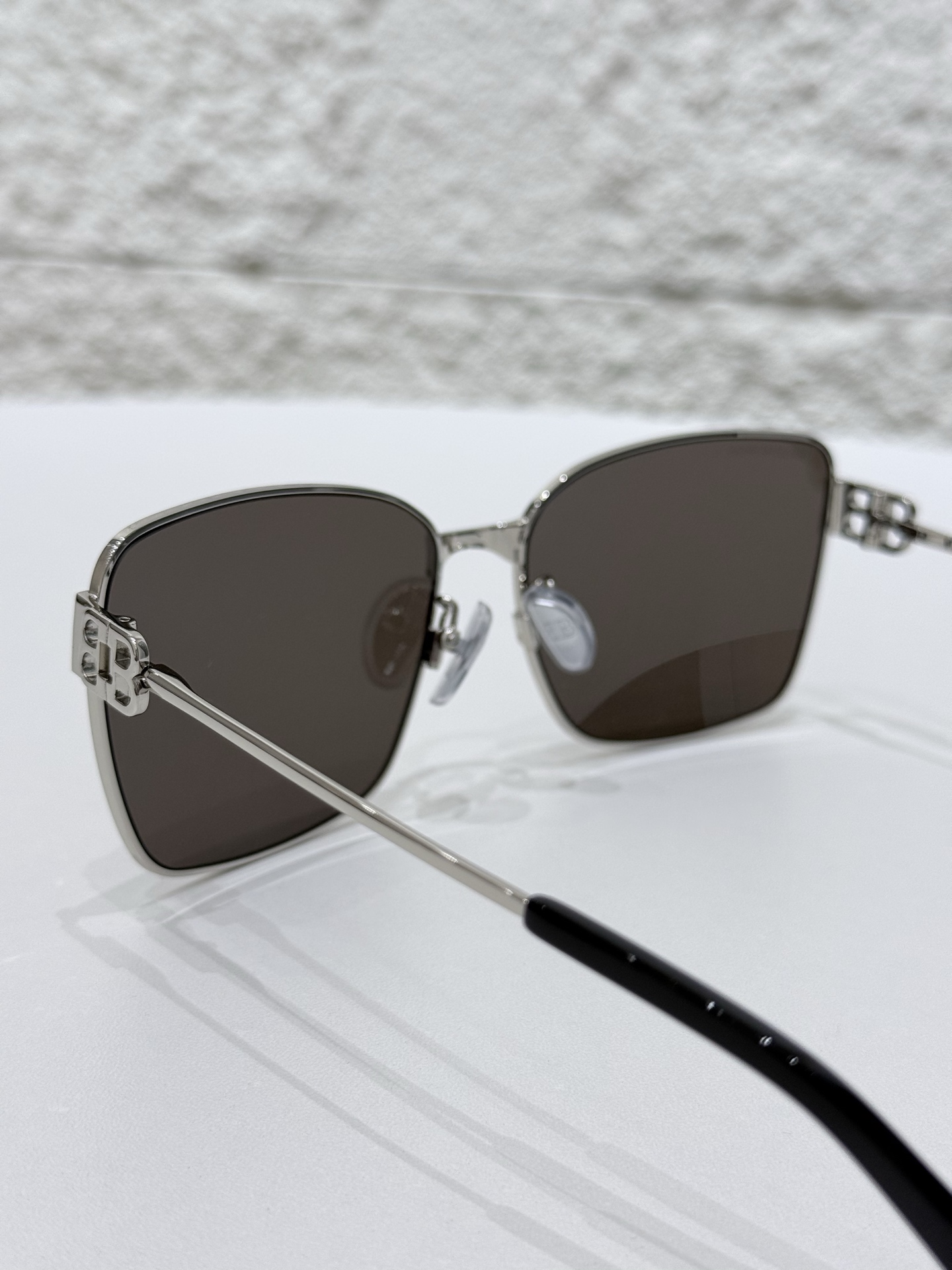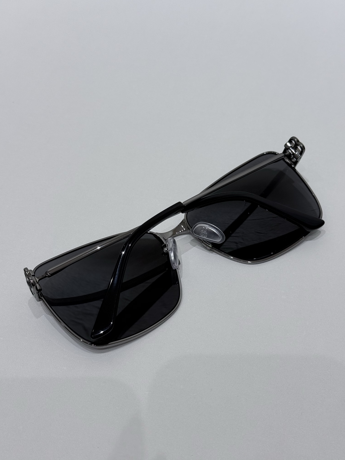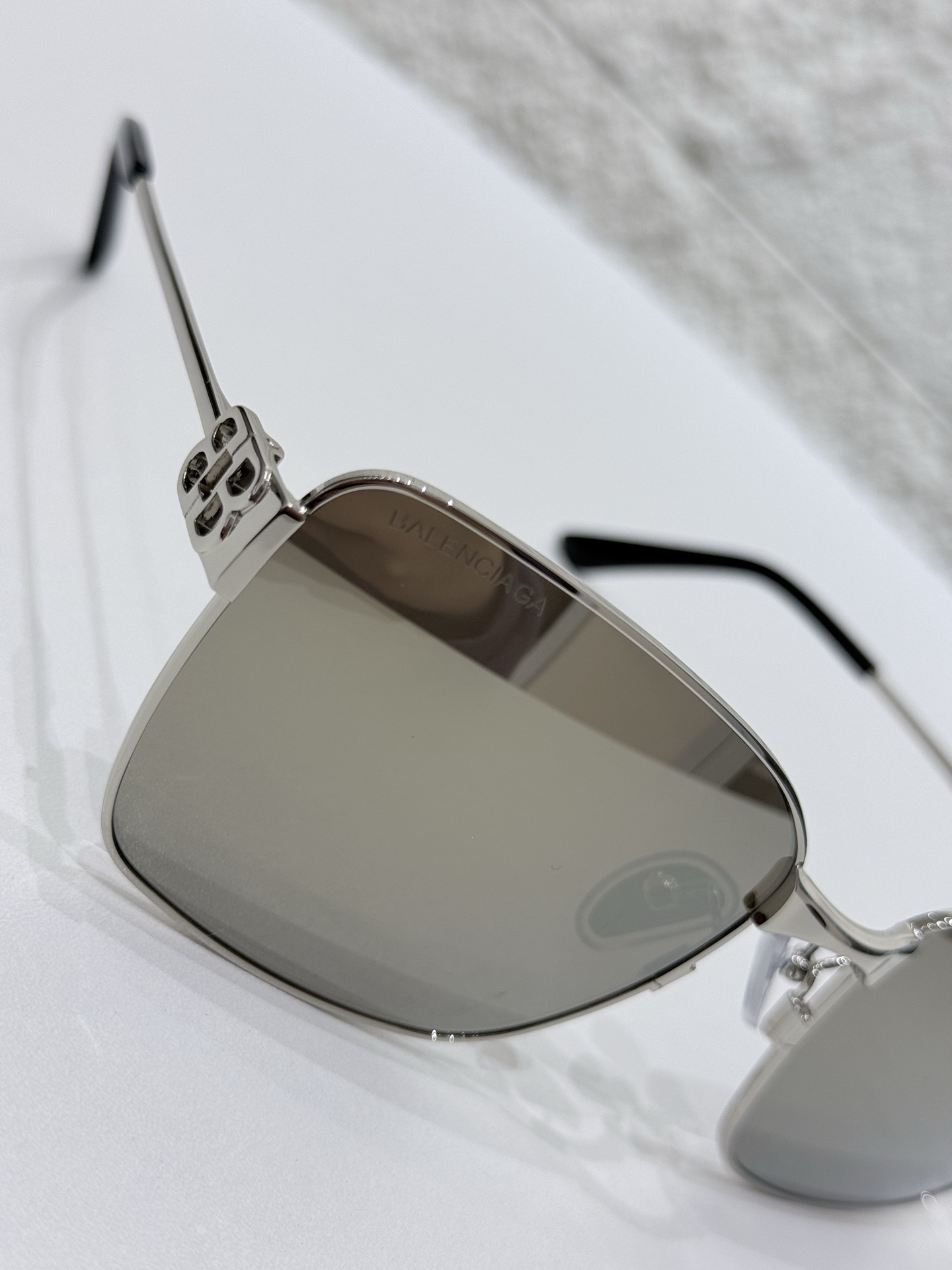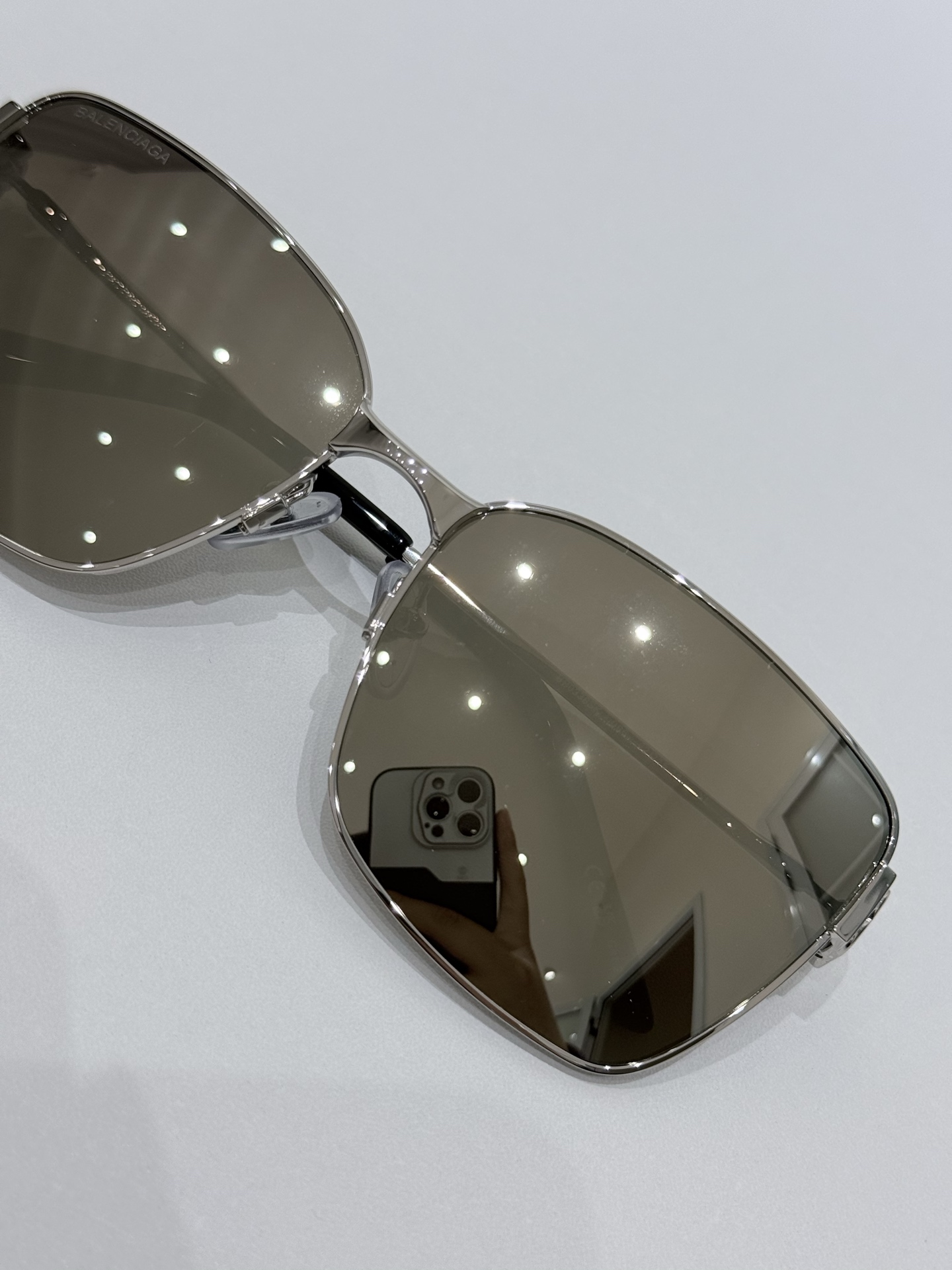 整體鏡框以簡潔俐落的輪廓為主軸,沒有多餘裝飾,卻透過金屬光澤與結構線條展現出品牌一貫的前衛美學。