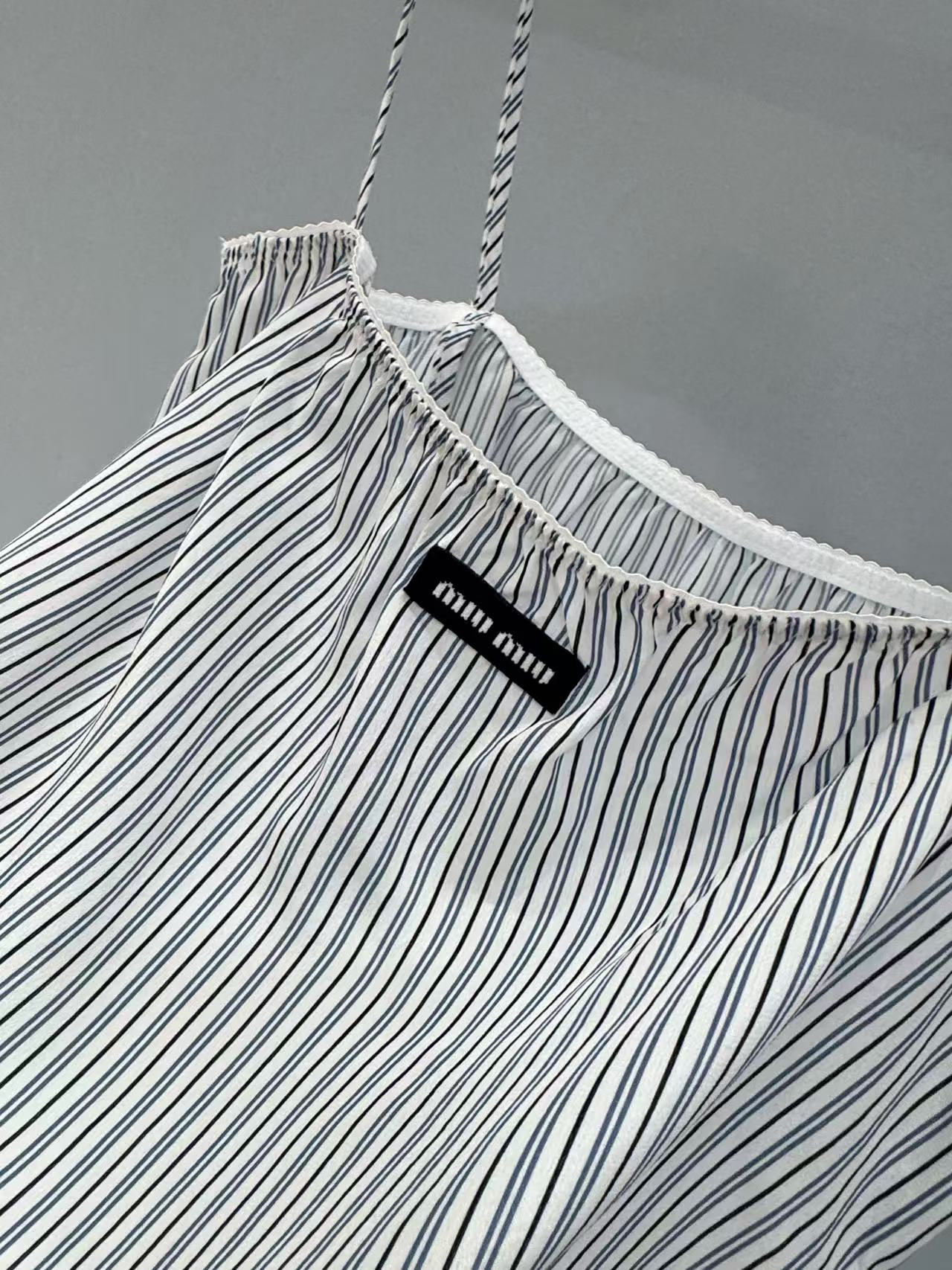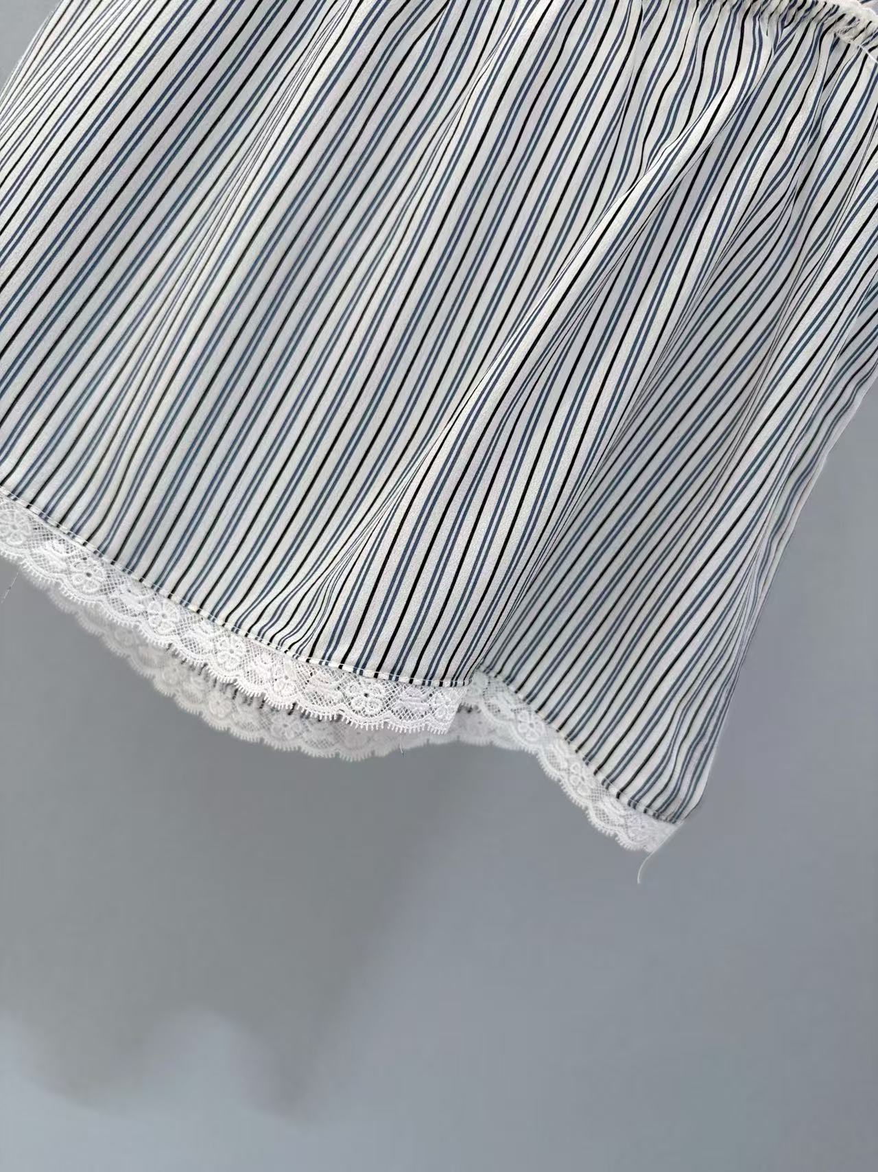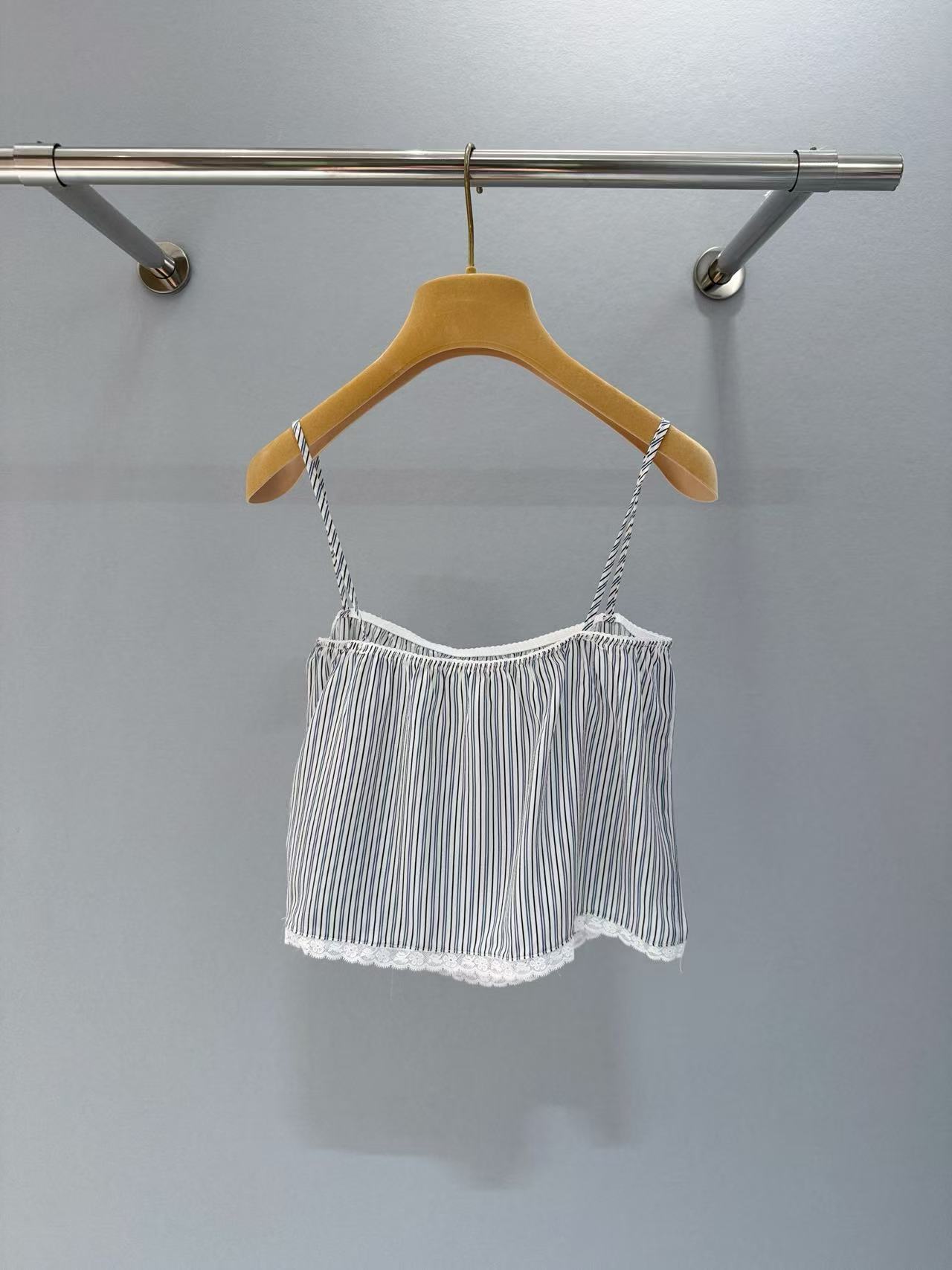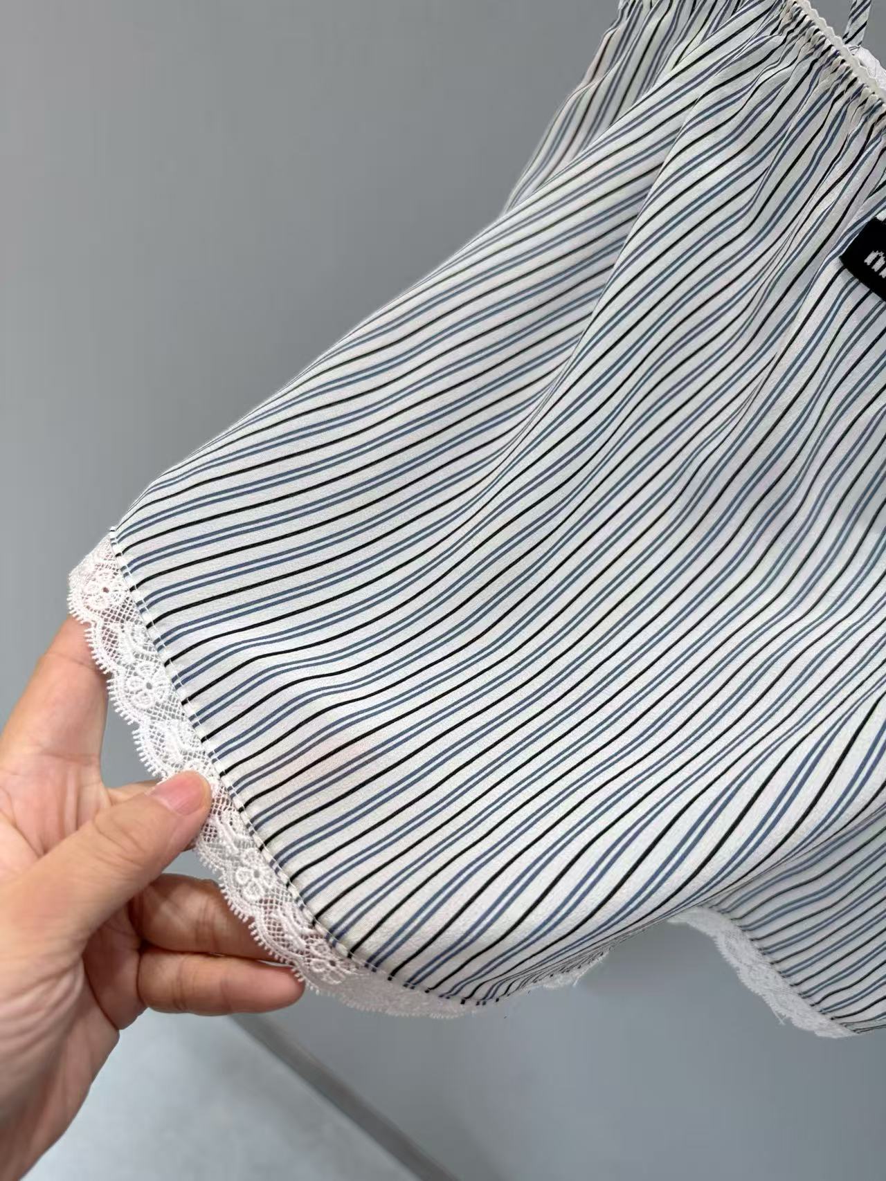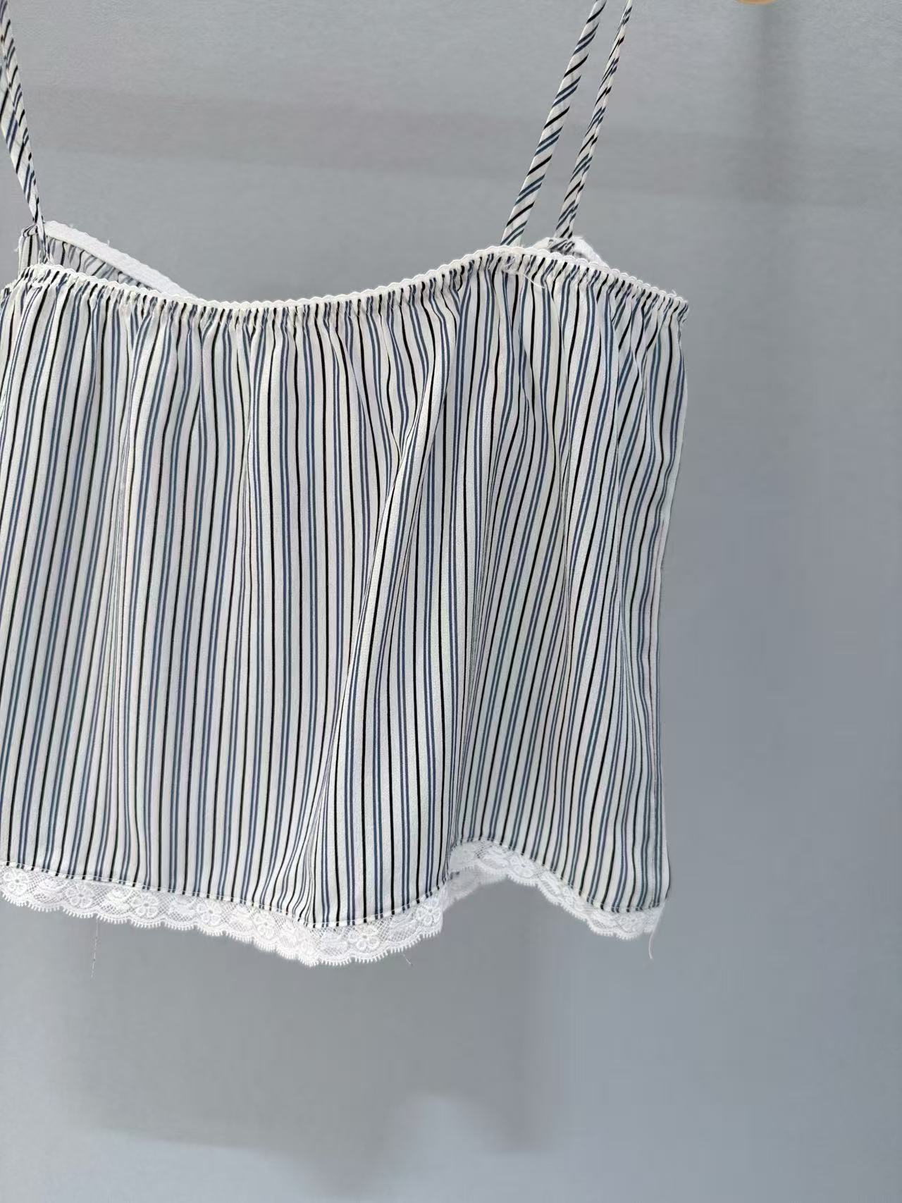 夏日穿搭想要時髦又不費力,這套真的必須收!清爽條紋加上蕾絲滾邊的細節設計,甜美中又帶點性感,細肩帶設計微露鎖骨線條,自帶夏日純欲氛圍感。