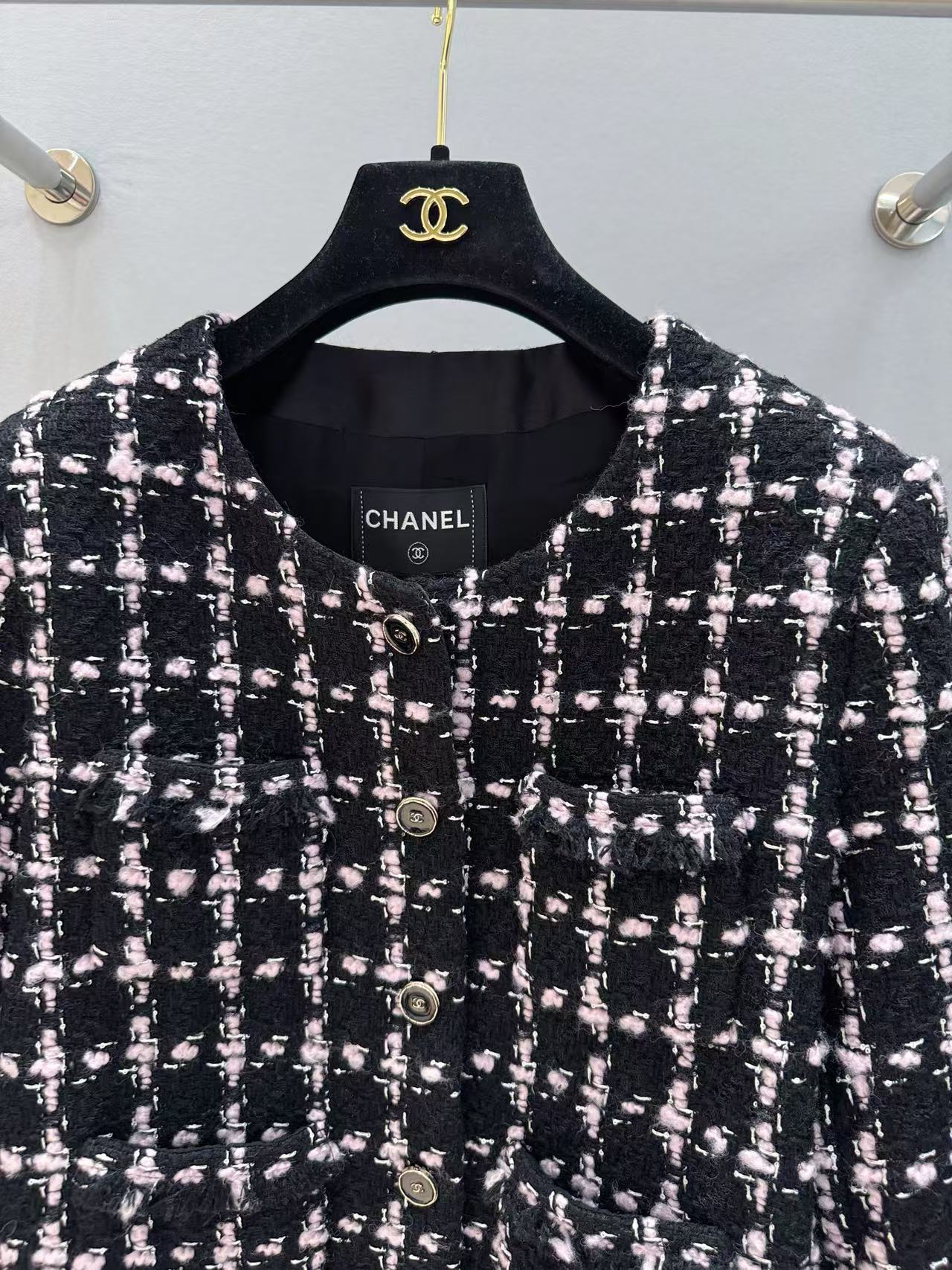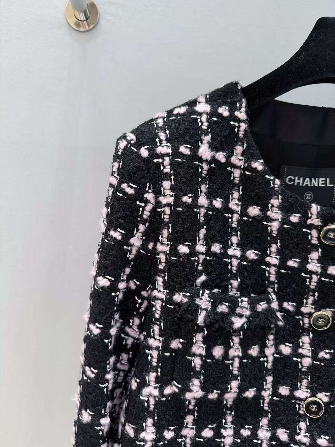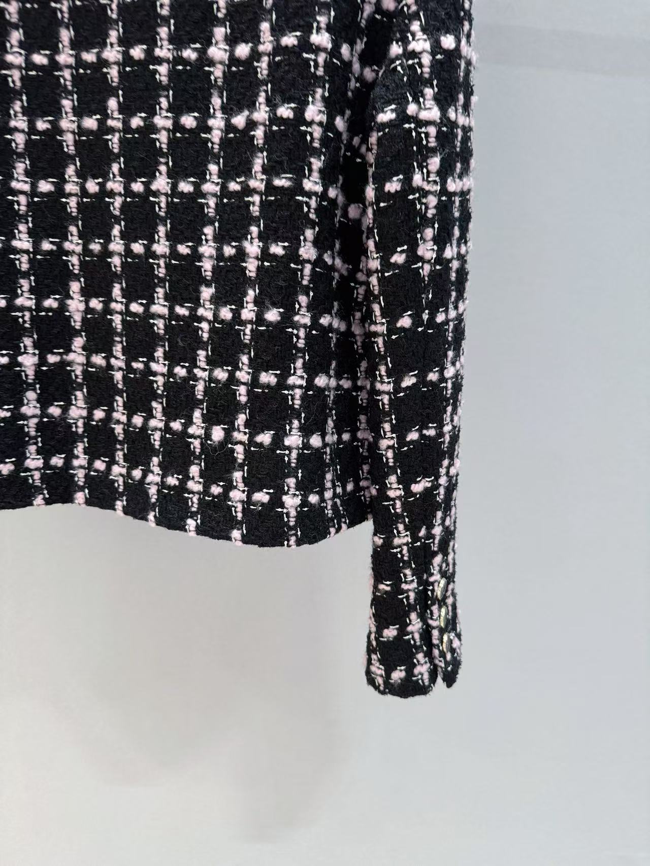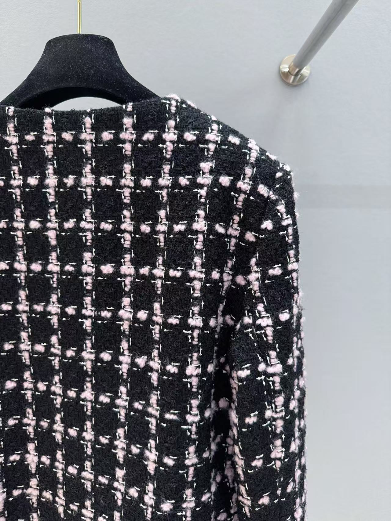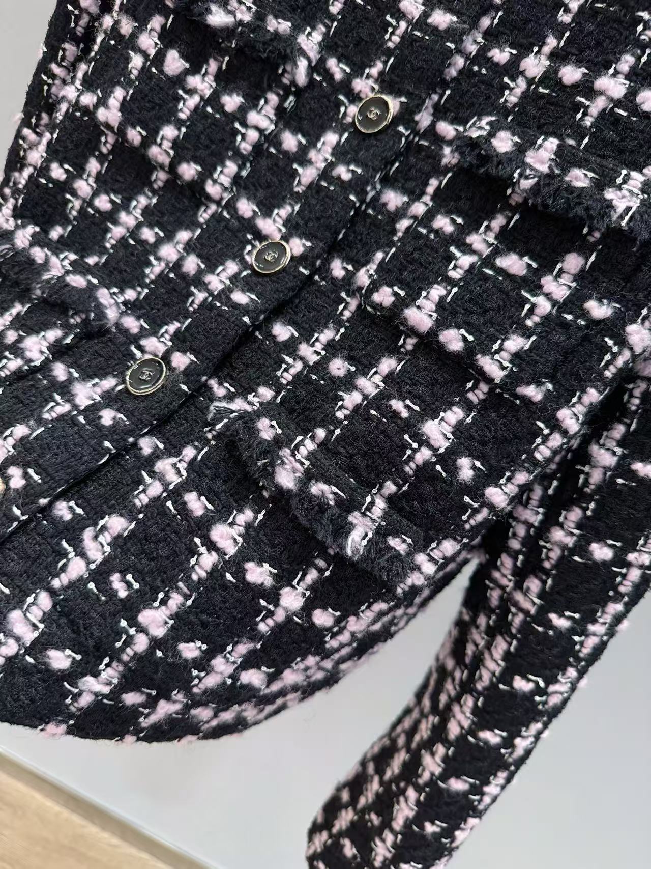 這件粗花呢外套一上身,立刻散發出優雅與嬌俏兼具的氛圍。黑拼粉的花呢配色,既經典又帶點俏麗氣息,完美詮釋了香家獨有的女性魅力。