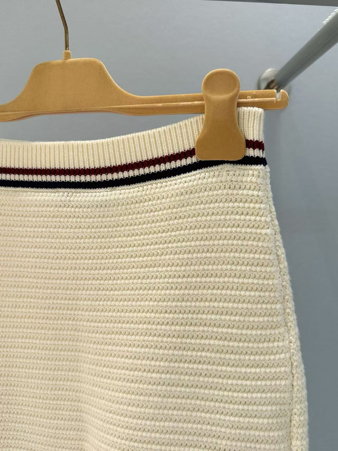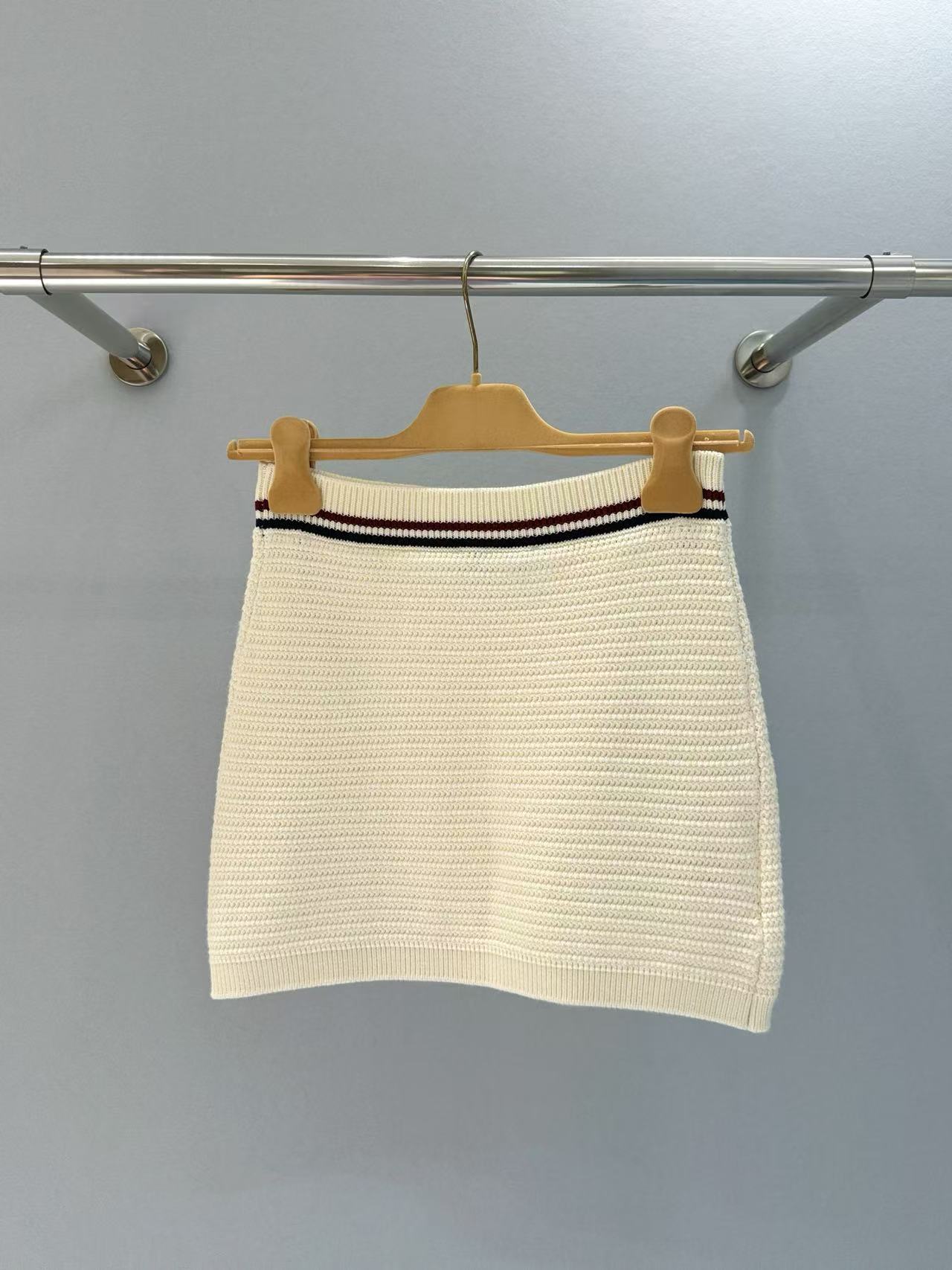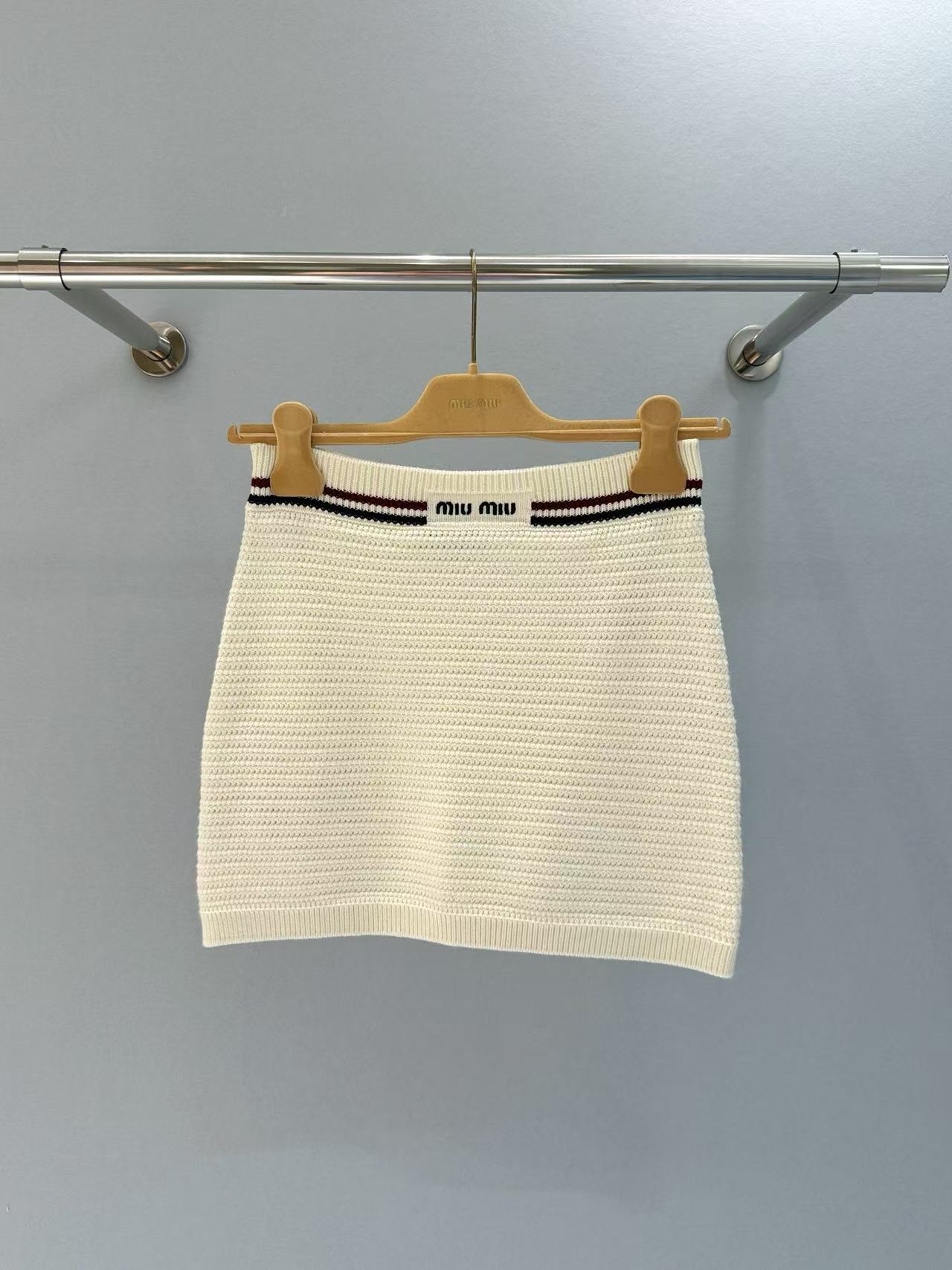以撞色條紋與品牌刺繡徽標作為視覺亮點,清新又有辨識度,完美體現 Miu 系女孩的甜美調性。