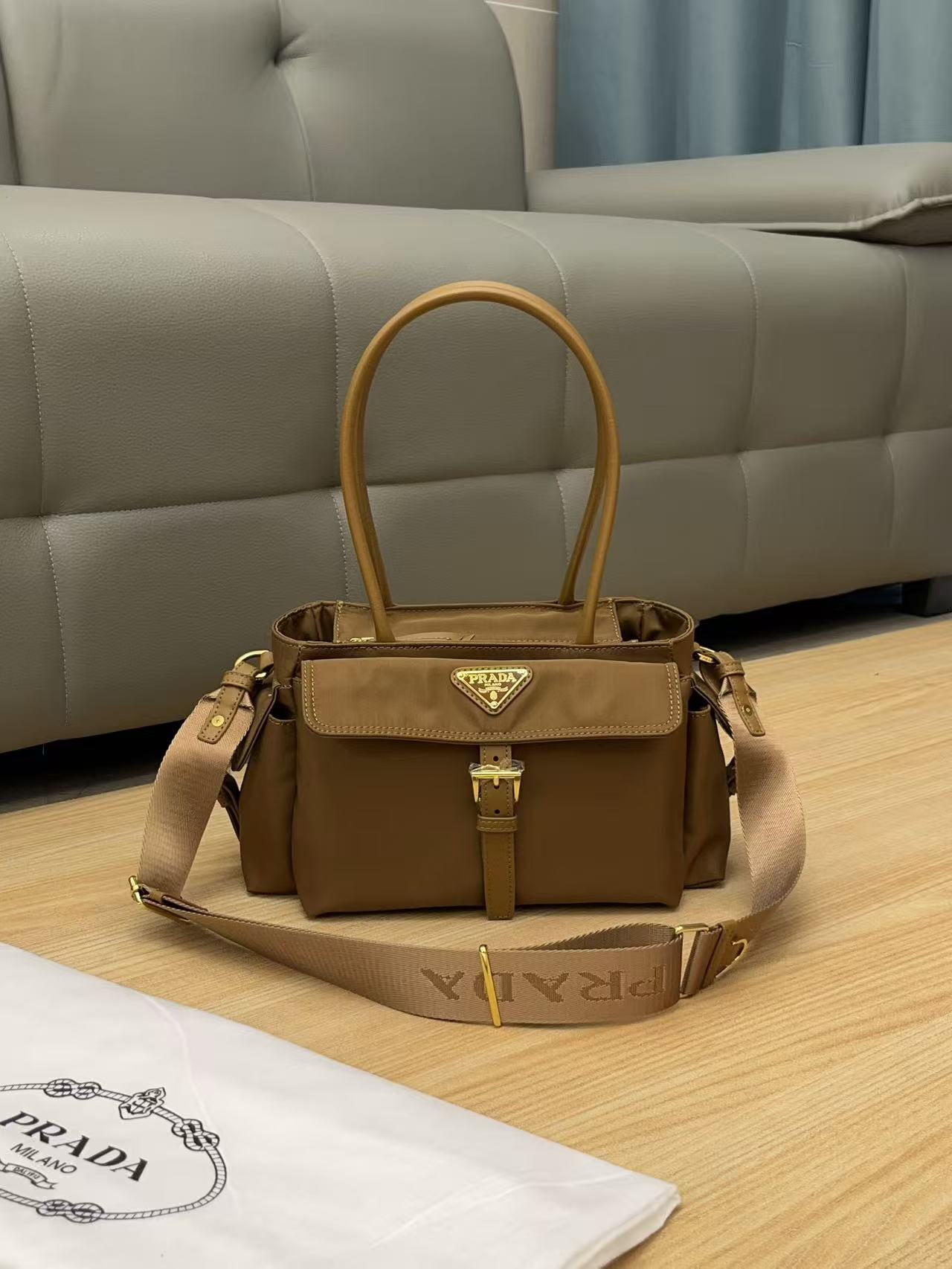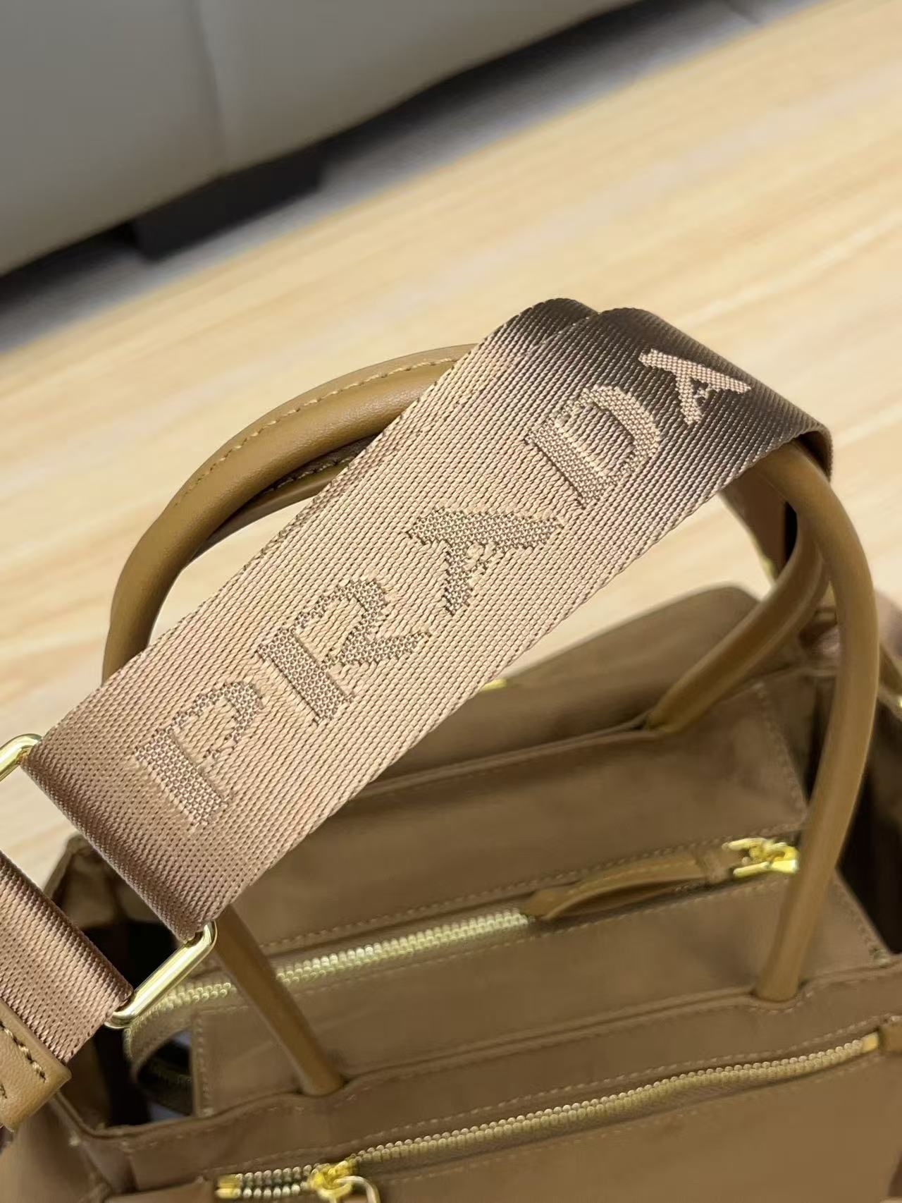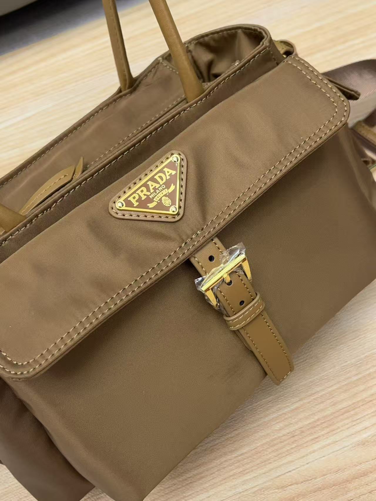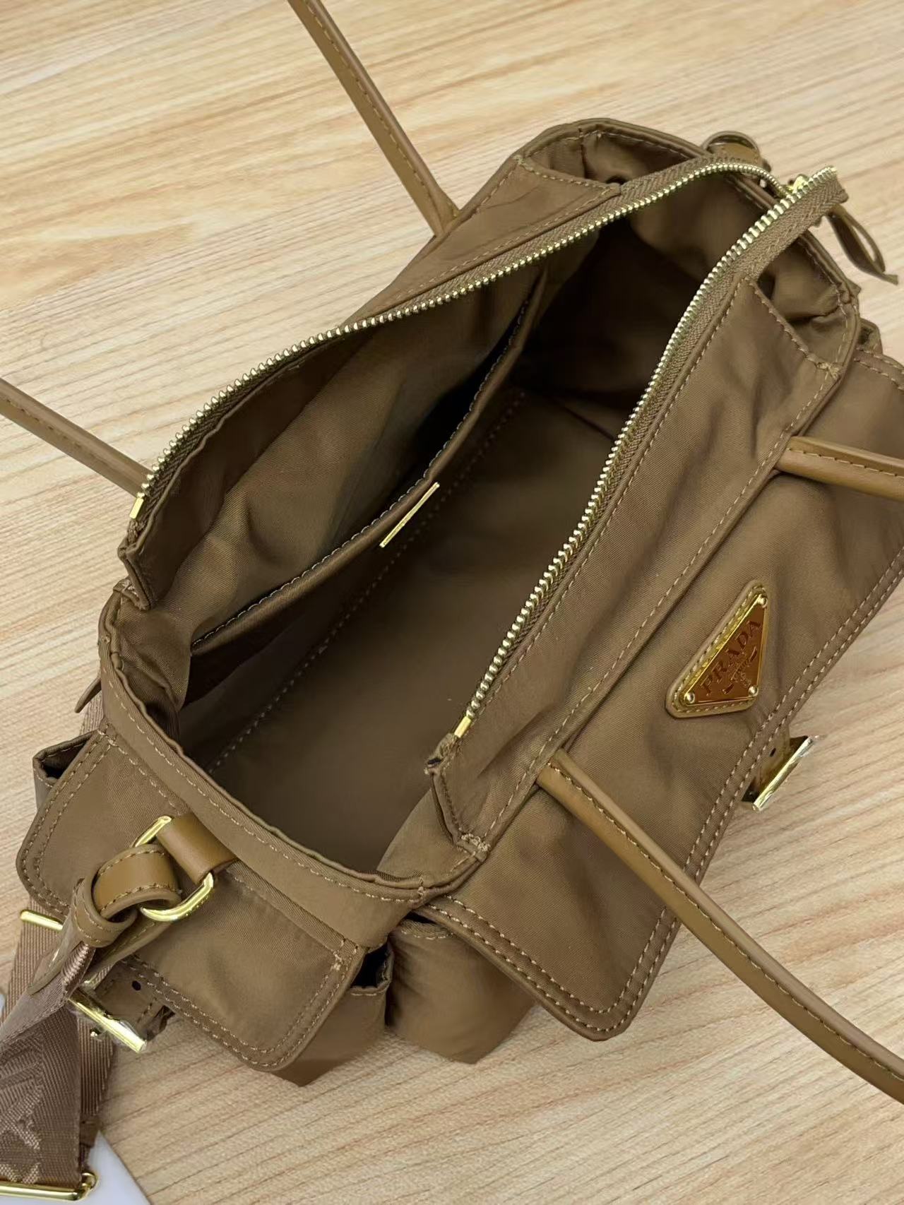 經典三角標,尼龍搭配小牛皮拼接,手提把全是小牛皮握感超舒適,還附贈可拆式長肩帶,隨手切換手提、肩背、斜跨三種玩法,實用度直接滿分!