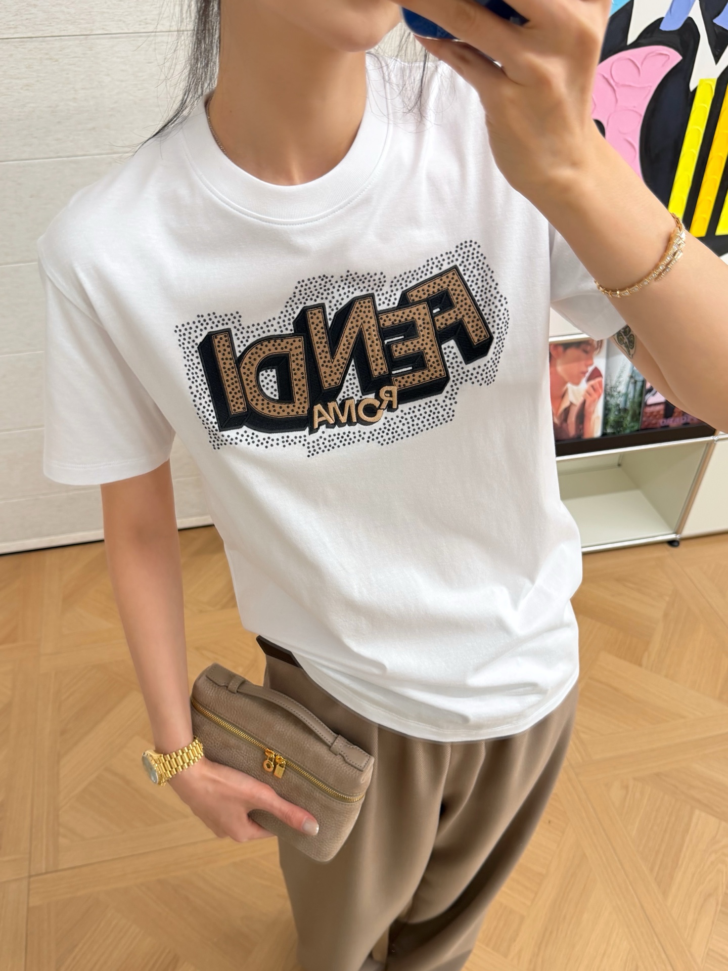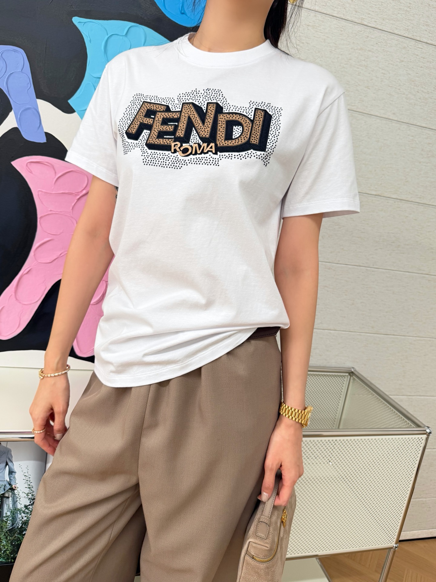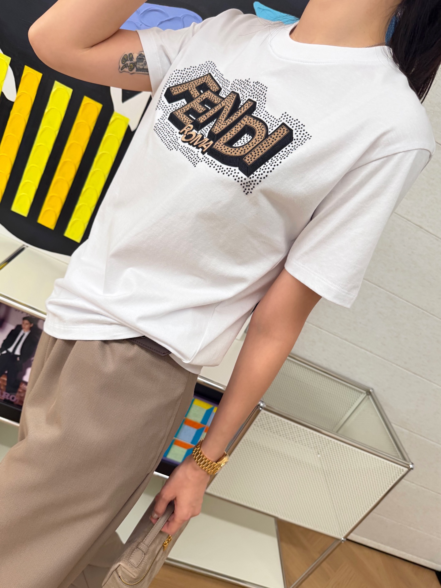 這種烫鑽 T 恤真的很少會出錯,不論是出門買咖啡、跟朋友聚會,或是日常上班,都能自然地呈現你的時髦品味。