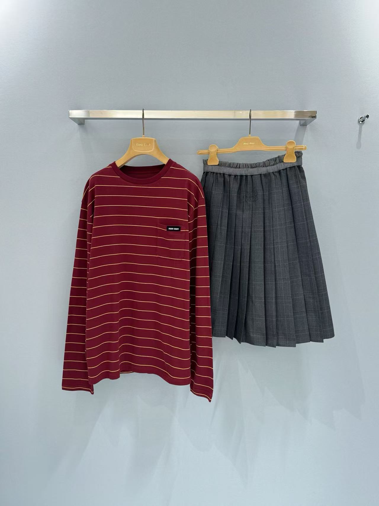 2025春夏 MIU家 紅條紋圓領寬鬆長袖