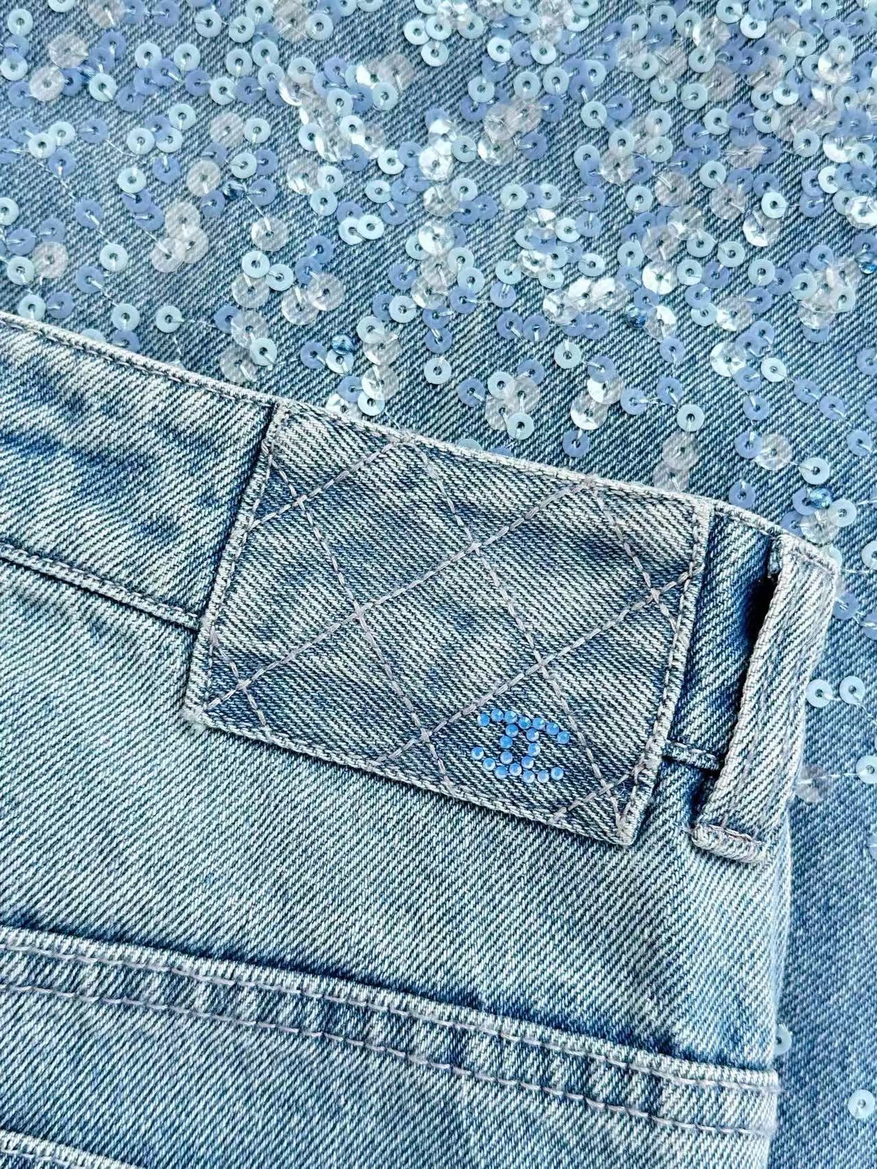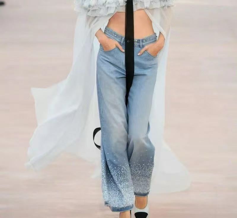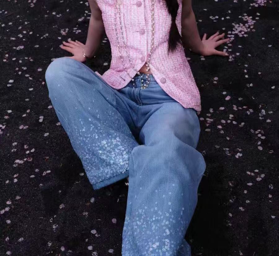 2025夏季新品 C家 重工亮片刺繡高腰牛仔褲