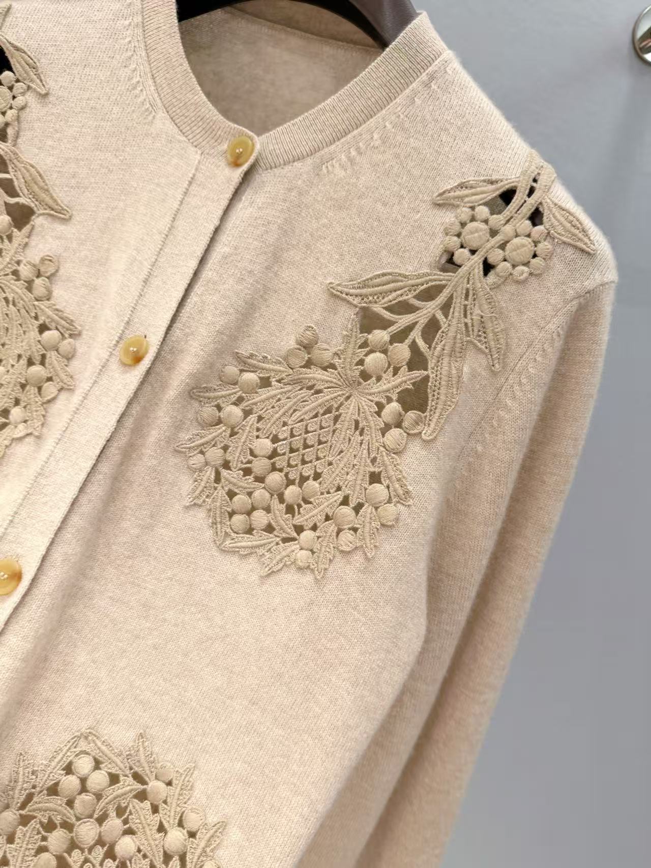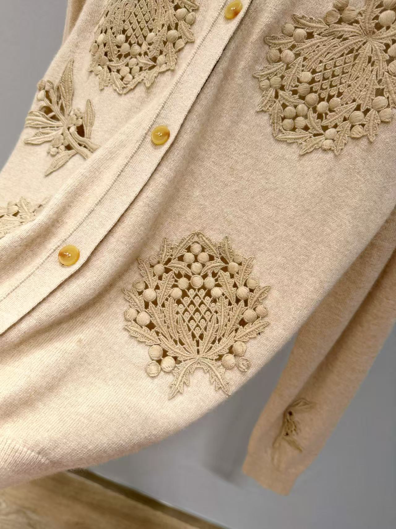 2025早秋 LP家 薊花刺繡羊絨開衫