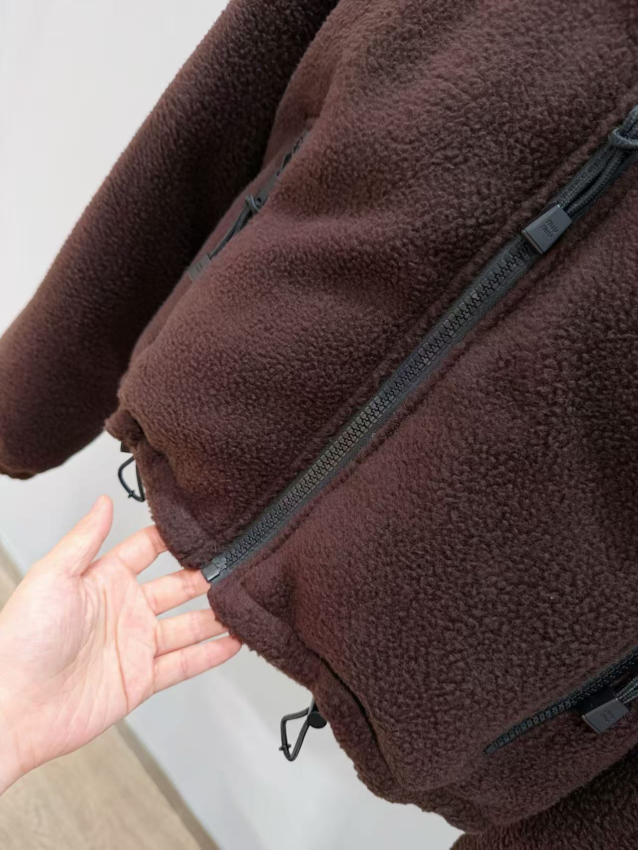 Miu家 羊羔毛領顆粒絨羽絨外套