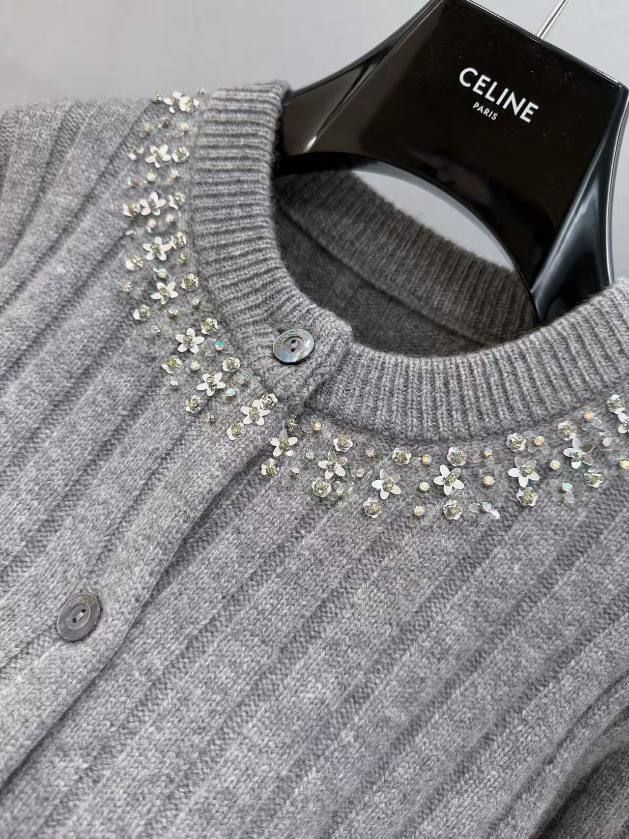 前襟珍珠鈕扣串聯優雅細節,灰色調溫柔百搭,不挑膚色、不挑場合。內搭襯衫通勤幹練,配牛仔褲甜酷即成,疊穿高領或單穿皆出彩,秋冬衣櫥的萬能神器,輕鬆駕馭多變風格。