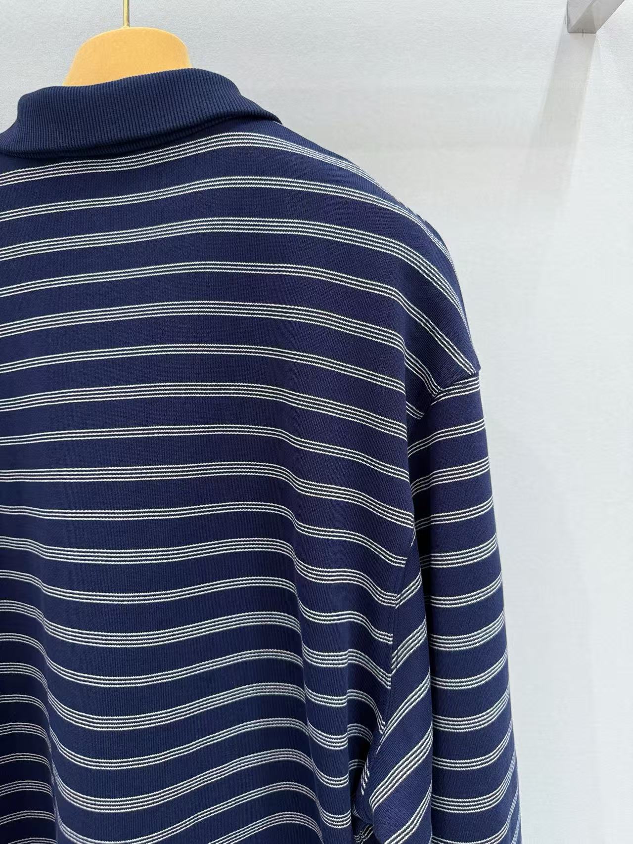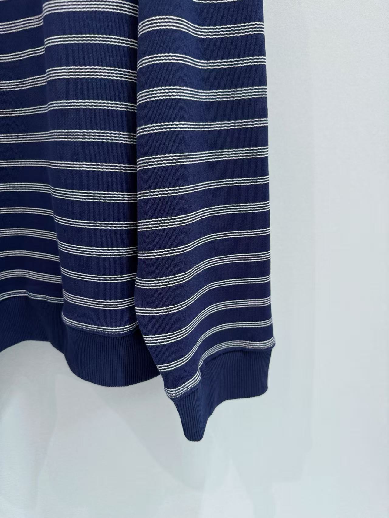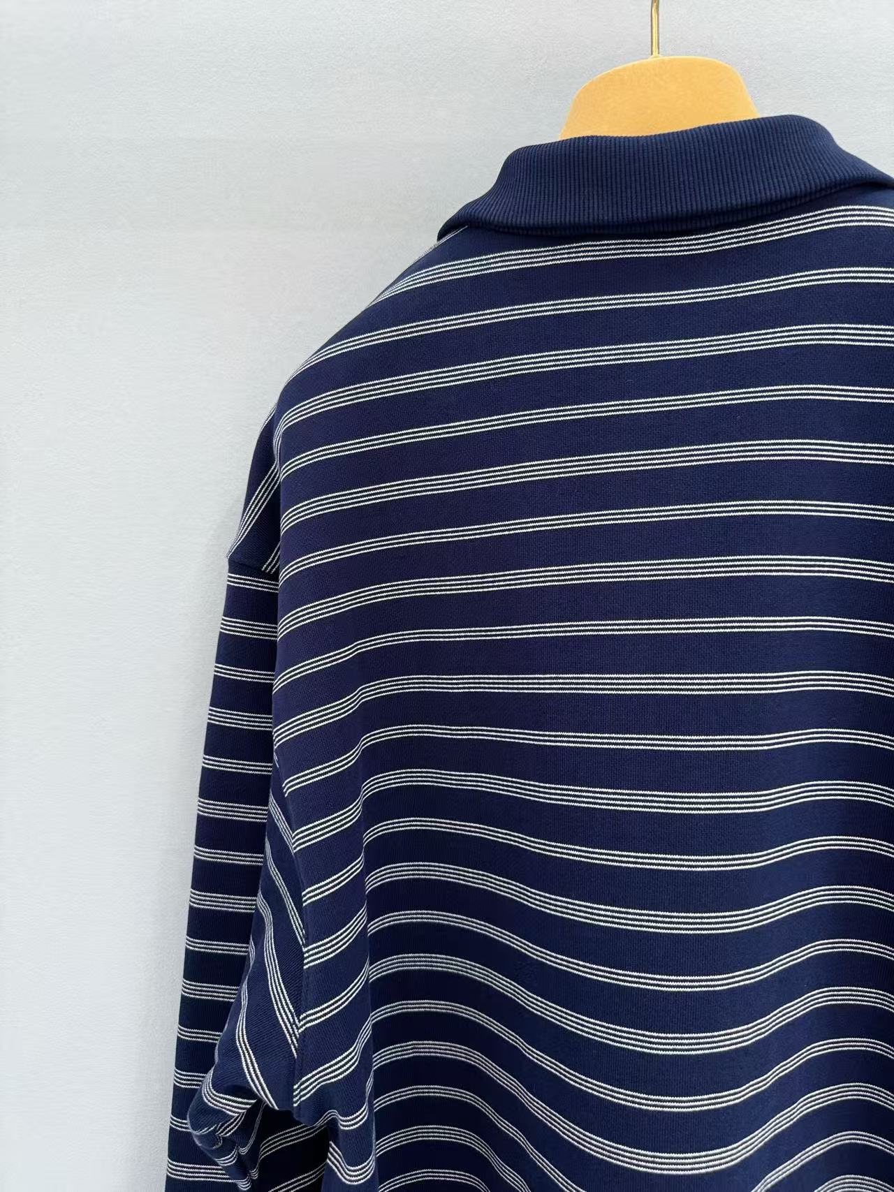以定制高克重材質打造,融合經典條紋與拉鍊半開襟設計,輕鬆展現休閒與高級感的完美平衡。