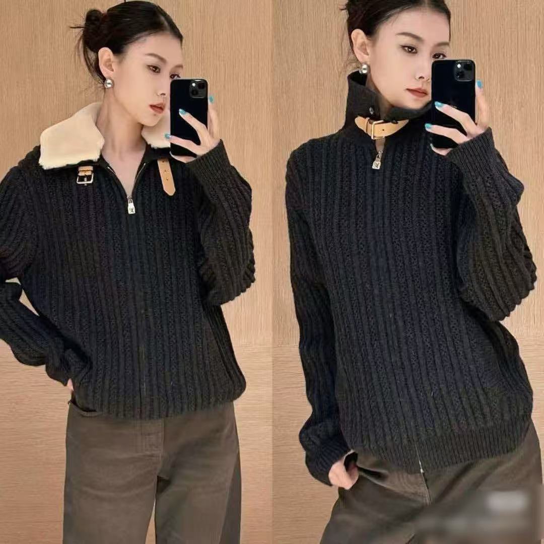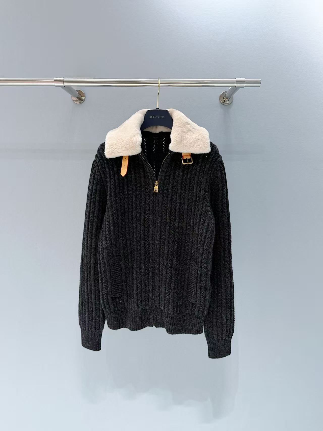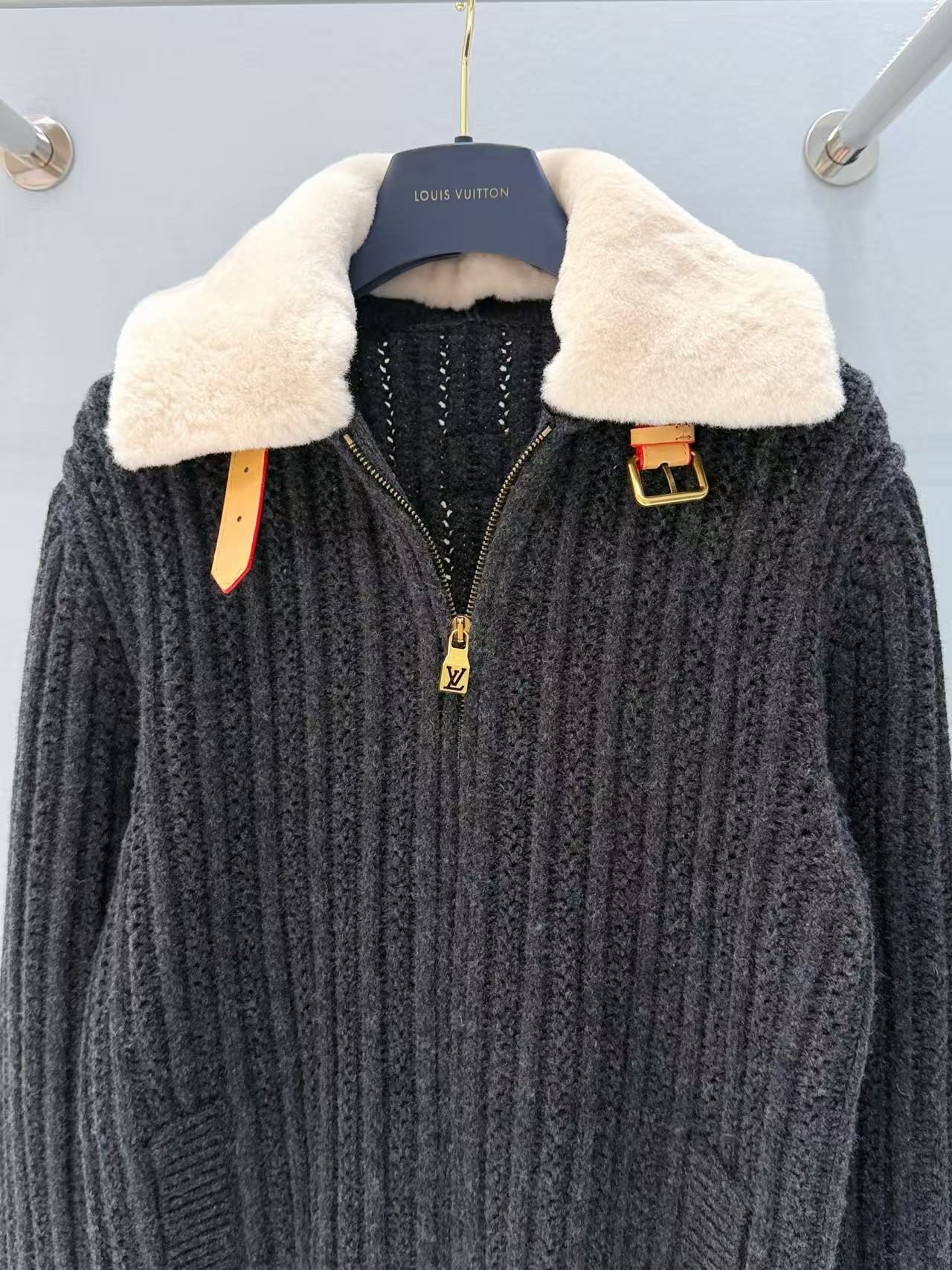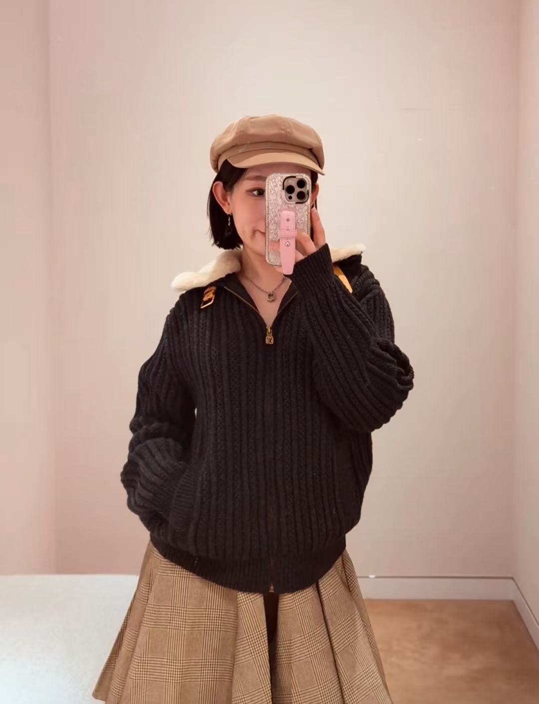 2025秋冬 L家 粗針織皮草毛領毛衣