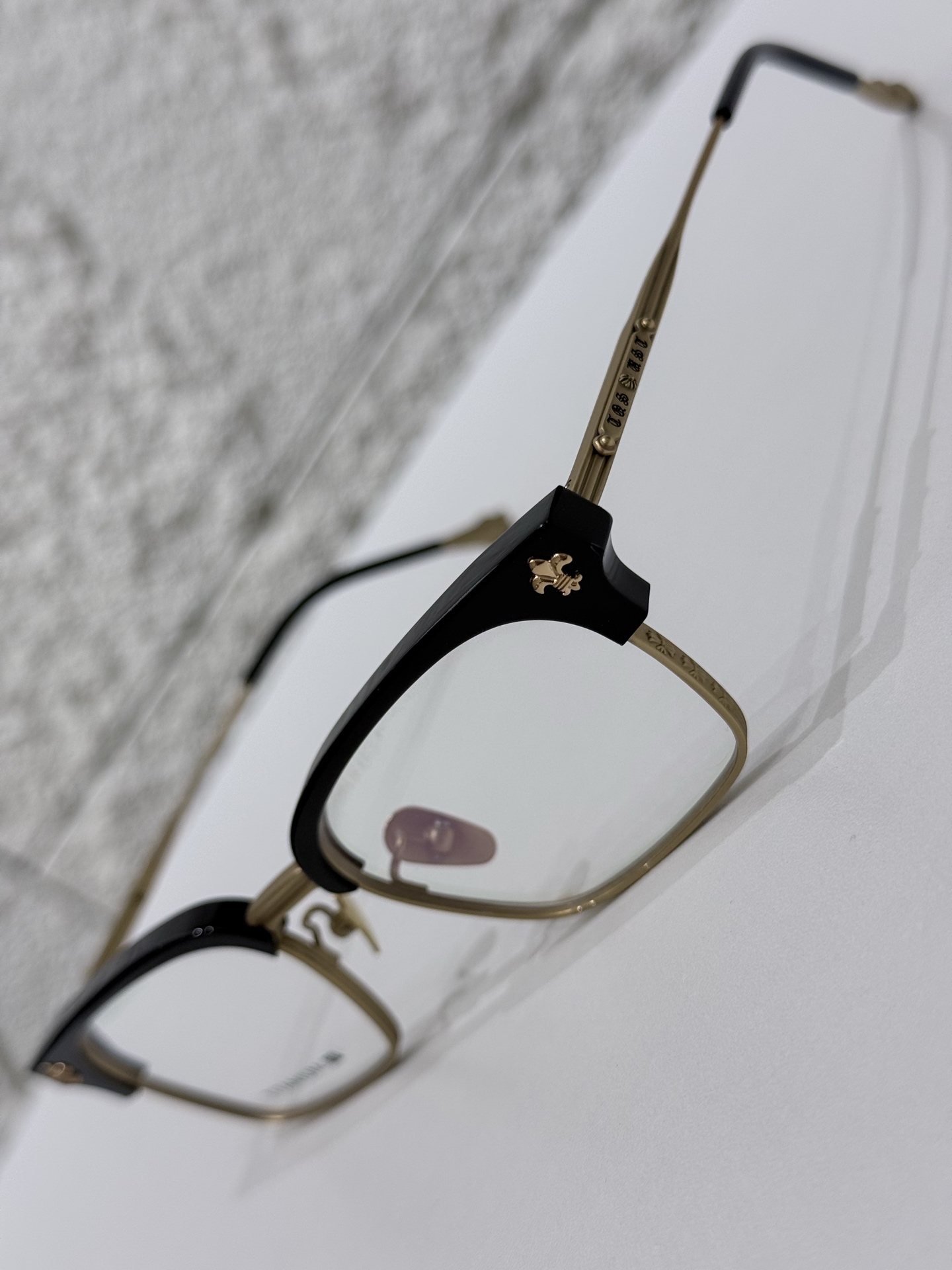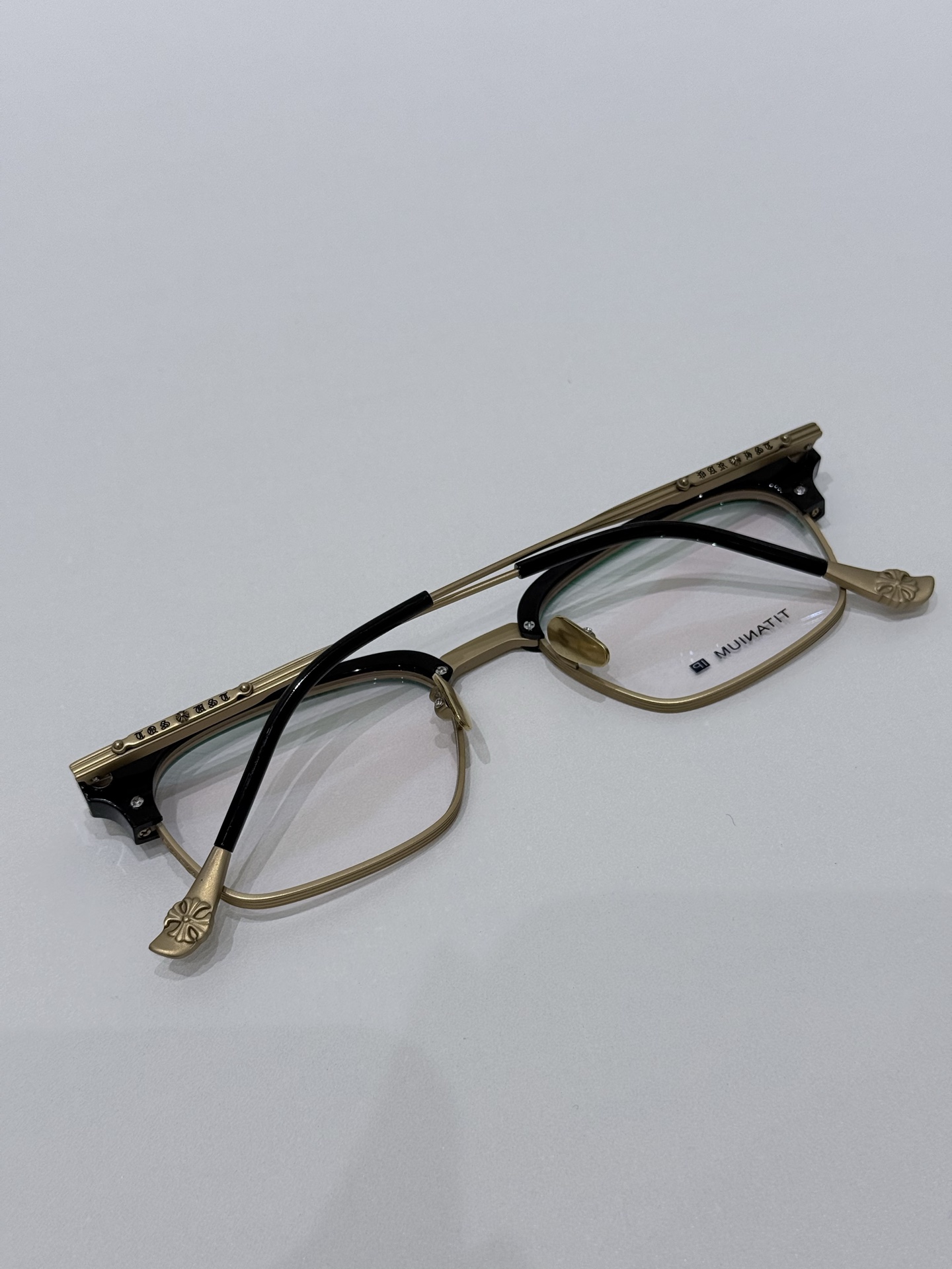 鏡腿融入標誌性的十字雕花元素,細節控一定會愛。尾端配重設計達到前後 50:50 平衡比例,有效降低滑動問題,長時間配戴依然舒適穩定。