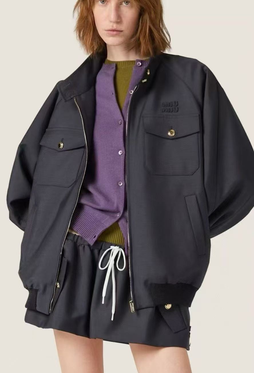 2025早秋 Miu家 貼布繡字母徽標拉鍊外套
