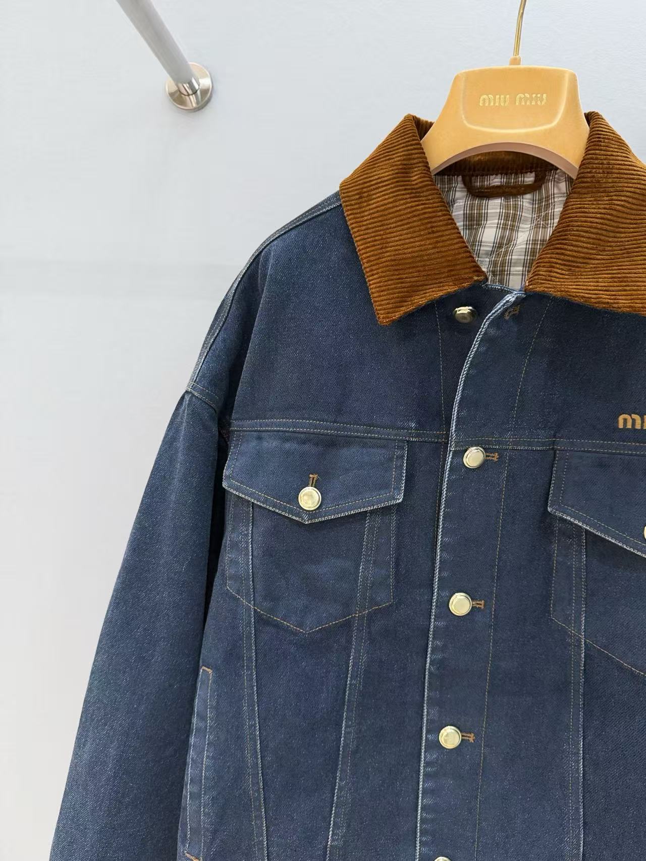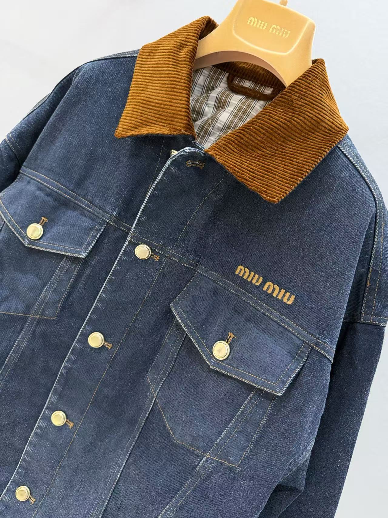 2025早秋 Miu家 復古拼領牛仔夾克外套