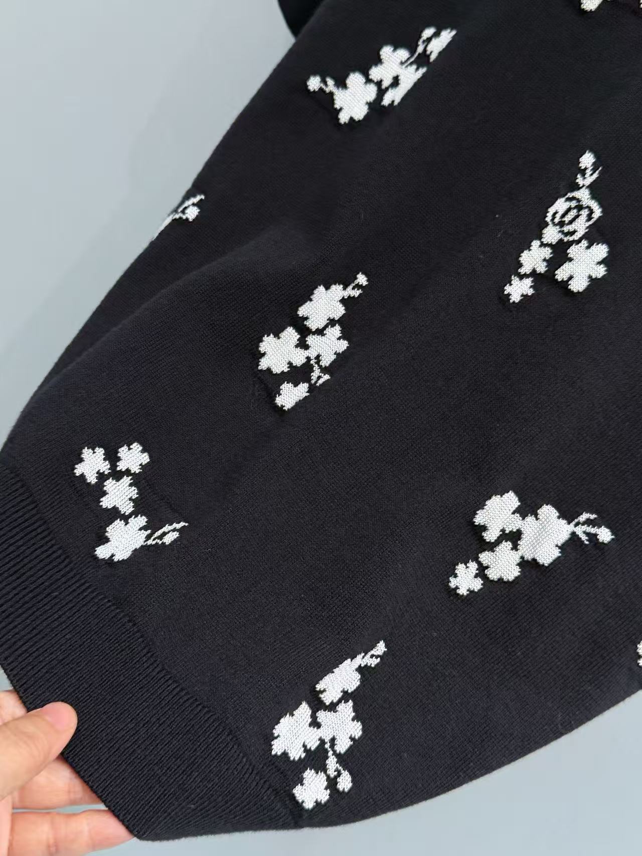 高規立體提花技術: 採用複雜的緹花織法,白色花卉圖案飽滿立體,與黑色底層形成明顯的層次感。這種工藝比普通印花更耐洗、更不容易變形,質感維持度極高。