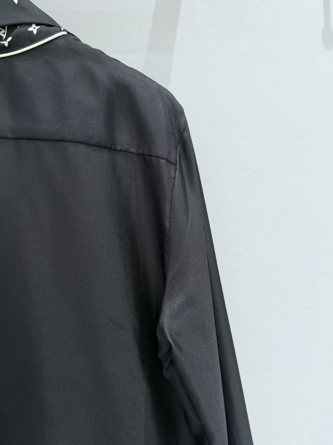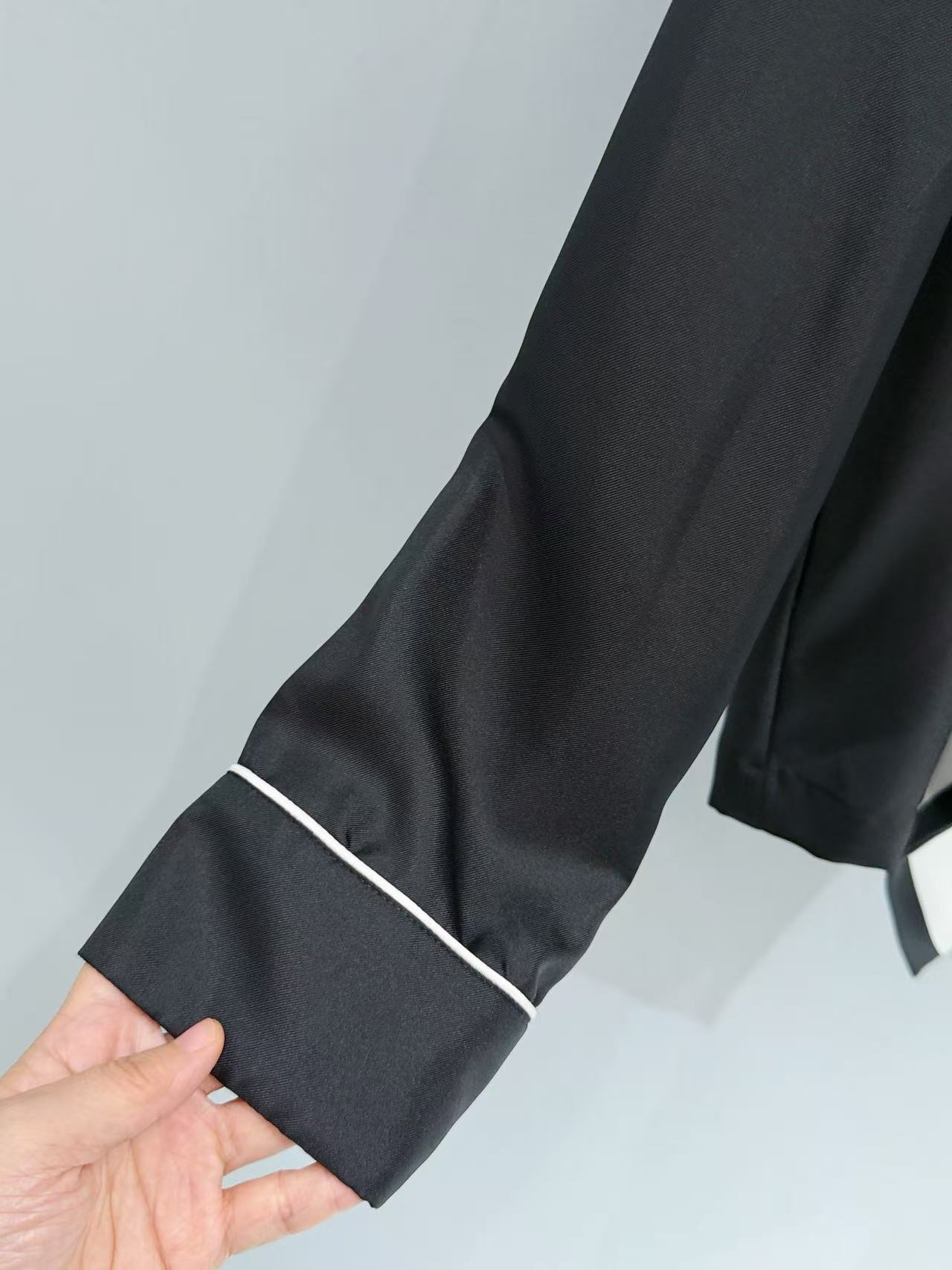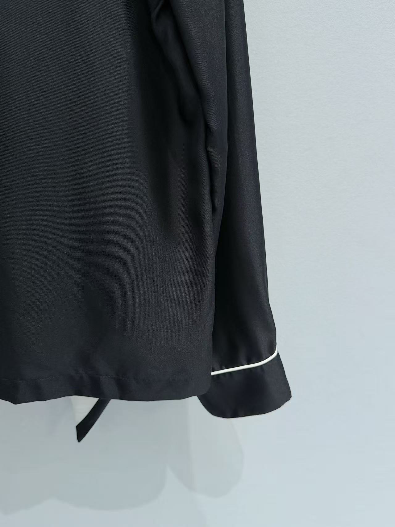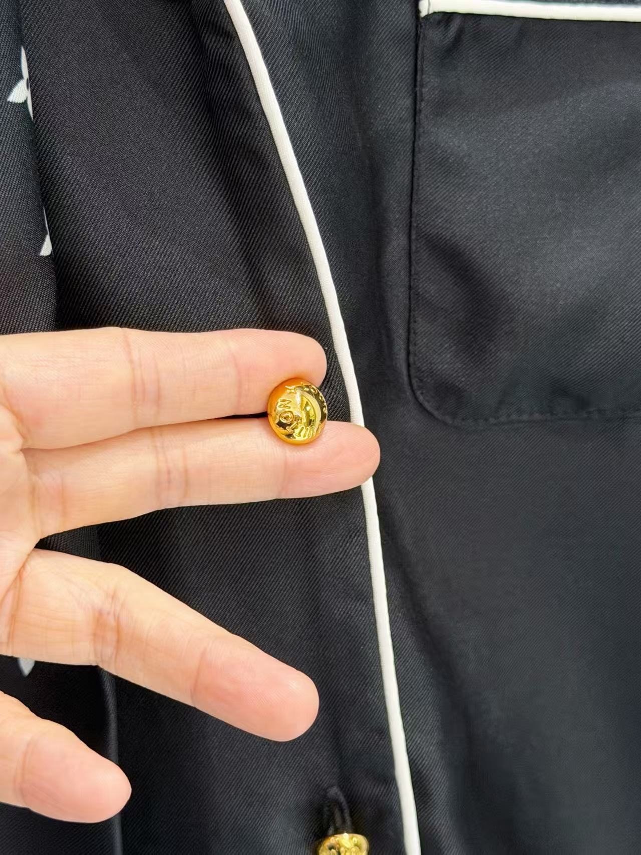 特別選用的金屬鈕扣,在黑色真絲的襯托下閃爍著微光,這種細微處的質感才是真精品的體現。