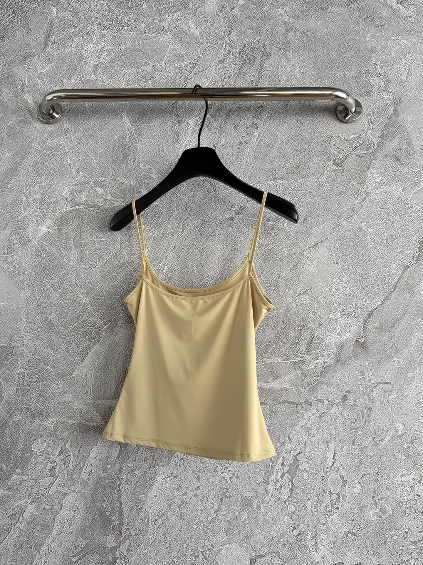 這款裸色細肩帶上衣,看似低調,卻在穿上那一刻讓人驚艷。親膚的裸色調與膚色自然融合,散發出一種「不費力的性感」氛圍,恰到好處地展現女性的柔美與知性。雖然不是張揚的色系,卻擁有讓人難以忽視的高級感,越簡單越耐看。