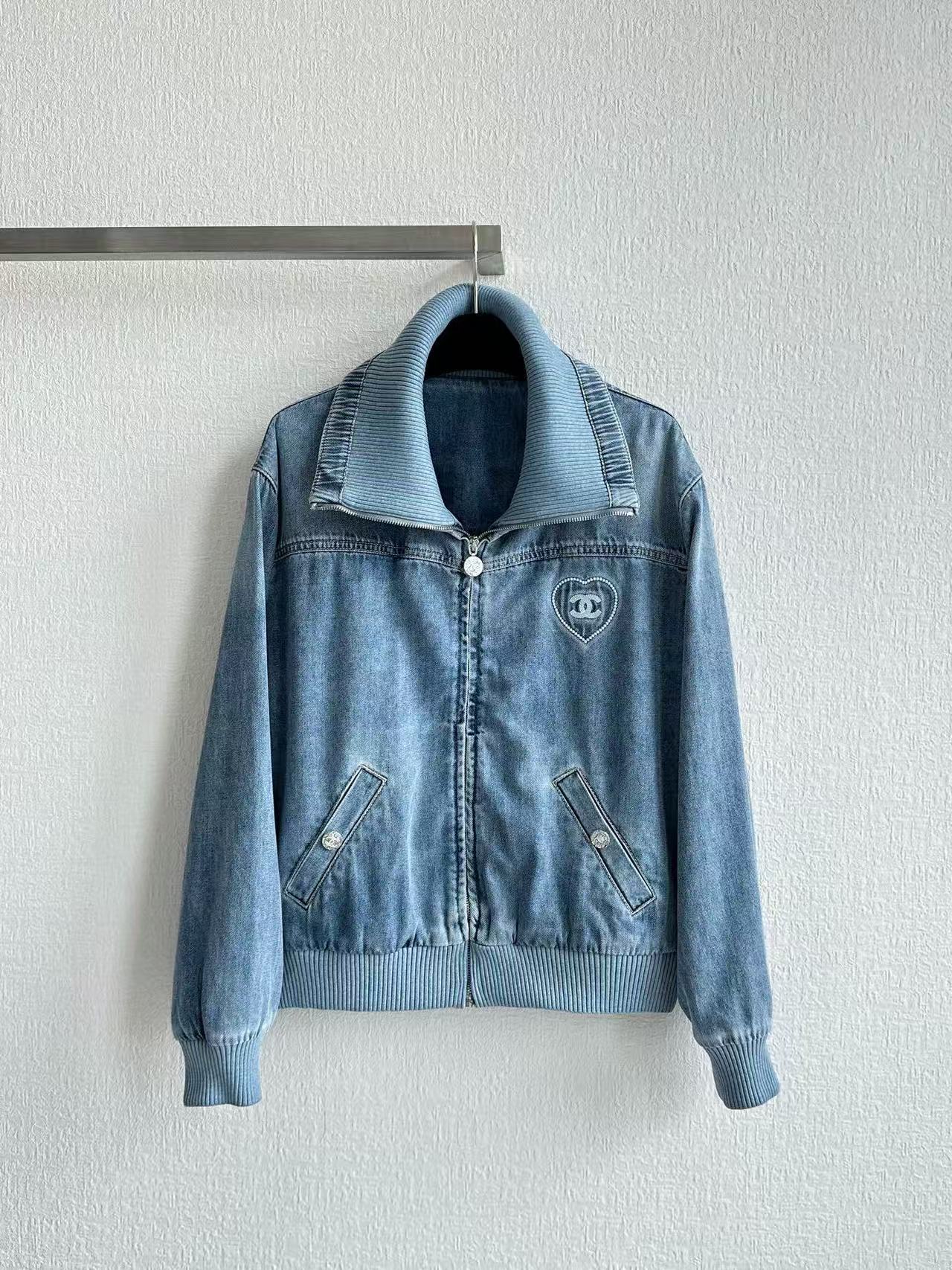 2025夏季新品 C家 雙C愛心刺繡牛仔外套