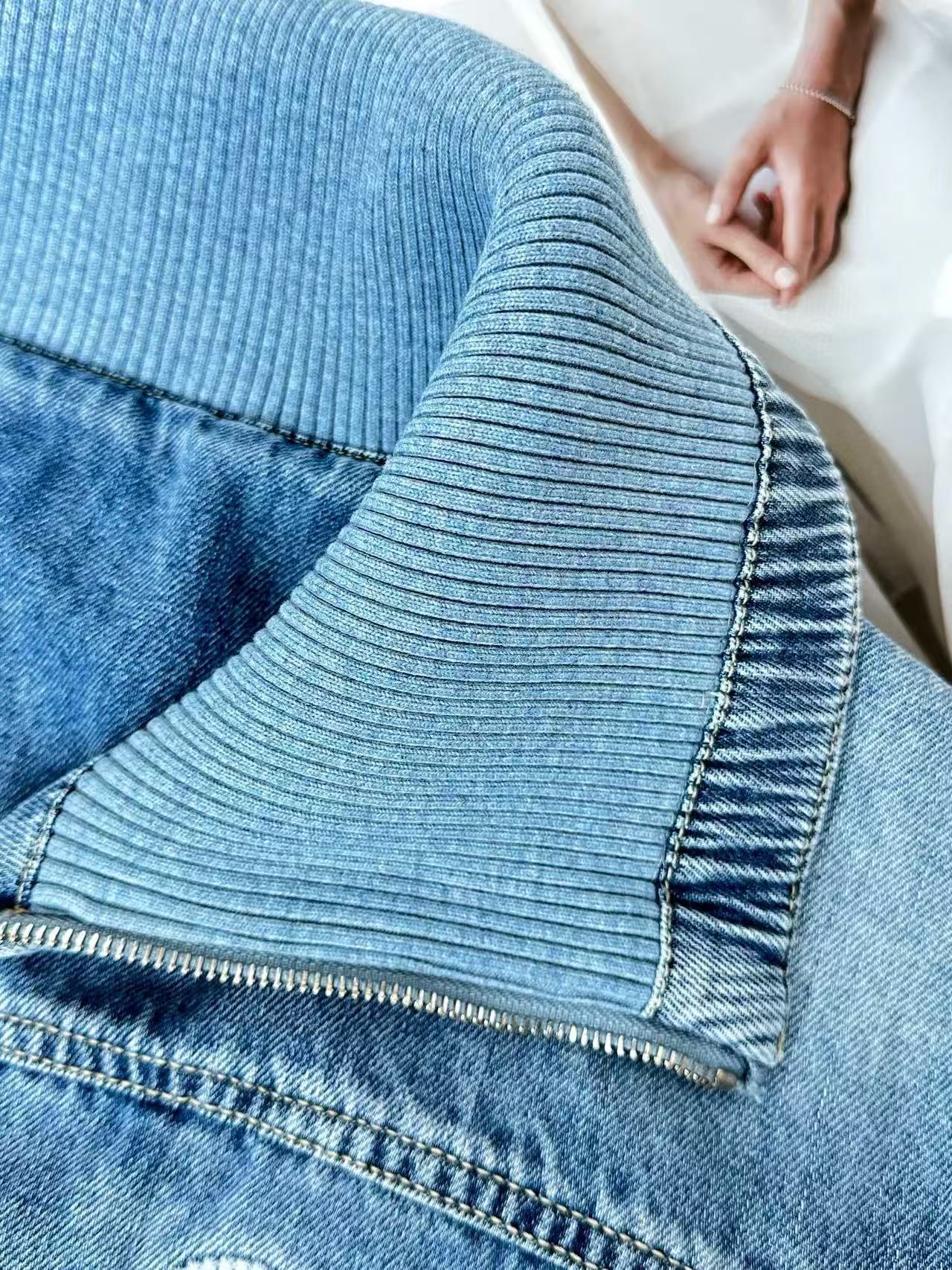 這件是牛仔外套界的甜酷擔當,既有可愛的點綴,也不失大氣俐落感。夏初早晚微涼、冷氣房或戶外活動,都能靠它撐場。搭配洋裝、短褲、長褲都超有感,一件就能撐起整個造型!