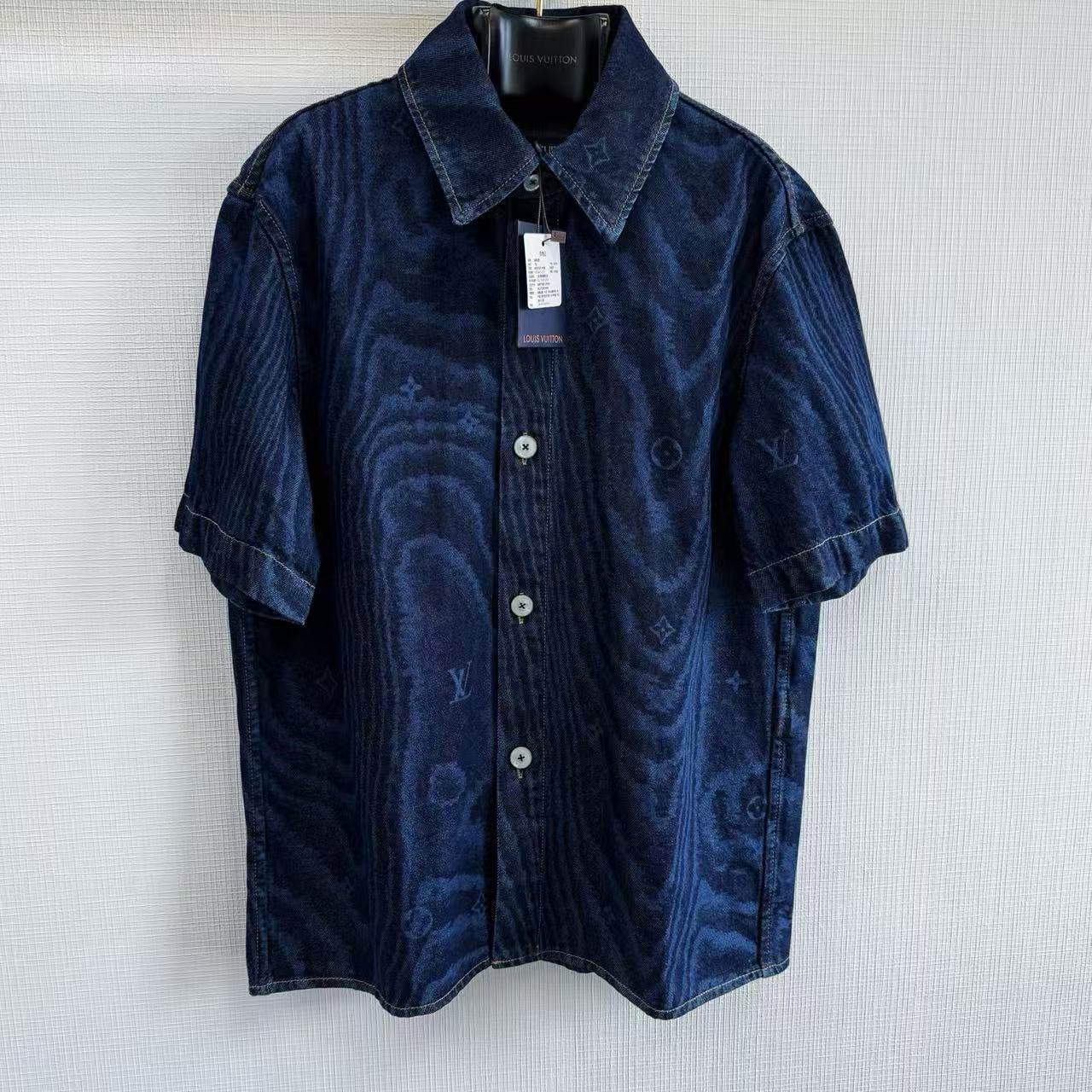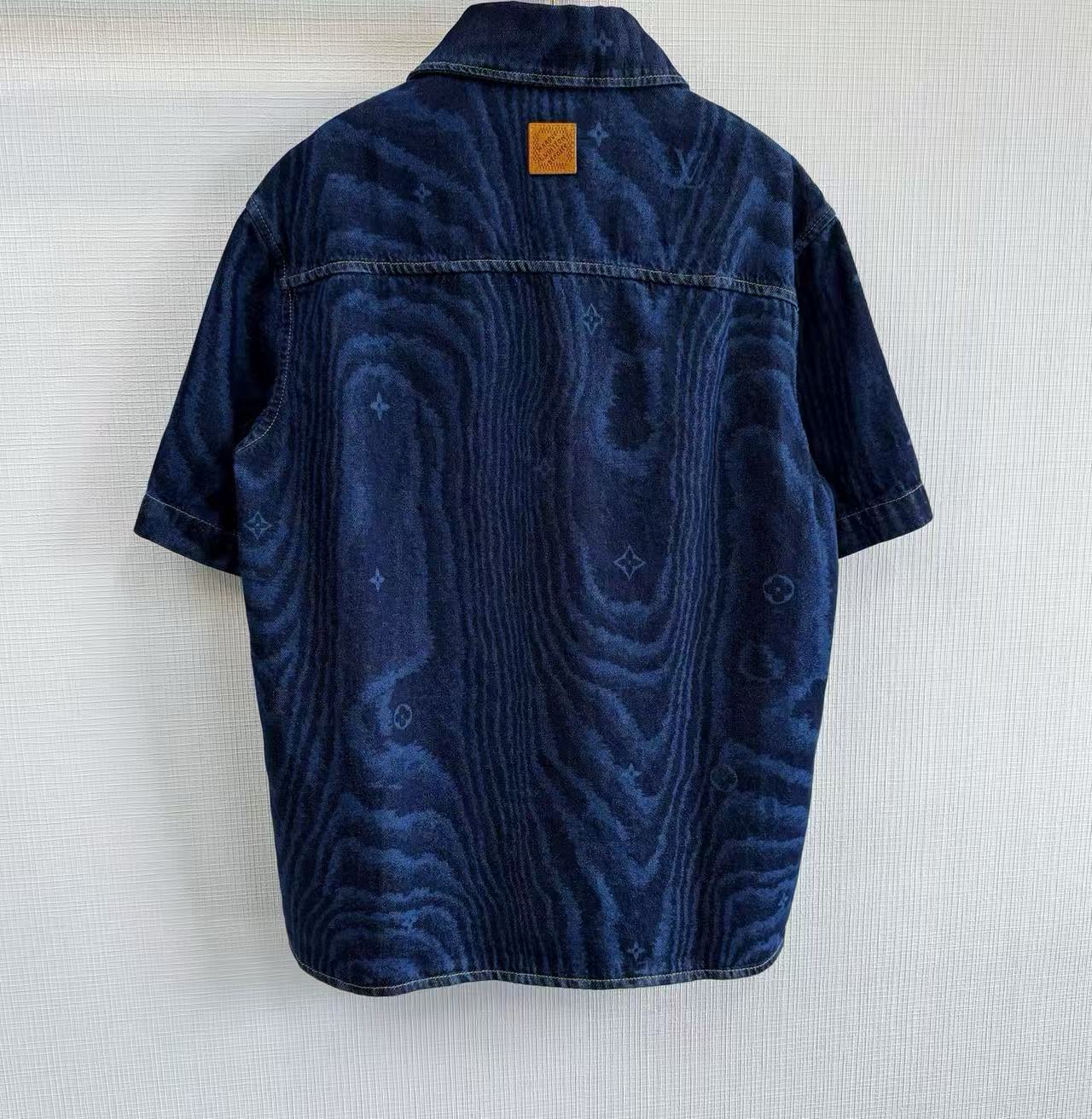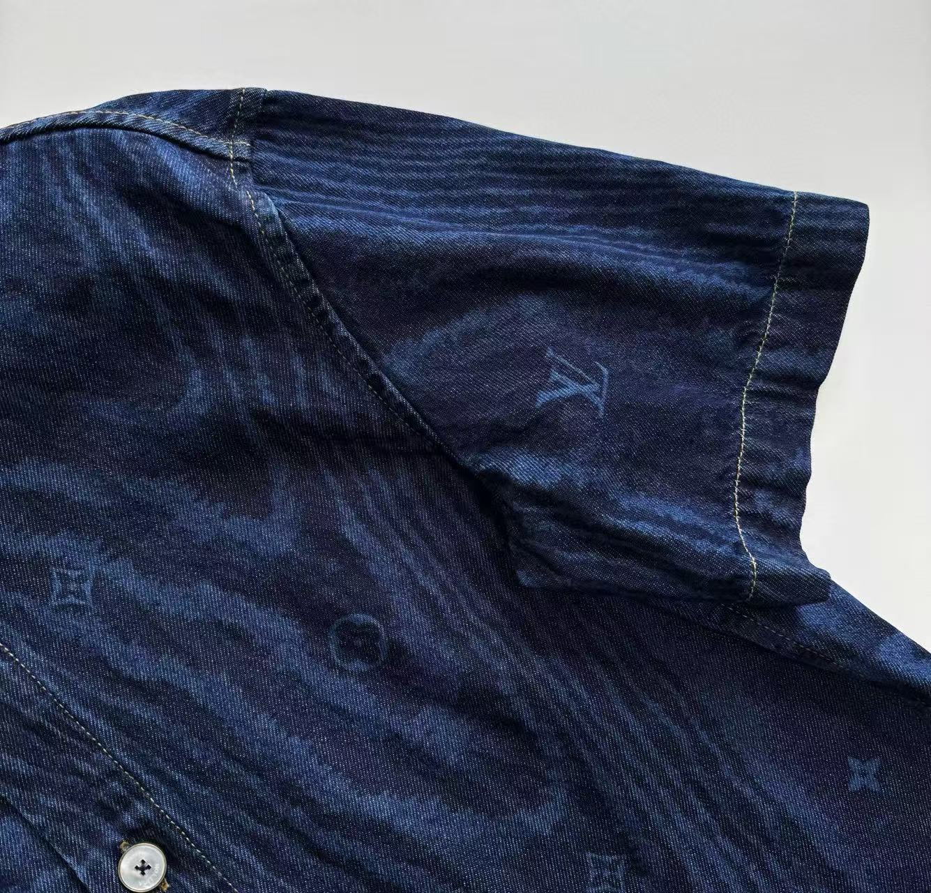2025夏季新品 L家 樹紋提花牛仔短袖襯衫
