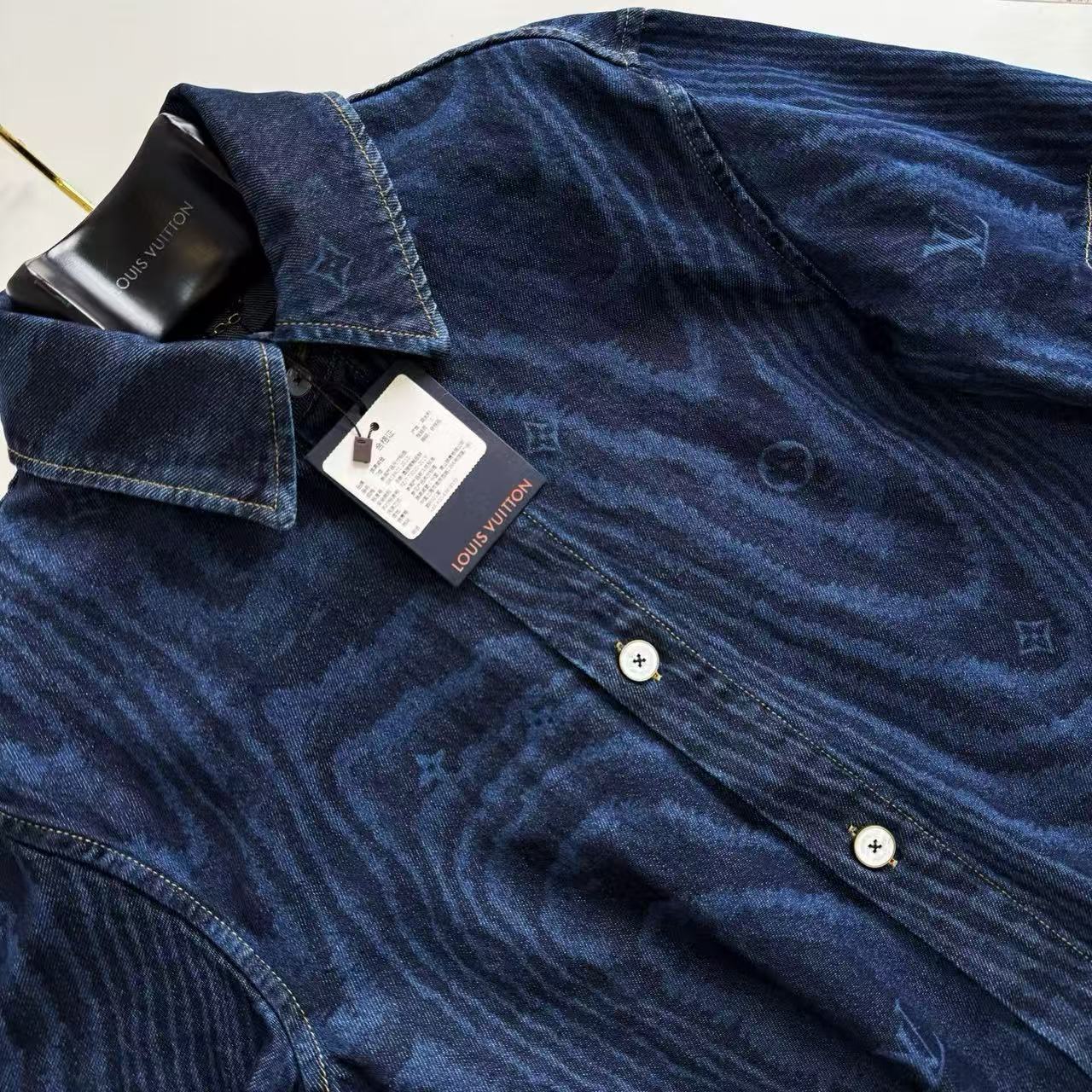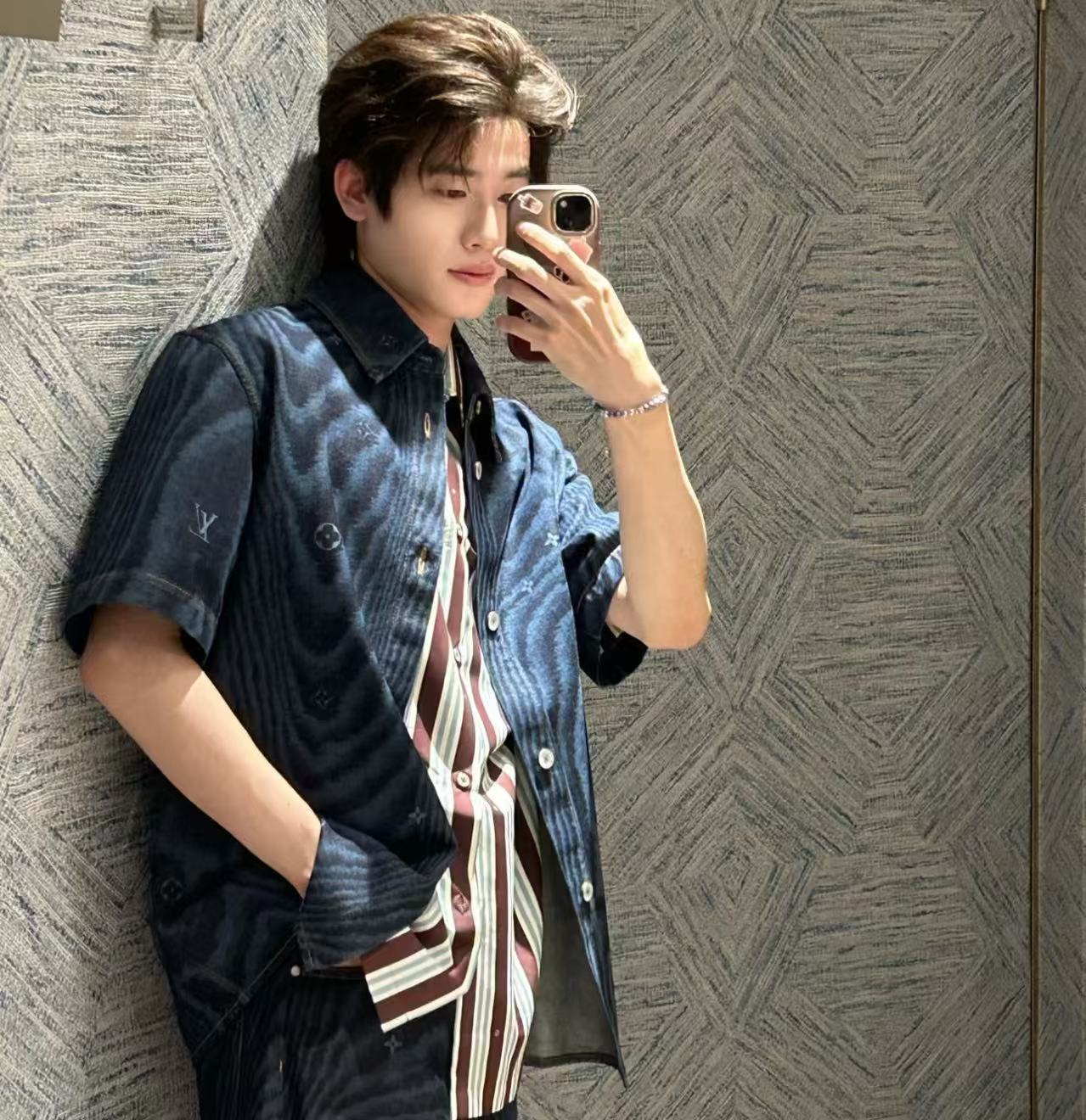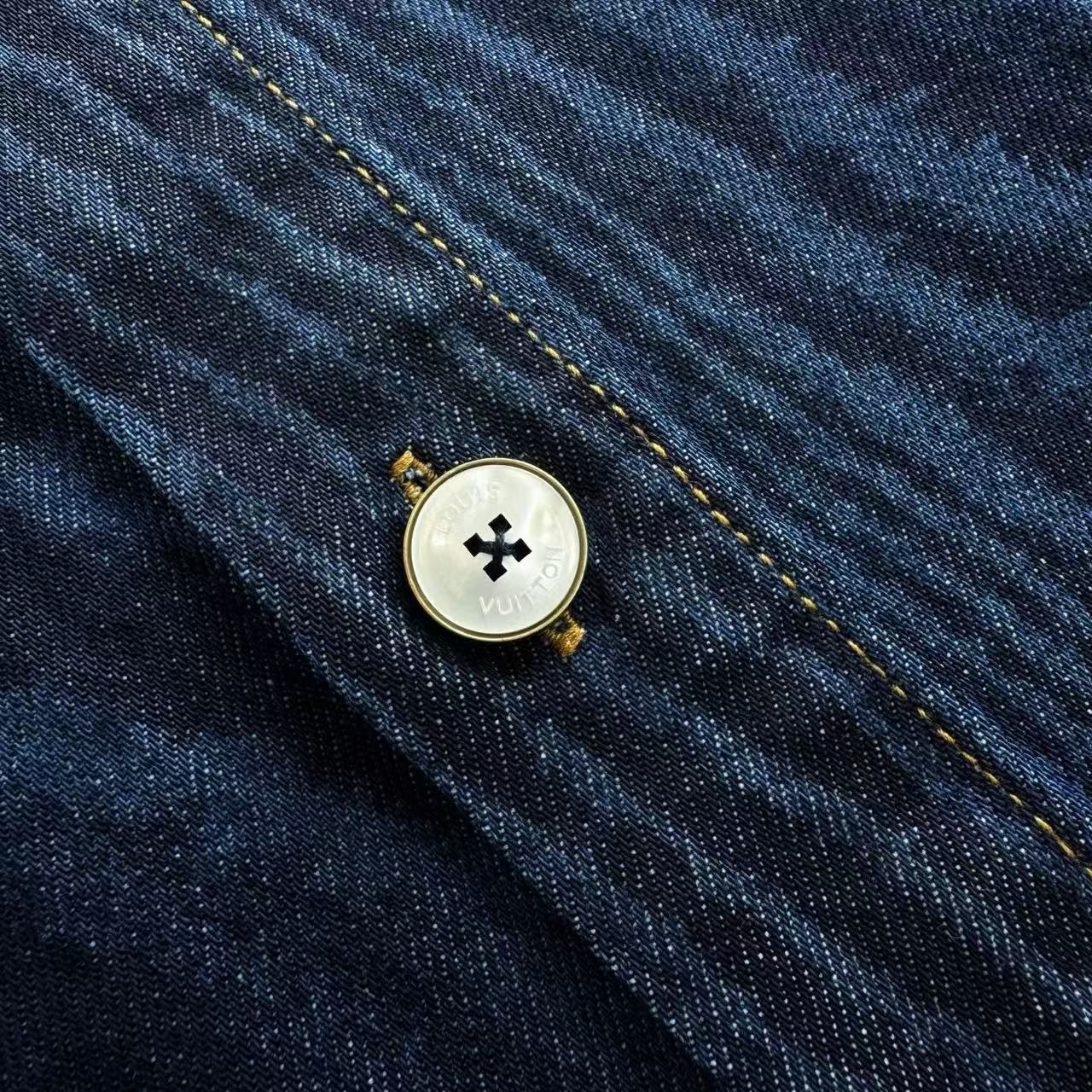 2025夏季新品 L家 樹紋提花牛仔短袖襯衫