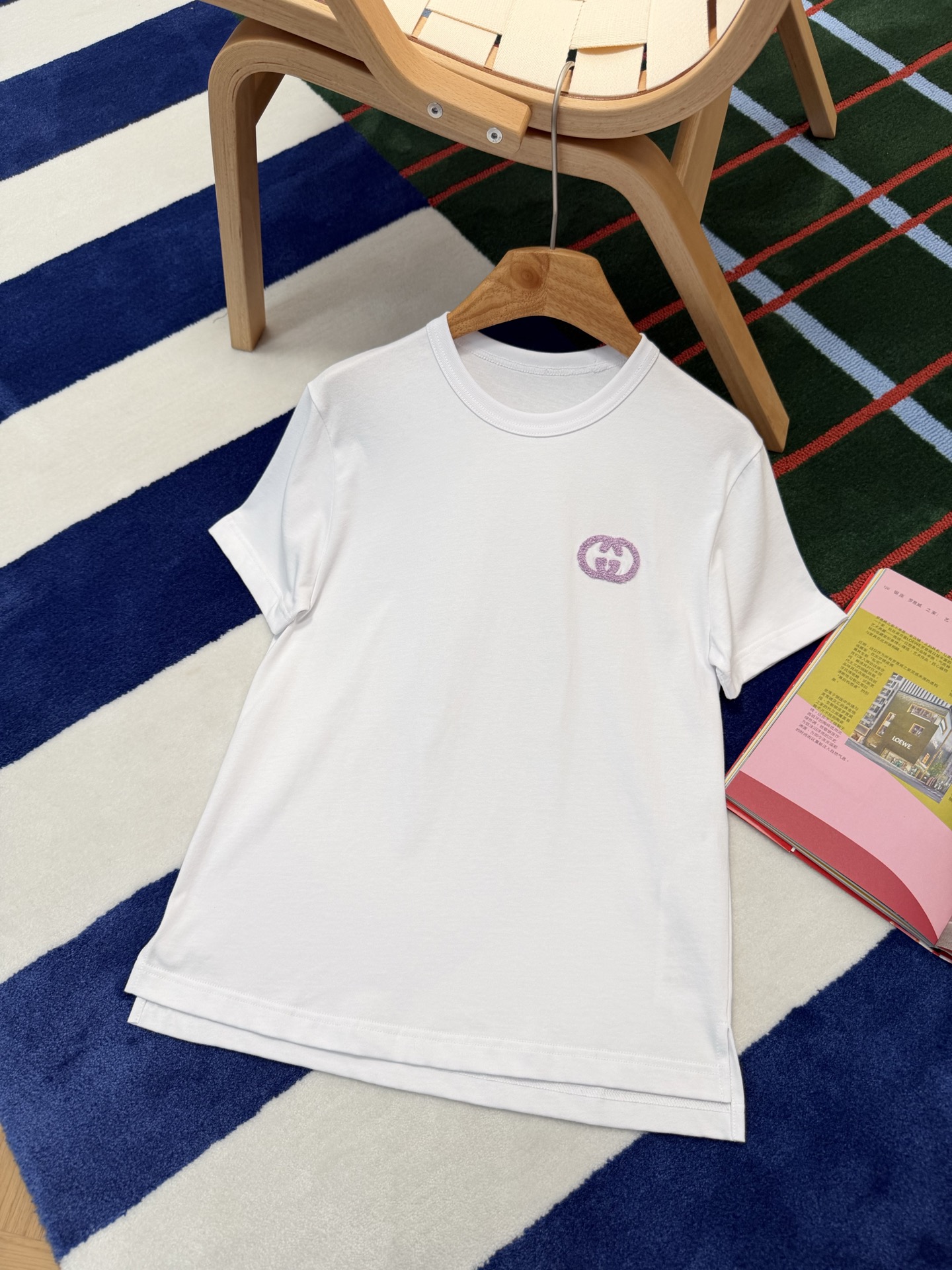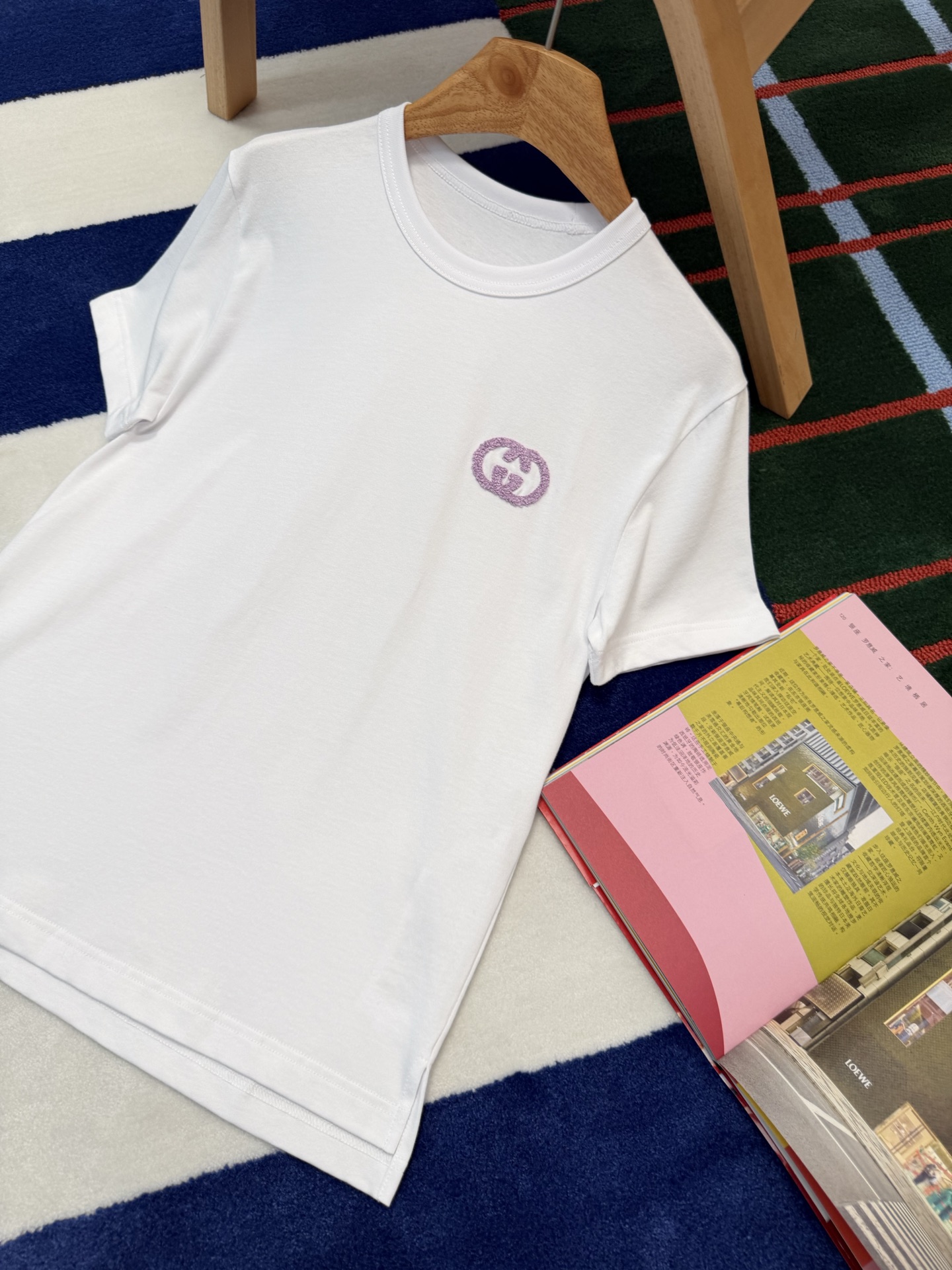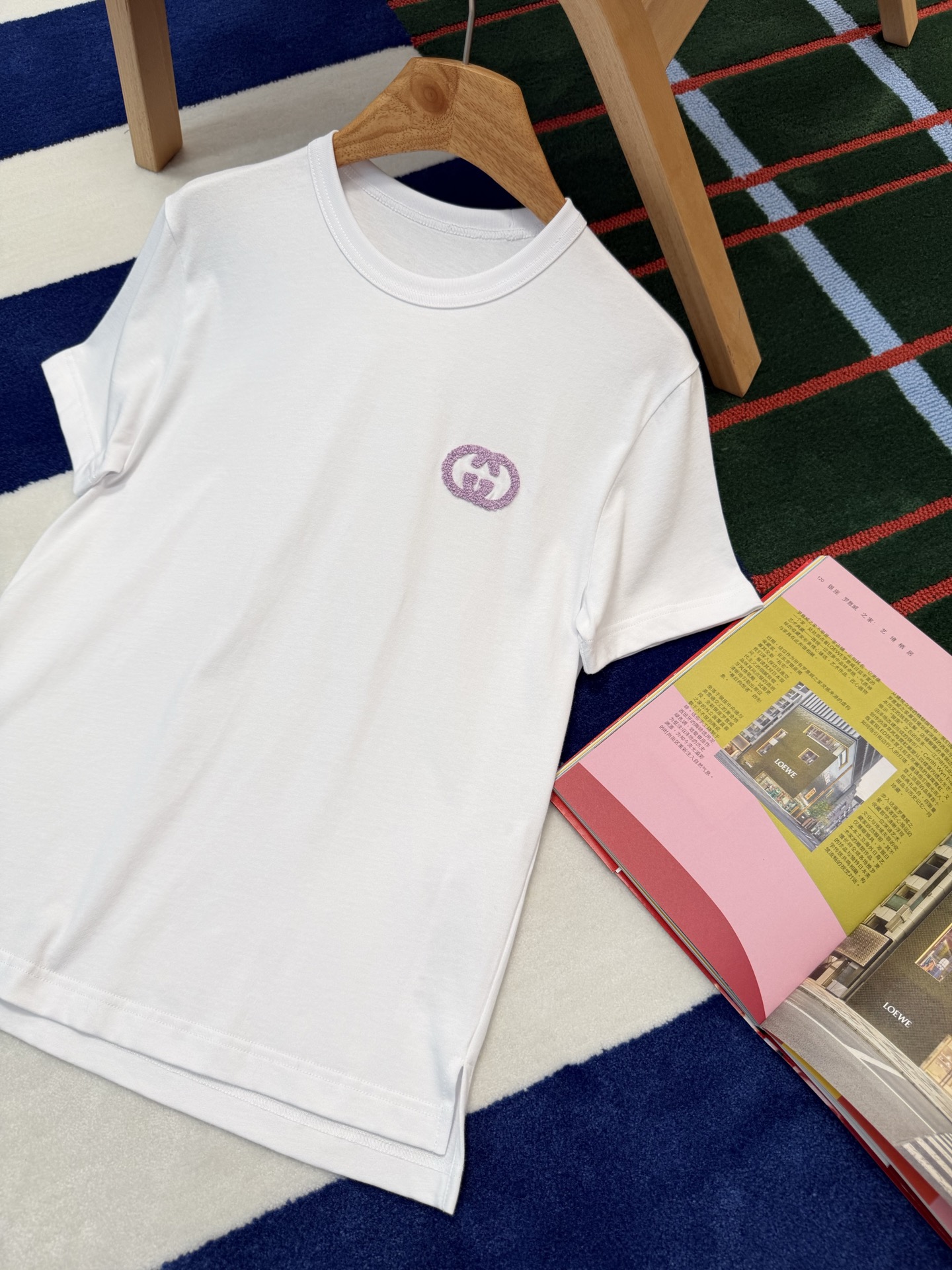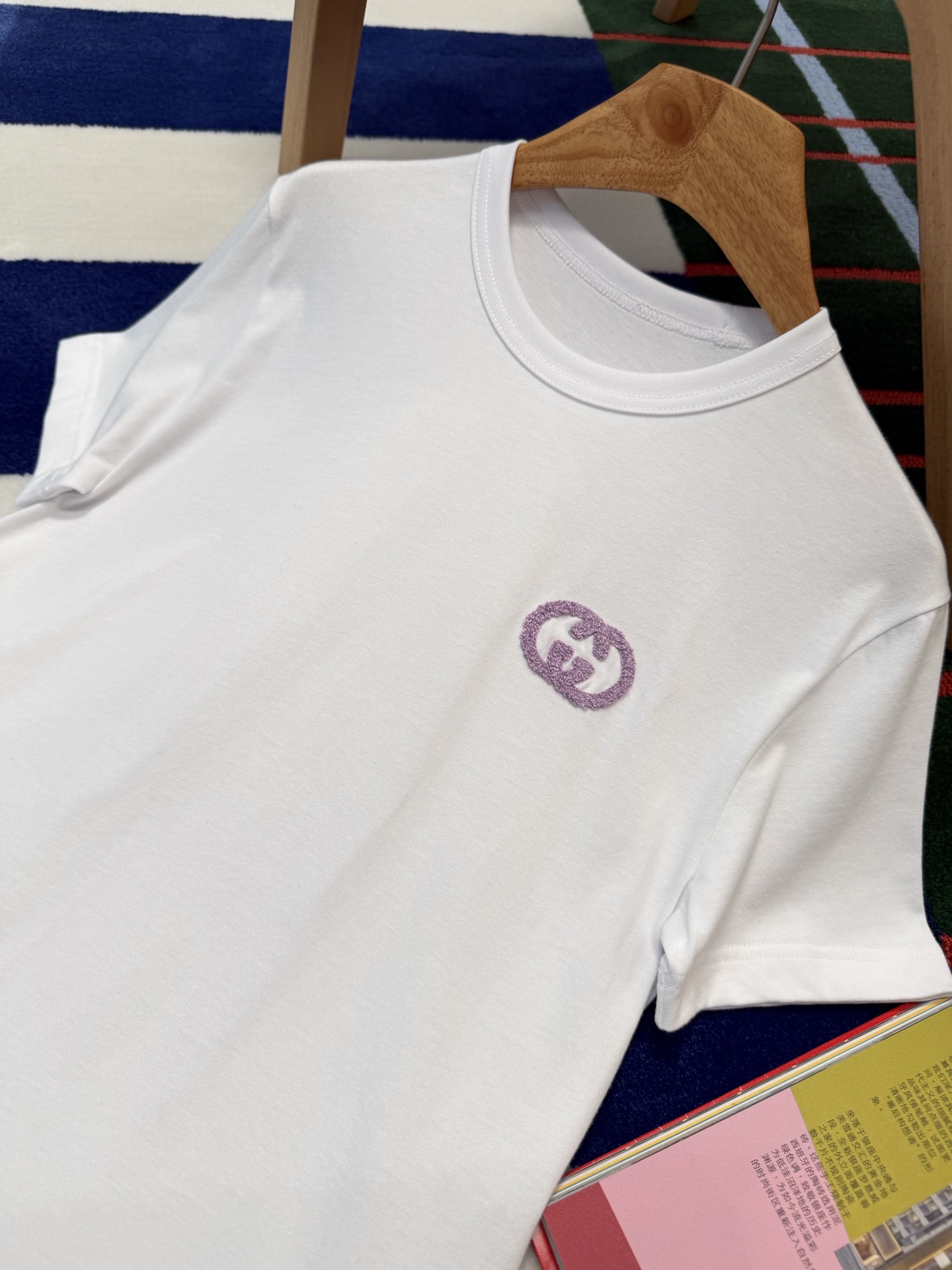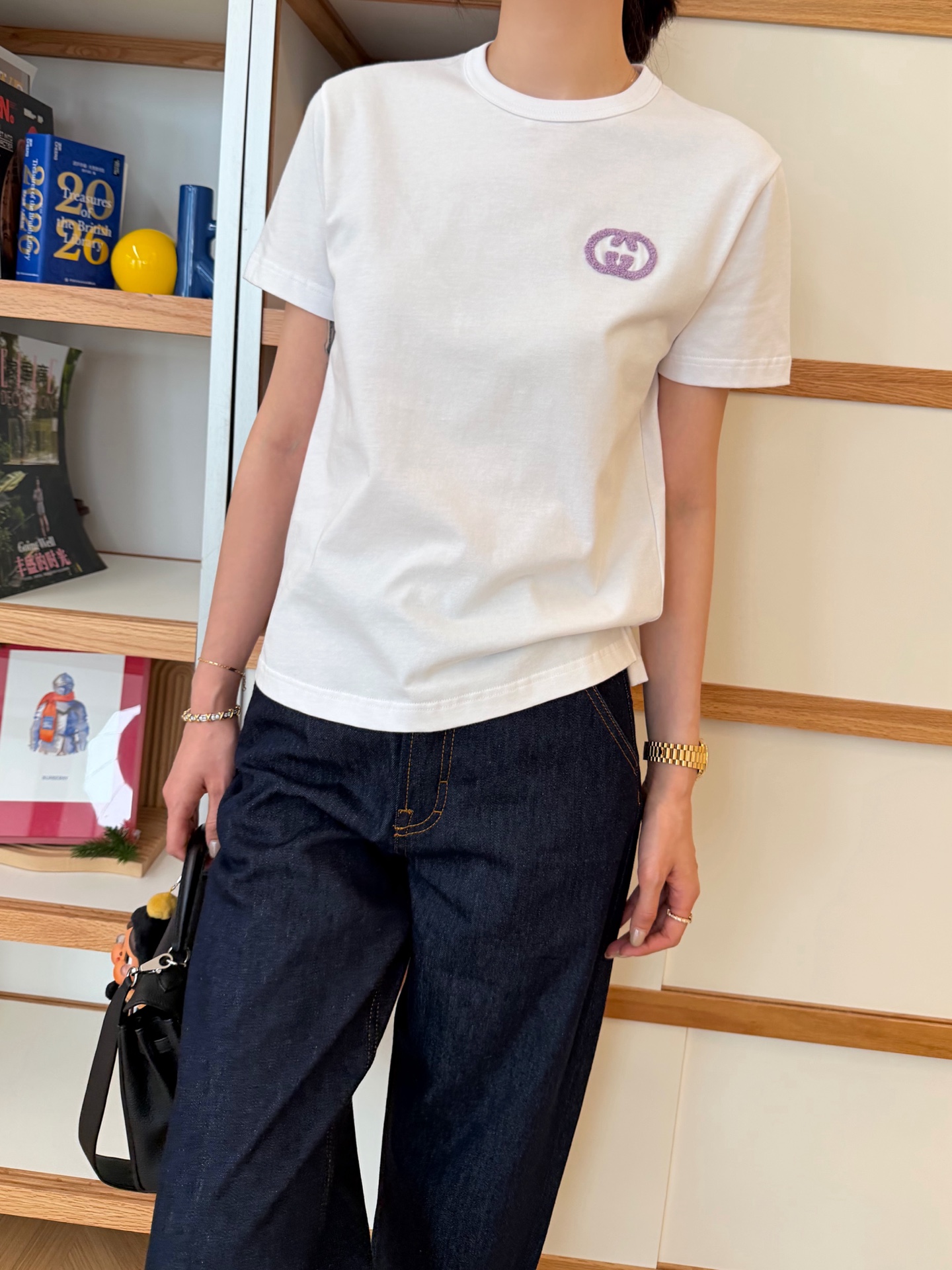 胸前的紫色雙G刺繡設計,是那種不張揚但很加分的細節,剛好拿捏在甜與酷之間。