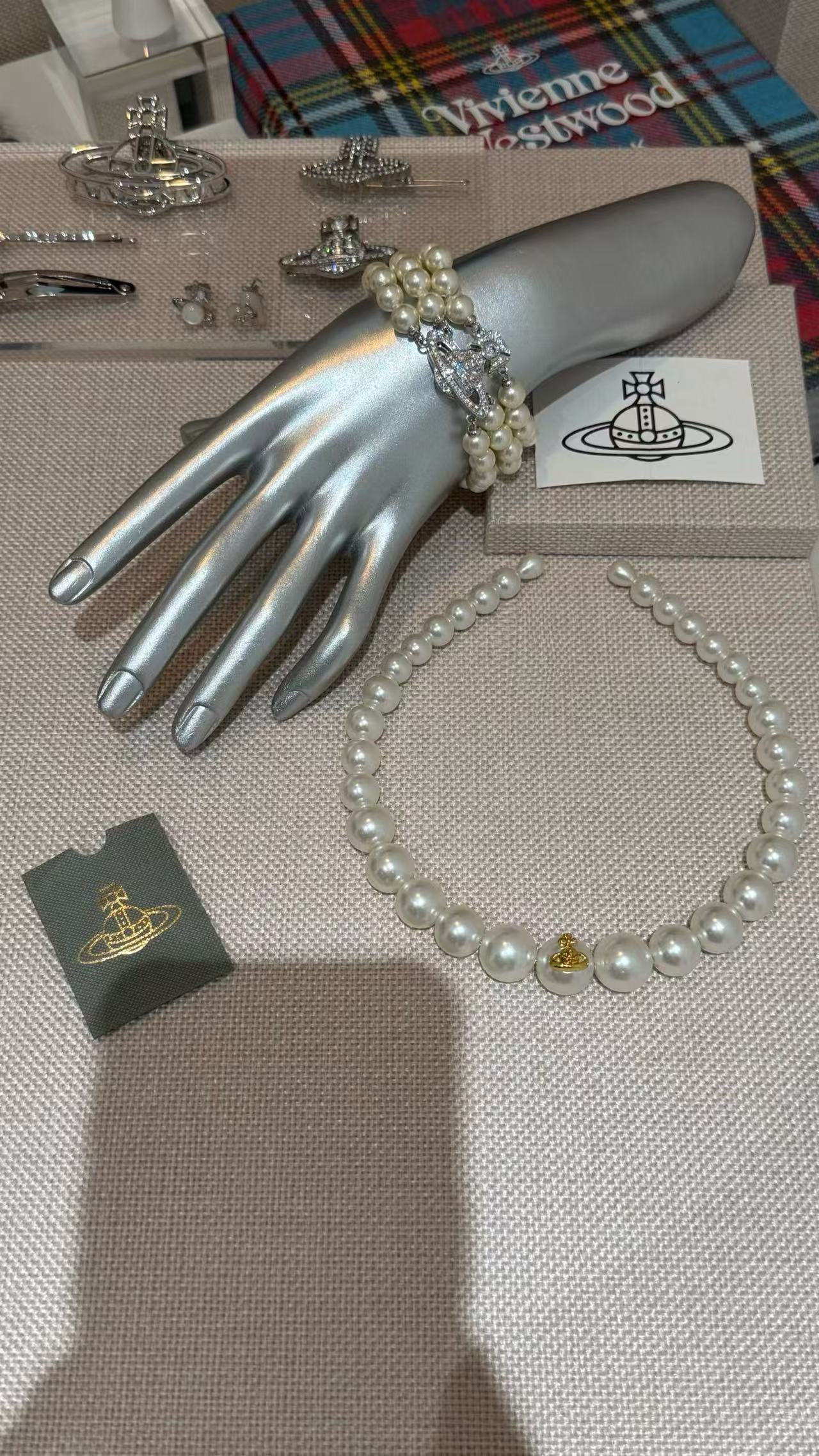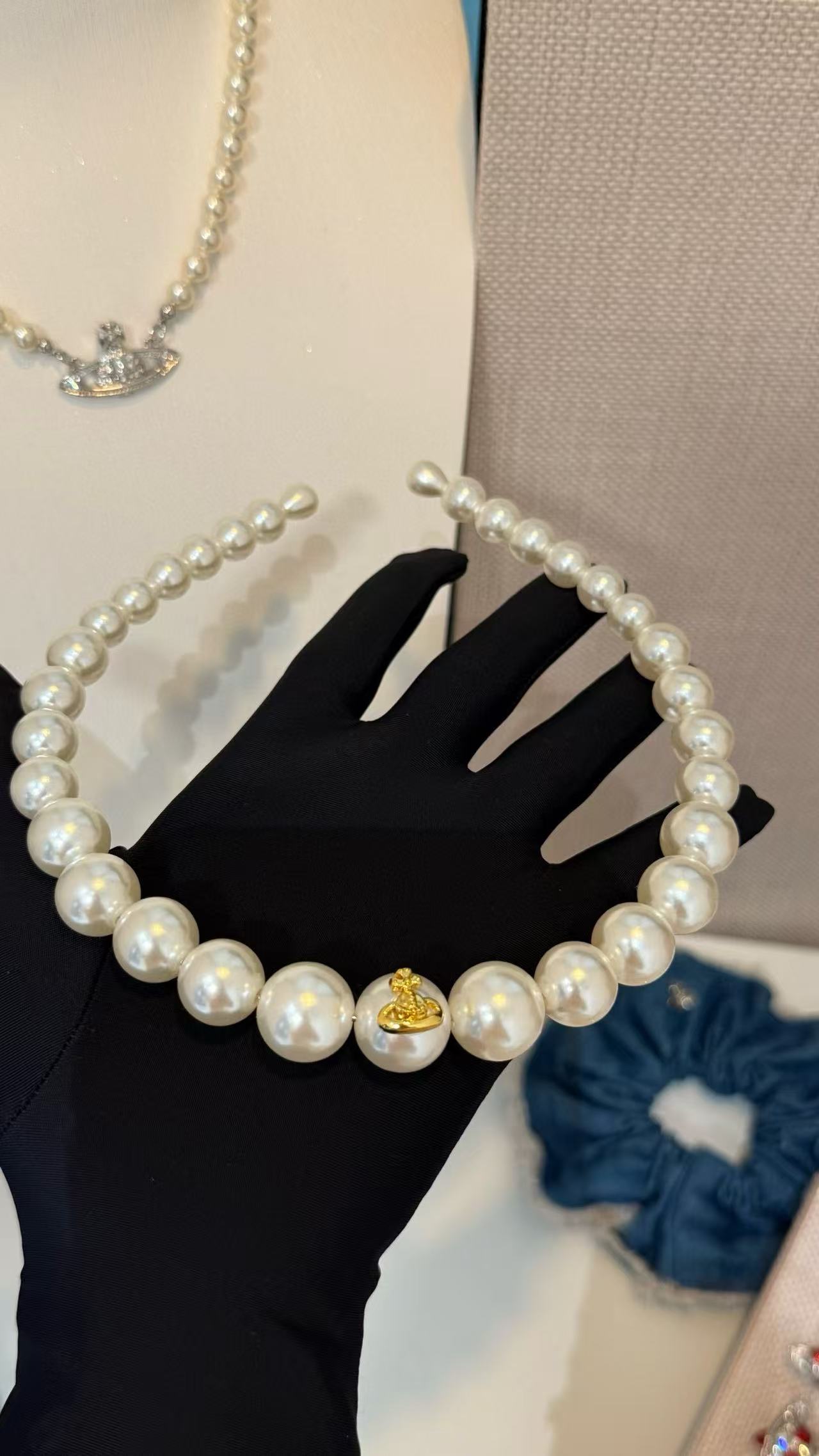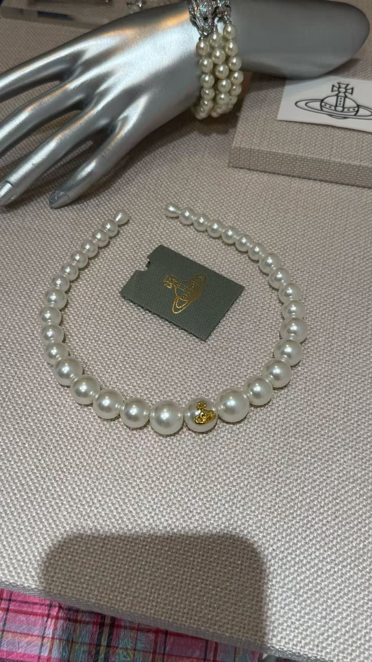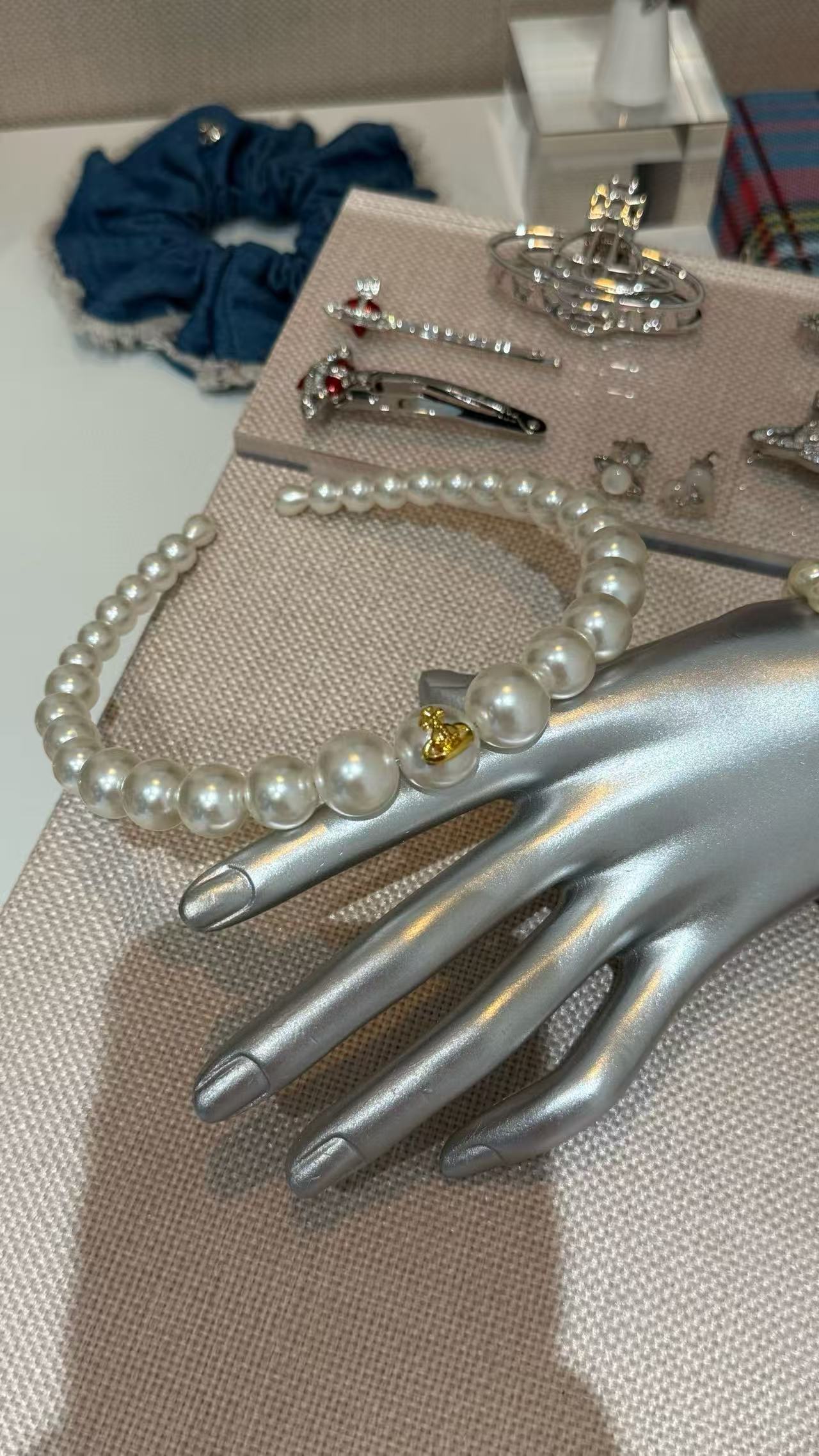 採用一整排大小珍珠搭配標誌性小土星設計,簡約卻不失優雅氣質。