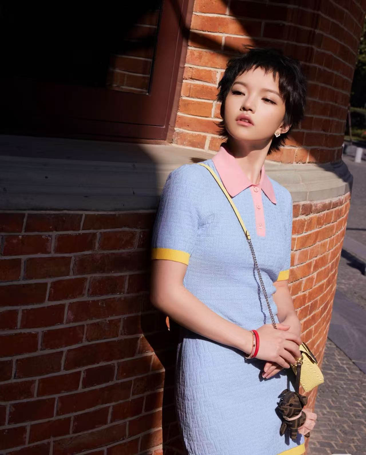霧霾藍、櫻花粉與亮黃色 的精妙配色,搭配經典的翻領剪裁,展現出一種甜美與酷颯平衡得剛剛好的層次美,是那種充滿辨識度的「靈魂單品」