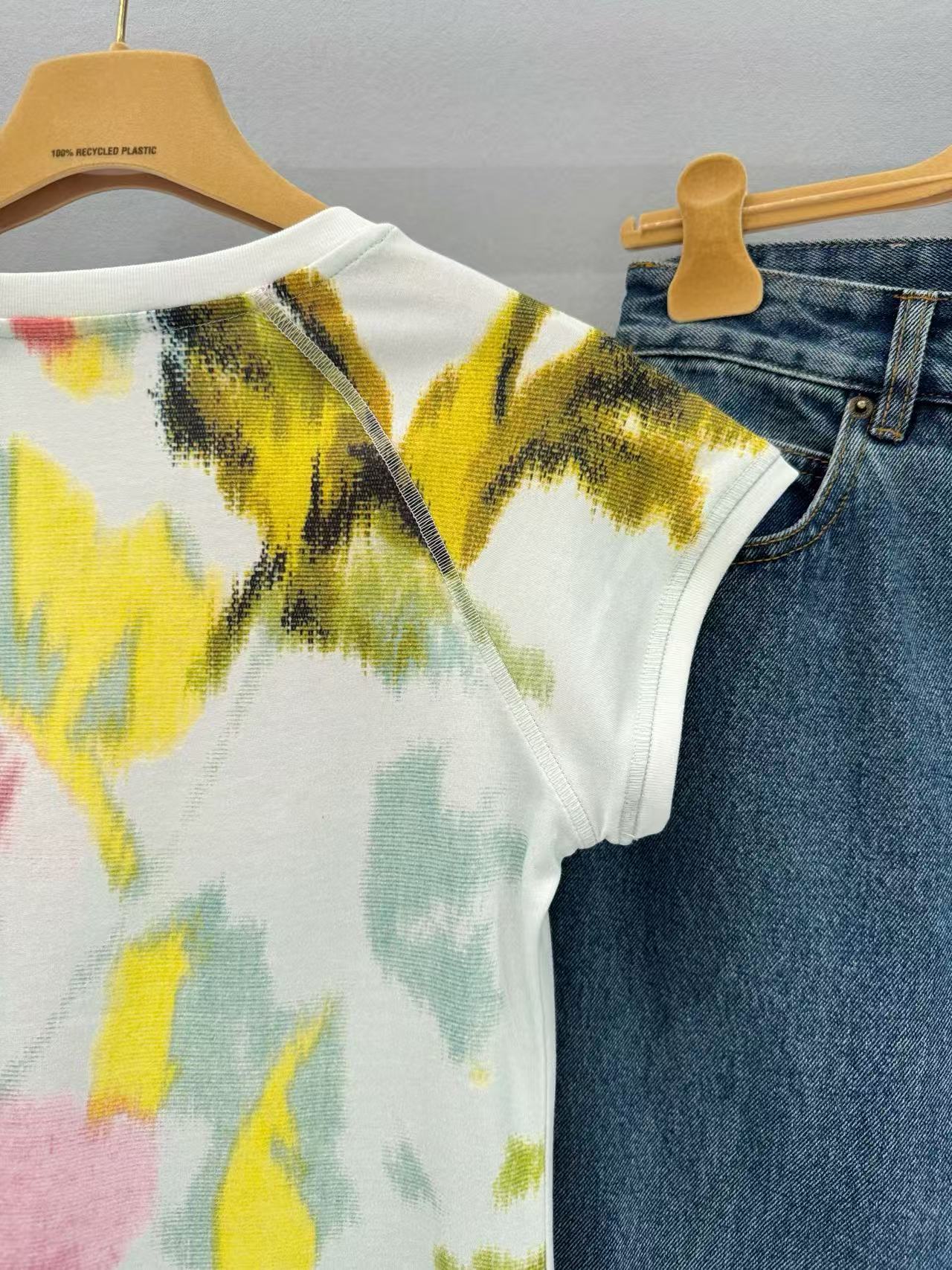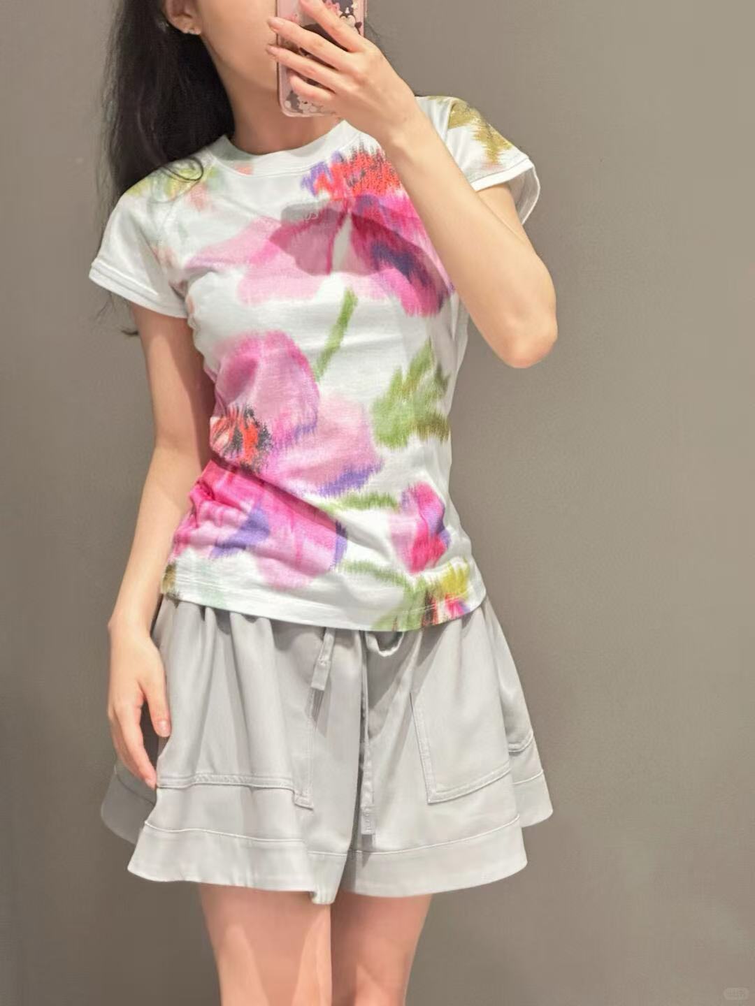 整體布料具有垂墜感與柔軟度,親膚舒適,透氣不悶熱,夏季穿著完全無負擔。印花採用活性定位工藝,色澤自然柔和,不易掉色,細節看得見質感。