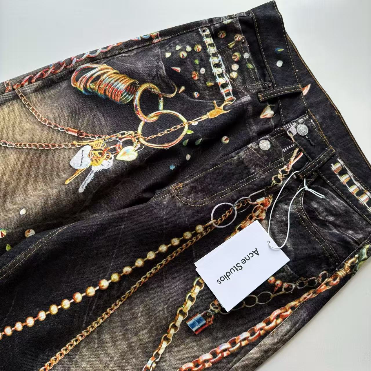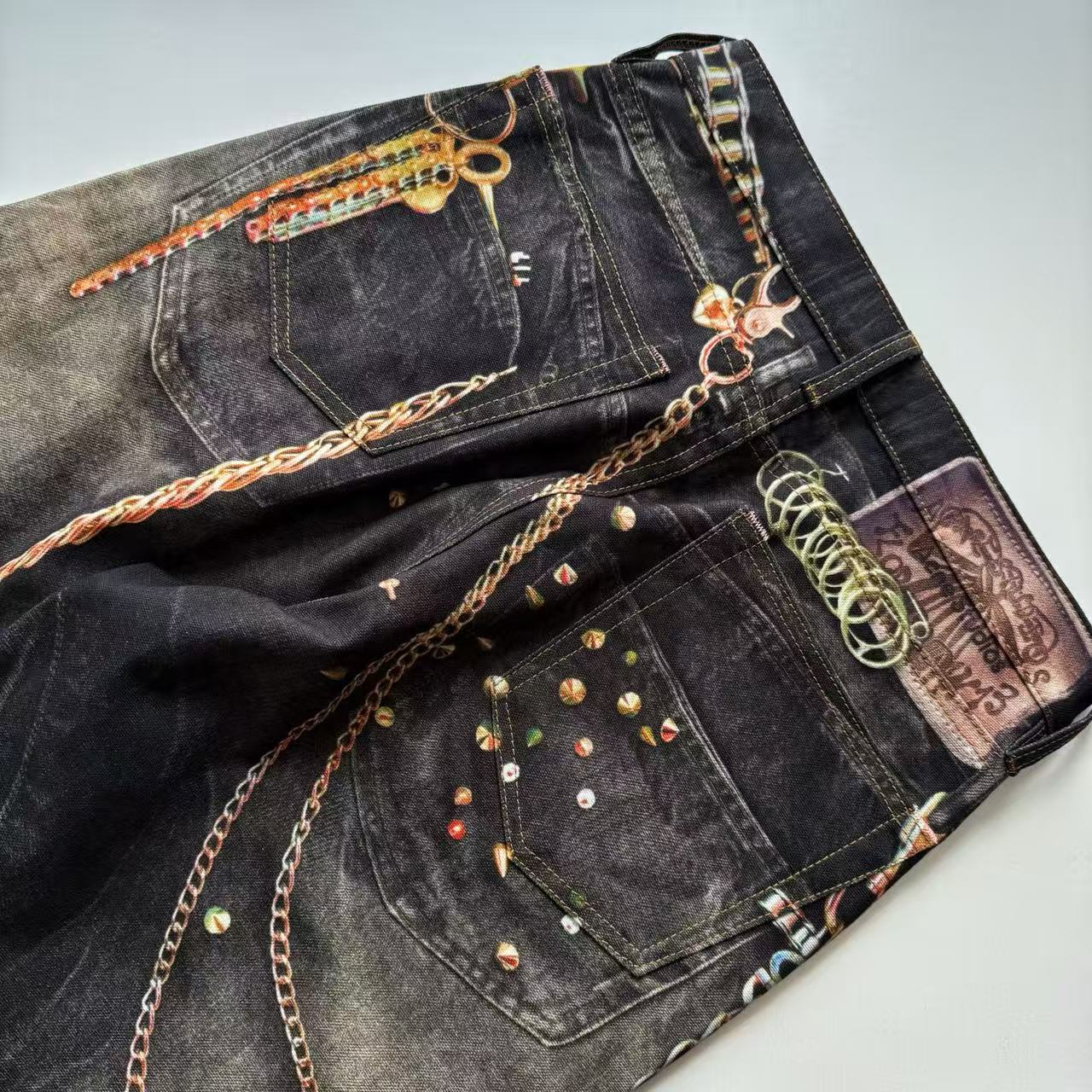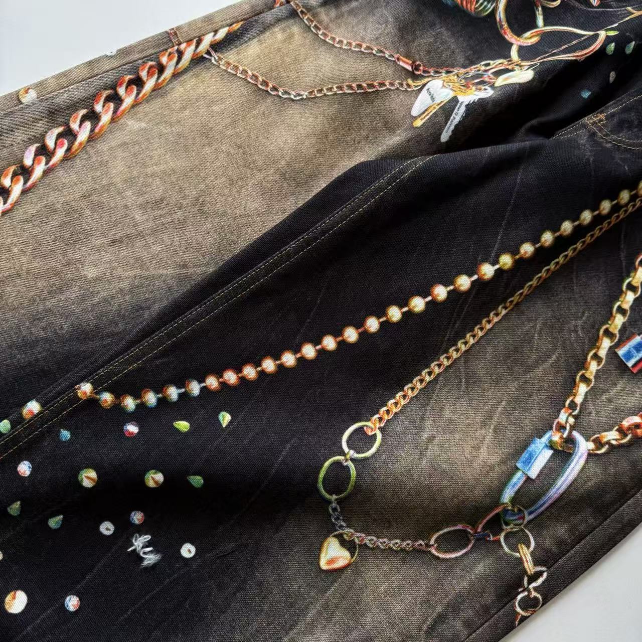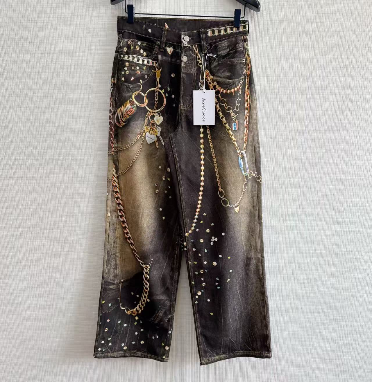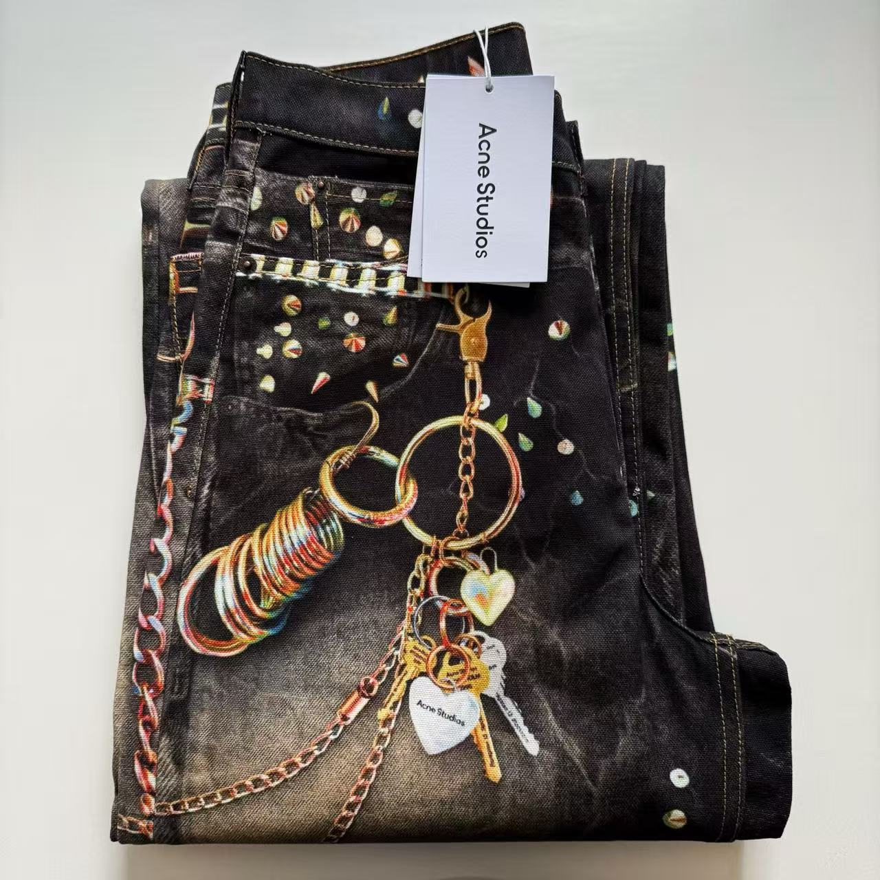2026早春新品 AC家 3D熱轉印做舊鏈條牛仔褲