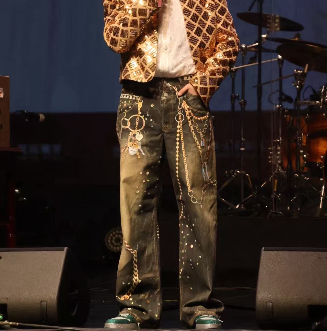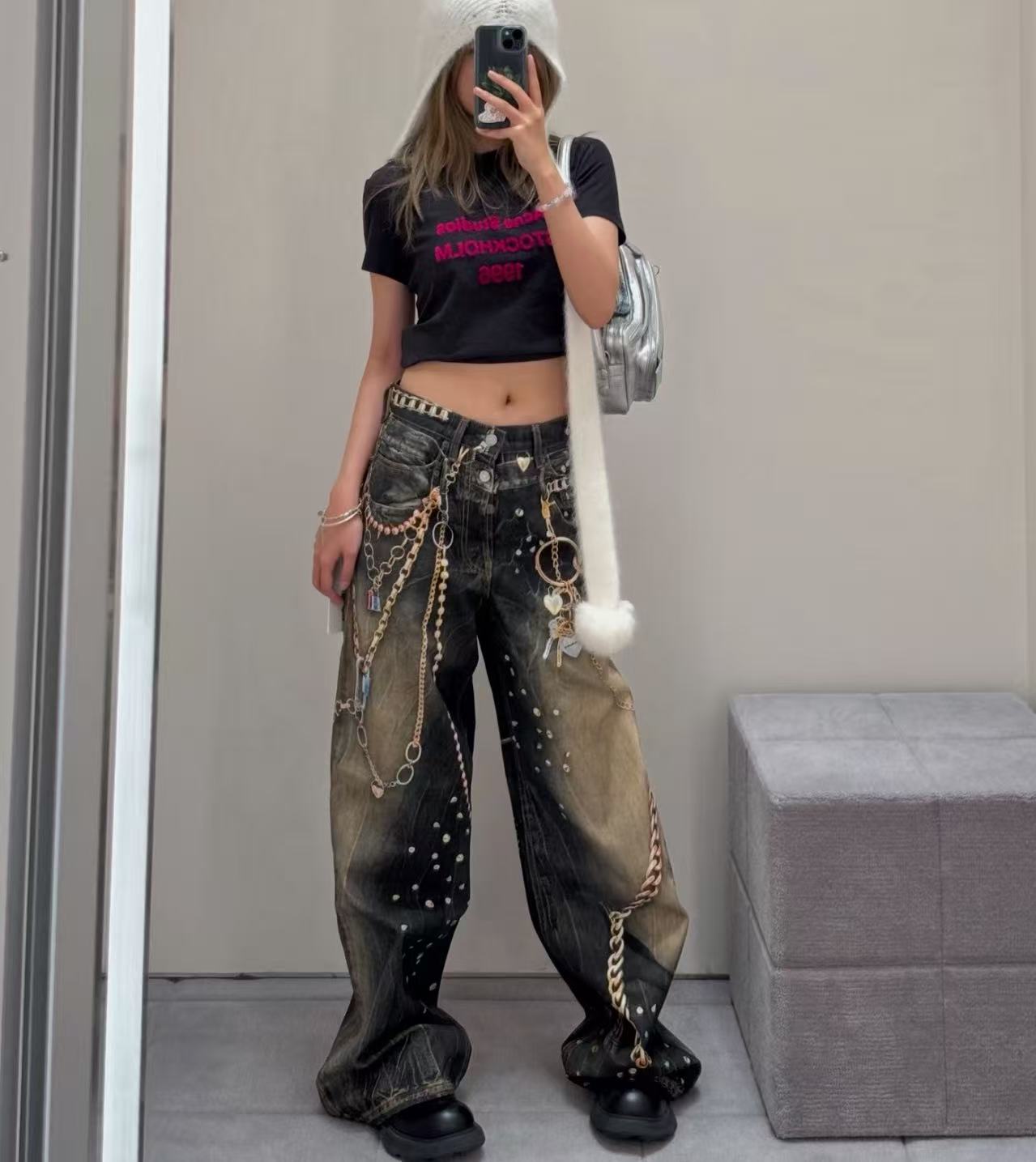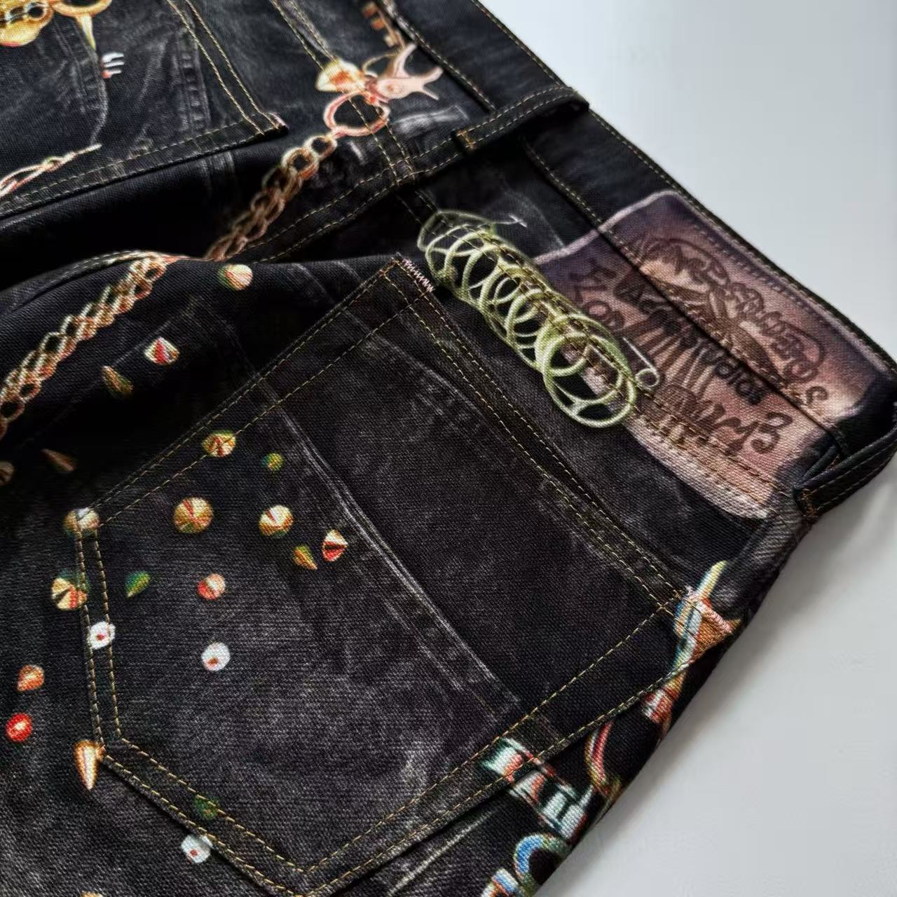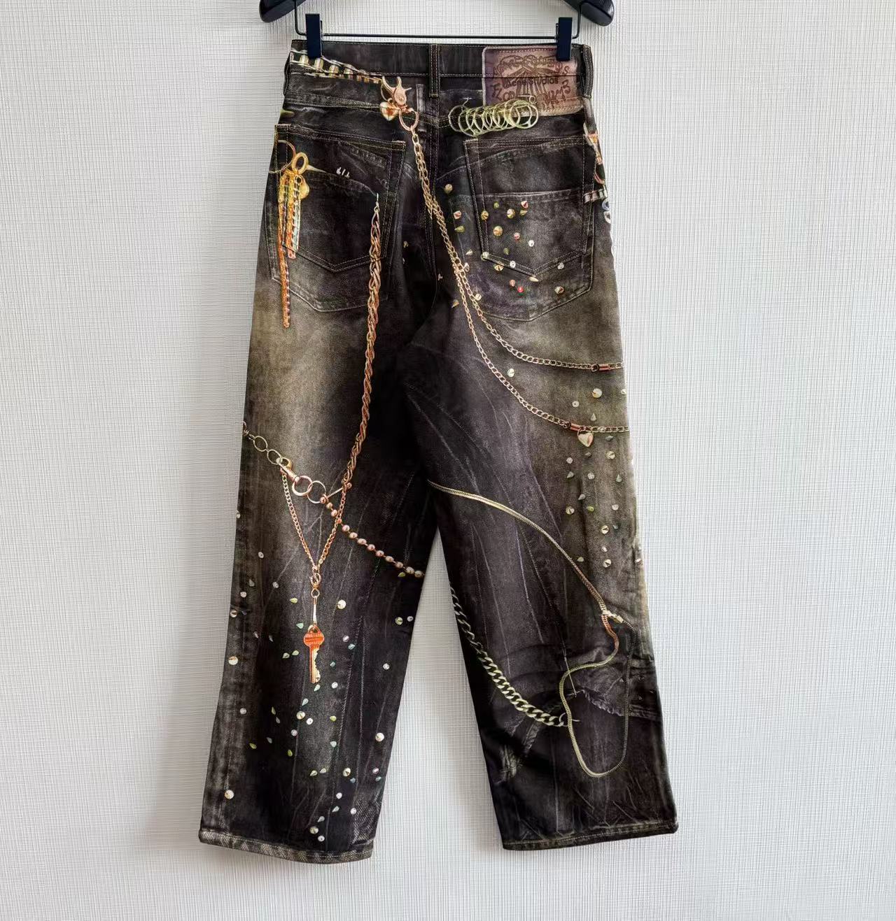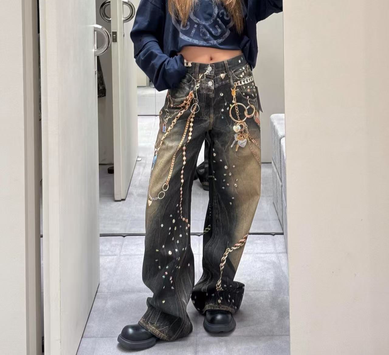 2026早春新品 AC家 3D熱轉印做舊鏈條牛仔褲