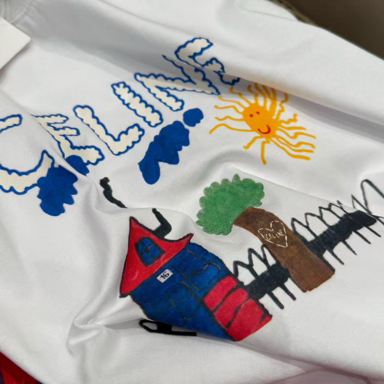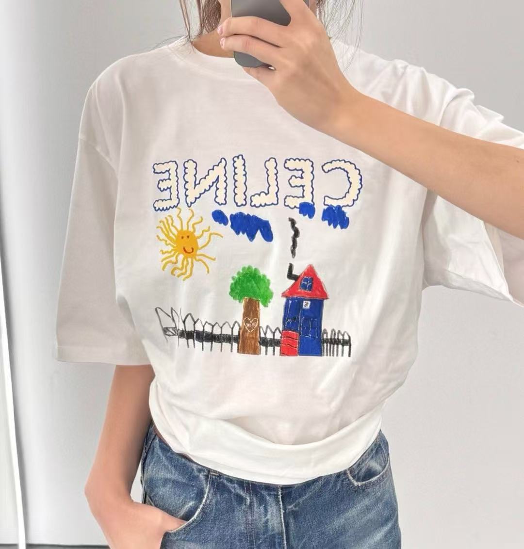 25夏季限定的童趣塗鴉T恤真的太可愛了!以童畫風格為靈感,將手繪感字母與太陽、小樹、小屋等夏日意象印花通通收進一件T恤裡,簡直就像把繽紛的童年回憶穿上身,清新又充滿活力。