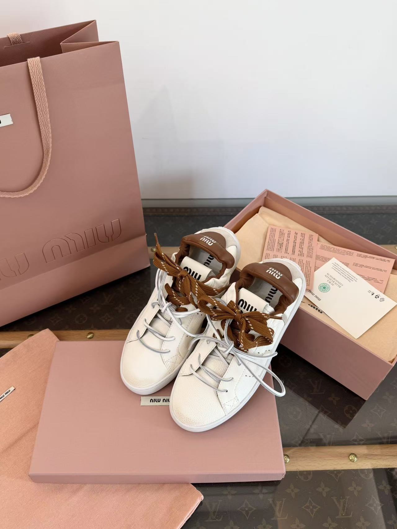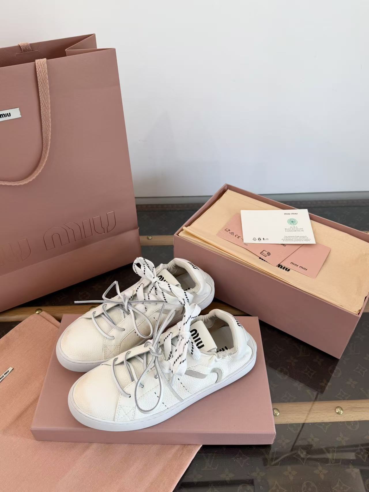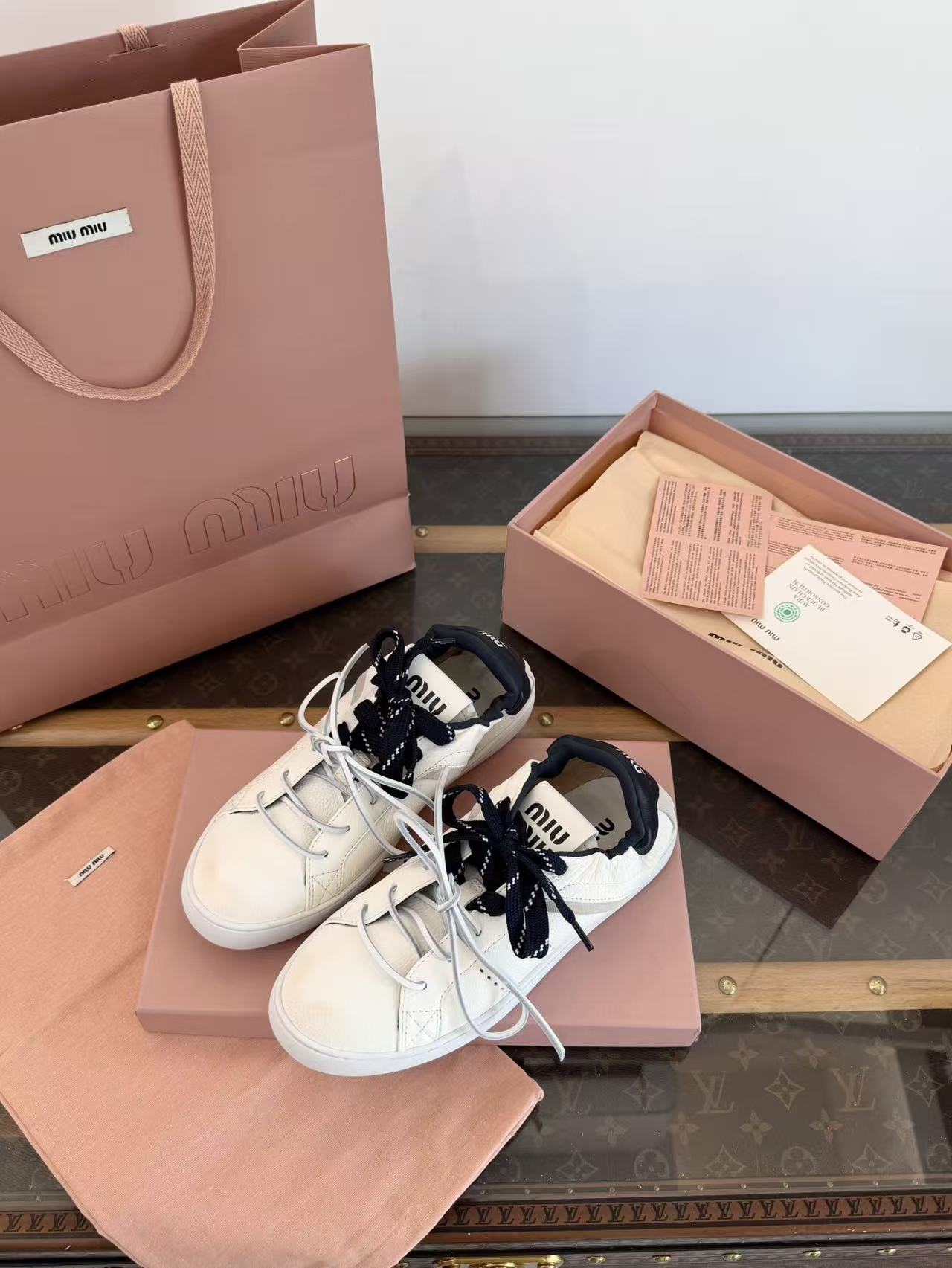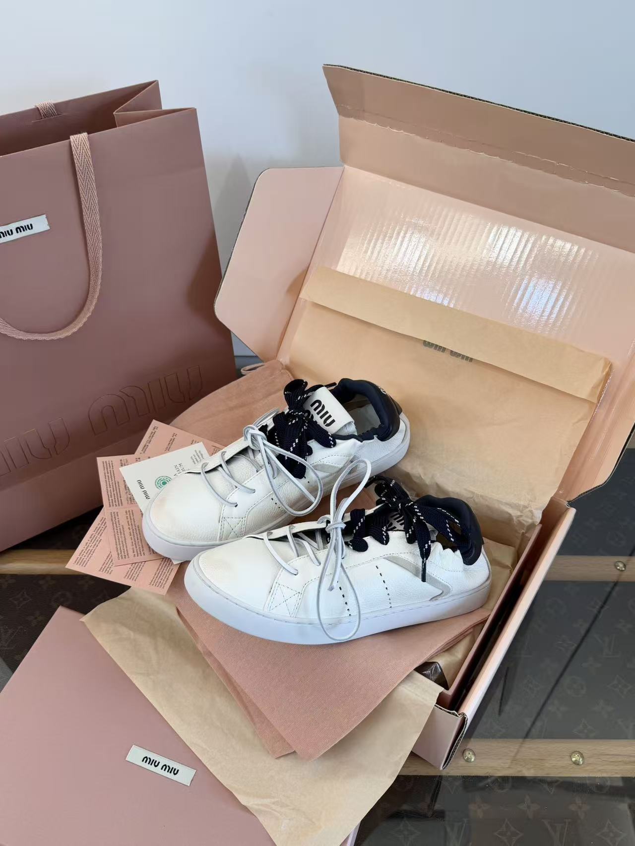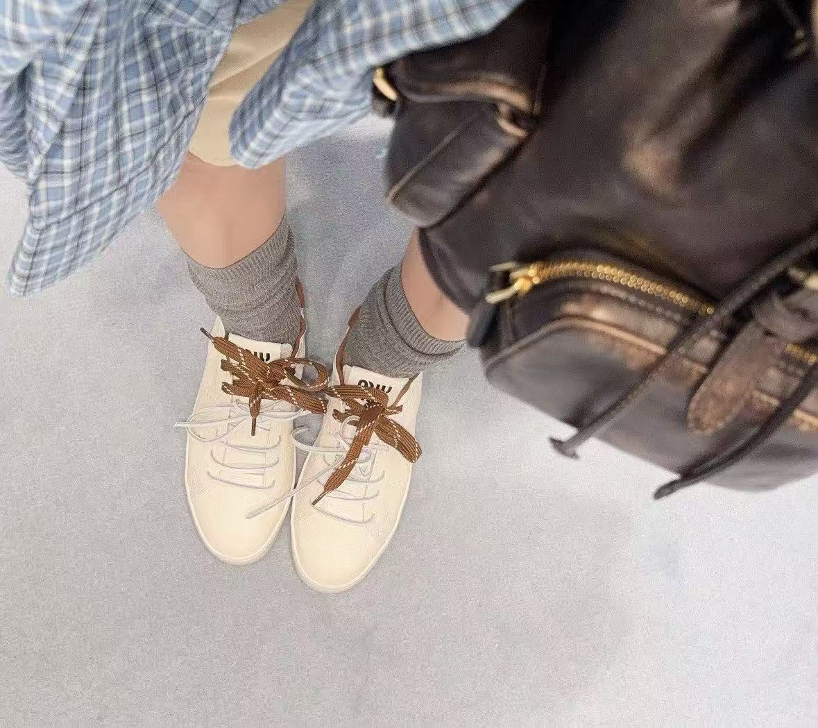 2026早春新品 Miu家 雙鞋帶做舊德訓鞋